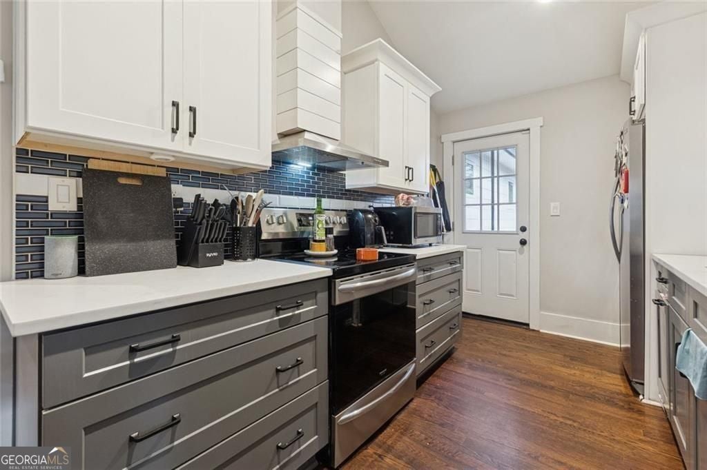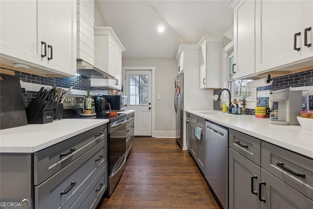 Welcome home to the Polar Rock community of South Atlanta! This charming 3 bed, 2 bath brick ranch with partial basement in Atlanta, GA 30315 is movein ready and easy to love. Step into the vaulted living room with original hardwood floors that flow into a cozy dining area-perfect for everyday living or hosting friends. The kitchen really pops: white stone countertops, crisp cabinetry, bold blue tile backsplash, and stainless steel appliances give you a clean, modern, superfunctional space to cook in. The private primary suite is tucked away on its own side of the home and features a vaulted shiplap ceiling, great natural light, and double doors to a Juliet balcony overlooking the fenced backyard. The ensuite bath includes a dual vanity, large tiled walkin shower, and private water closet. Two additional bedrooms share a nicely updated full bath. Downstairs, the partially finished basement gives you a flexible bonus room-think office, playroom, media room, home gym, plus convenient laundry and extra storage. Outside, you'll find a generous lot with a fenced backyard, welcoming front porch, and a carport with additional driveway parking. And the location really seals the deal: you're roughly 10-15 minutes to Downtown Atlanta, MercedesBenz Stadium, and HartsfieldJackson Atlanta International Airport, depending on traffic. It's about 15-20 minutes to Ponce City Market and the Eastside BeltLine trail, putting some of the city's best shopping, dining, and nightlife within easy reach, plus a quick hop to the West End's Lee + White district with popular breweries like Monday Night Garage and Wild Heaven West End. A solid, stylish South Atlanta brick ranch in a convenient intown neighborhood-just bring your boxes, and she's home.
