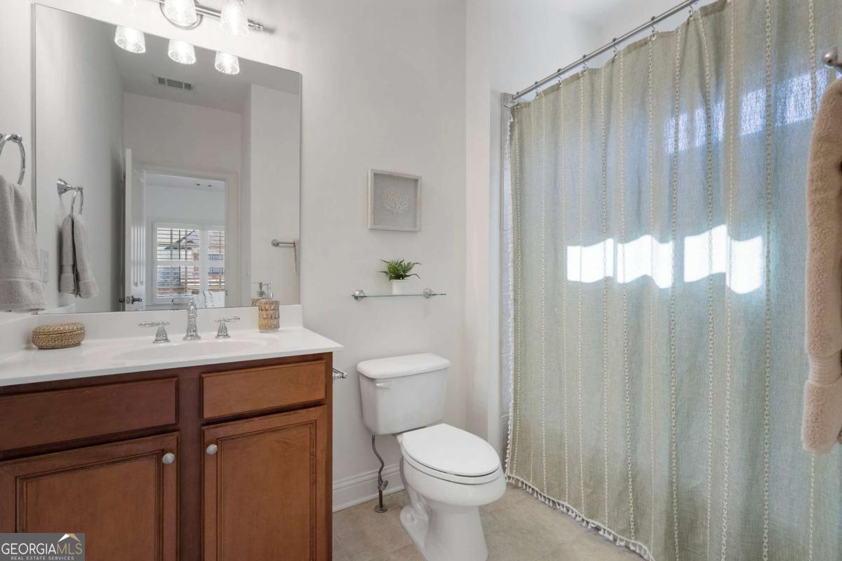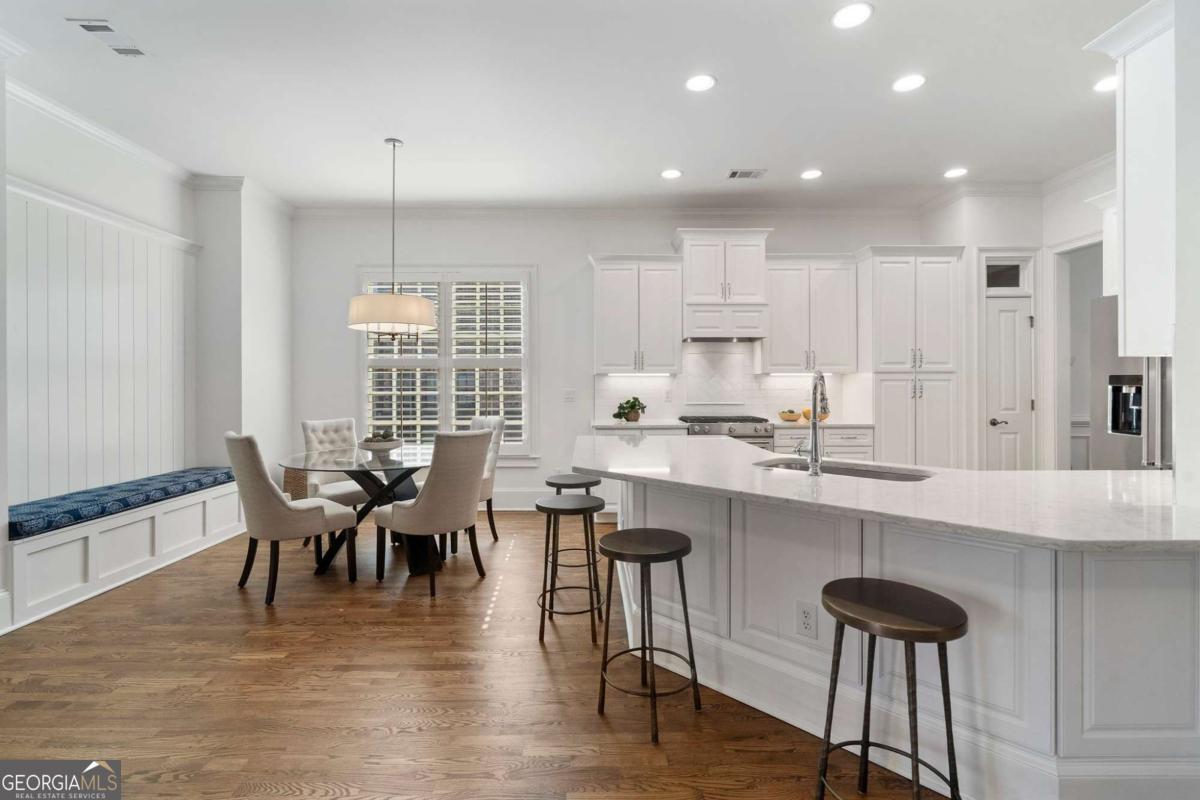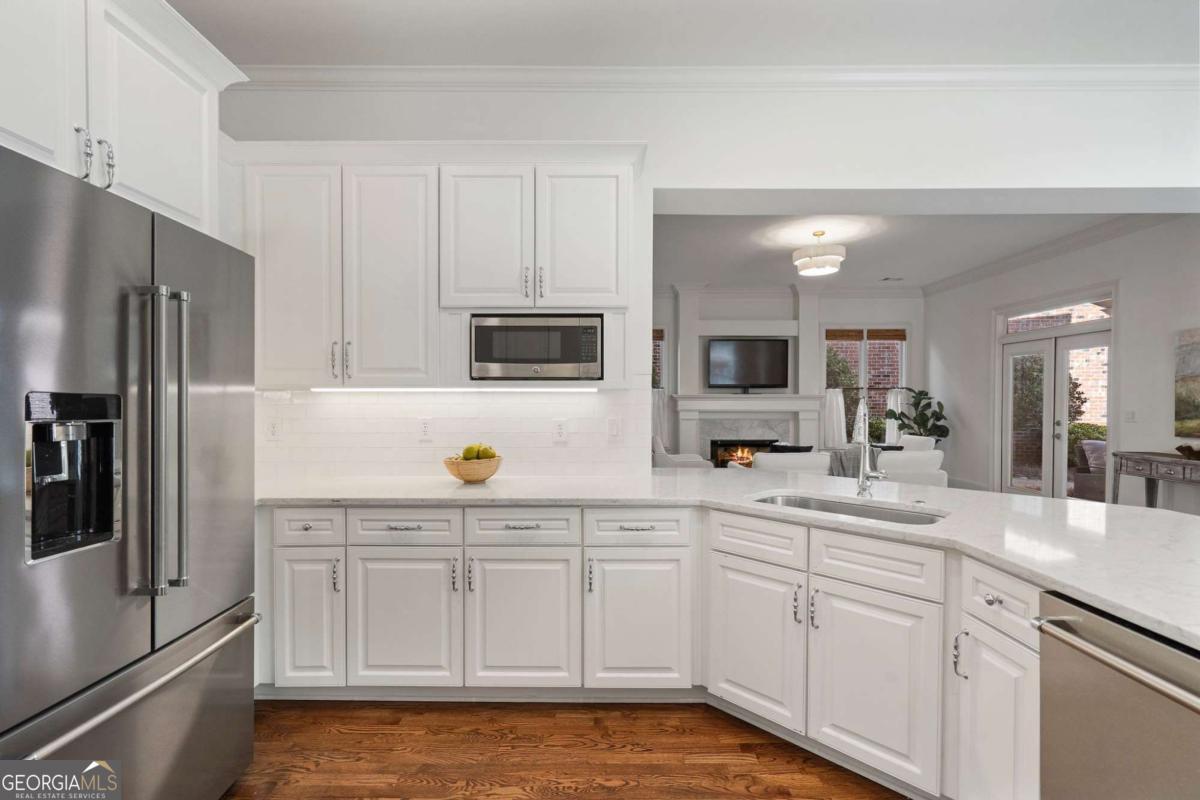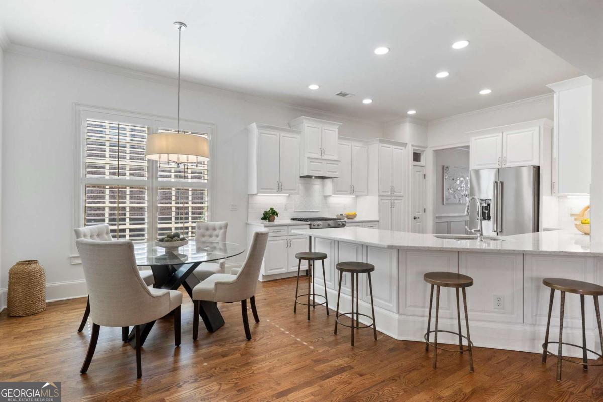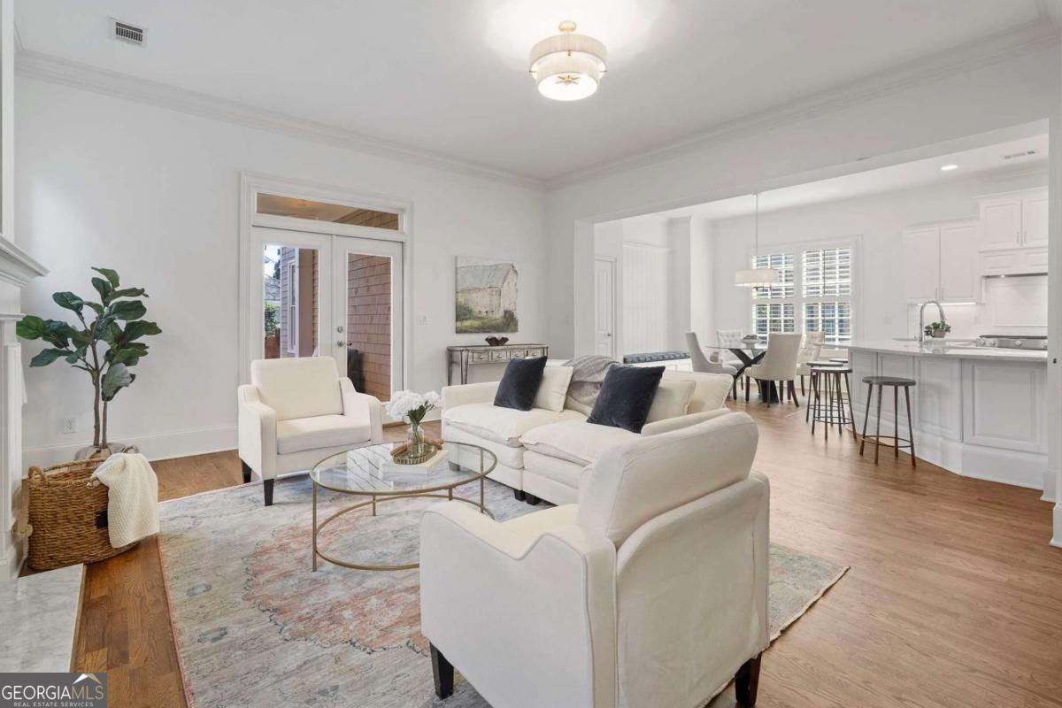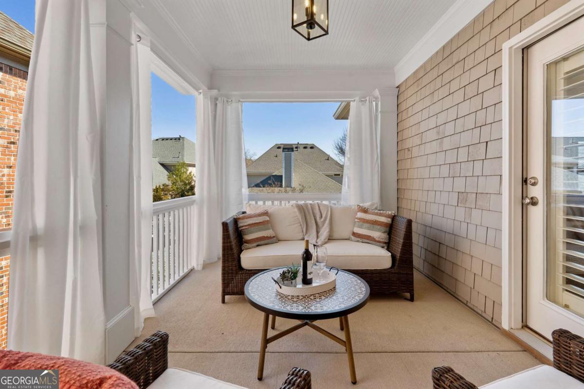 Experience luxury in Alpharetta's highly sought-after Palisades community! This impeccably updated 3-bedroom, 3.5-bathroom residence offers over 3,000 square feet of meticulously maintained living space. Move-in ready, it features beautifully refinished hardwood floors, new carpet, interior and exterior paint, lighting, newer roof and updated HVAC systems. The main level features a rare open floor plan with soaring ceilings and abundant natural light. Entertain with ease in the updated gourmet kitchen, which flows seamlessly into a casual dining area and a family room anchored by a stunning marble fireplace. Step outside to your private oasis: a serene covered outdoor living space overlooking a professionally landscaped, private courtyard-effortlessly maintained by the HOA. An open-concept dining room, a versatile sitting room (or home office), and a half-bath complete the main floor. Retreat upstairs to the primary sanctuary, boasting 12-foot trey ceilings, gorgeous hardwoods, and a spa-inspired bathroom. Best of all, the primary suite opens to its own private covered balcony. Two additional generous en-suite bedrooms and a dedicated laundry room round out the upper level. Enjoy a quiet, walkable lifestyle with resort-style amenities including a clubhouse pavilion, swimming pool, and tennis courts, plus direct community access to the Big Creek Greenway trail. With HOA-provided lawn care, you'll have more time to enjoy everything Alpharetta has to offer. Ideally located near top-rated schools, Downtown Alpharetta, Avalon, and GA-400. Don't miss this move-in-ready gem!