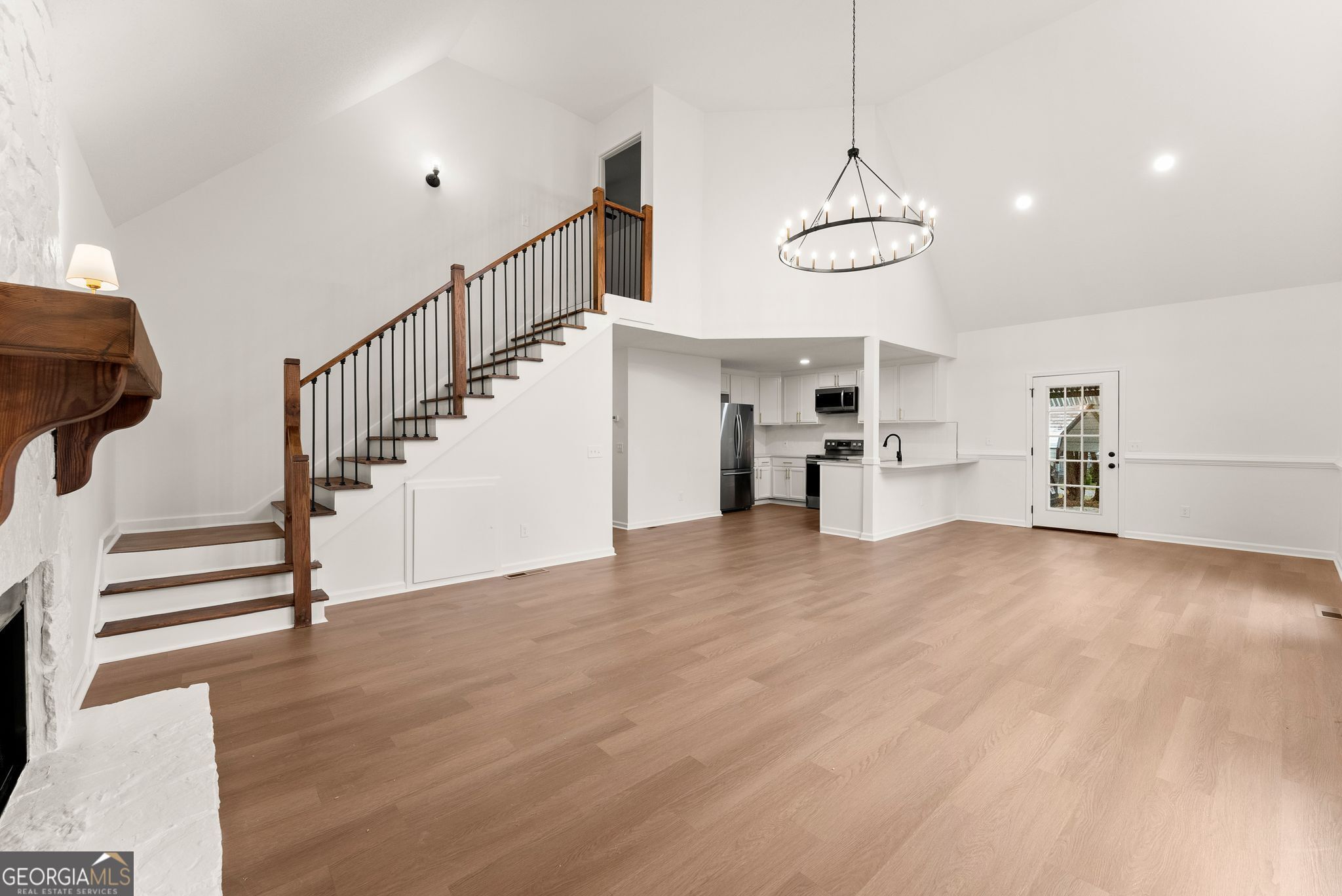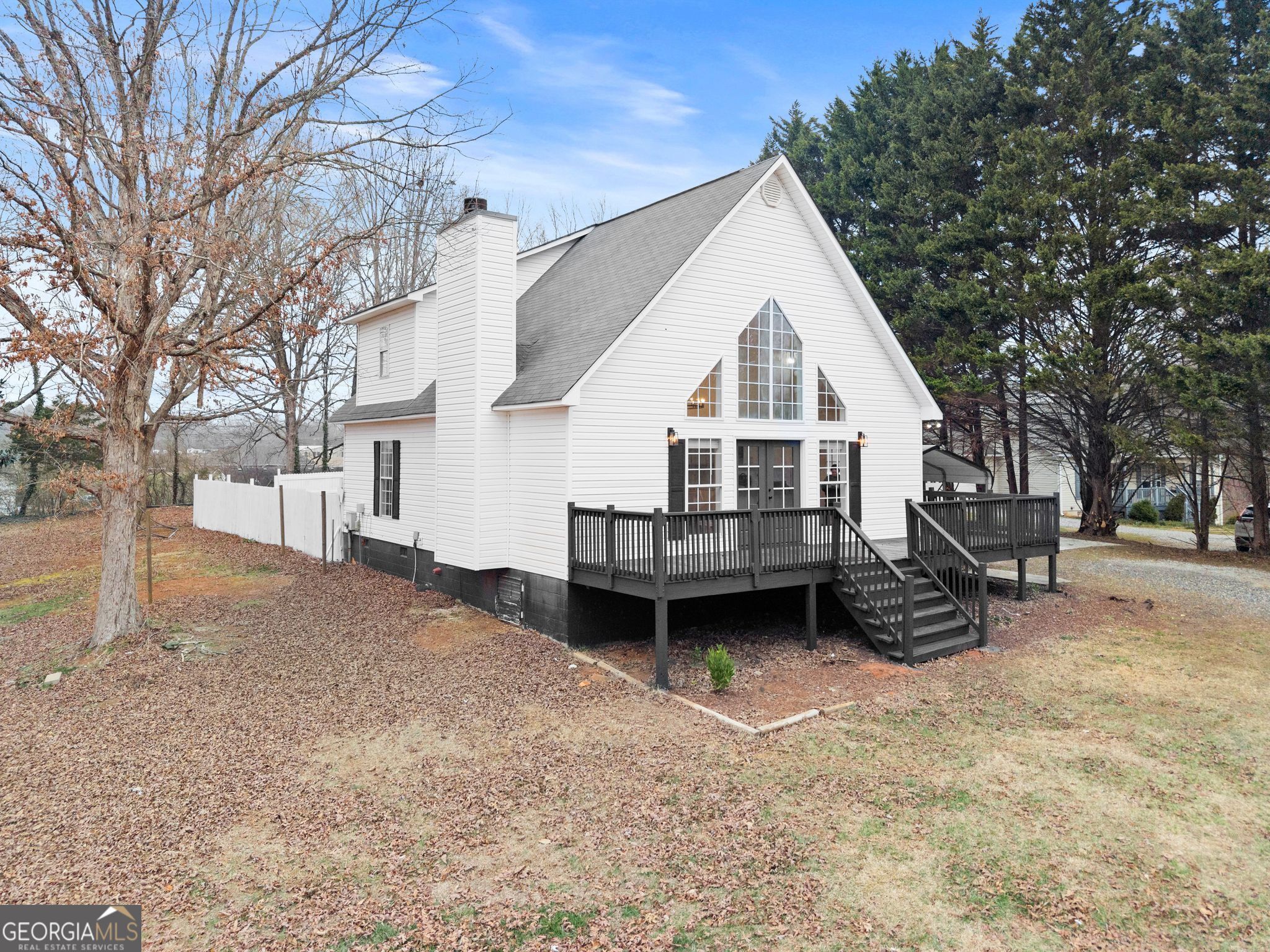 Welcome to 149 Chickasaw Trl in Cleveland, a fully renovated 3-bedroom, 2-bath home offering style, character, and exceptional flexibility on 0.77 acres in the desirable White County school district. From the moment you step inside, the living room makes a lasting impression. Soaring vaulted ceilings, a striking stone fireplace, statement chandelier, and a wall of windows create a dramatic yet inviting space filled with natural light. The open-concept layout flows seamlessly into the beautifully renovated kitchen, complete with new cabinetry, quartz countertops, stainless steel appliances, and a peninsula bar - ideal for entertaining or everyday living. The upstairs level is dedicated entirely to the private primary suite, offering a true retreat with double-sink vanity, walk-in shower, and his-and-hers walk-in closets. Brand-new LVP flooring throughout the home enhances the clean, modern feel. Outside, enjoy an oversized front deck, a flat and fully fenced in backyard, and beautiful landscapes everywhere you look. Storage and workspace options are unmatched, featuring a large detached garage with additional flex space in the rear - perfect for a workshop or hobby area, a detached carport, and a separate storage shed. All of this in a quiet and peaceful non HOA neighborhood! This home offers the perfect combination of privacy, functionality, and move-in-ready comfort.