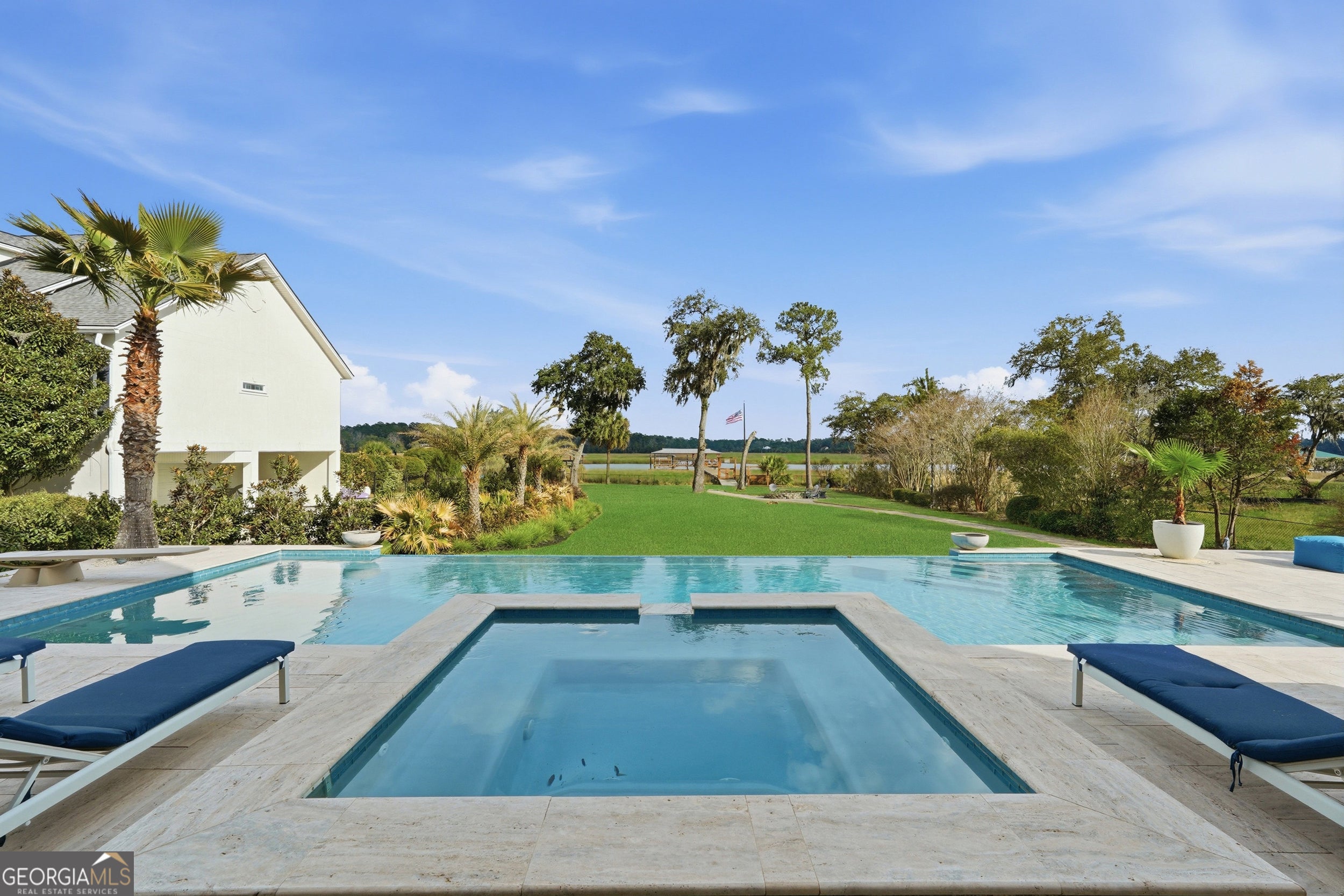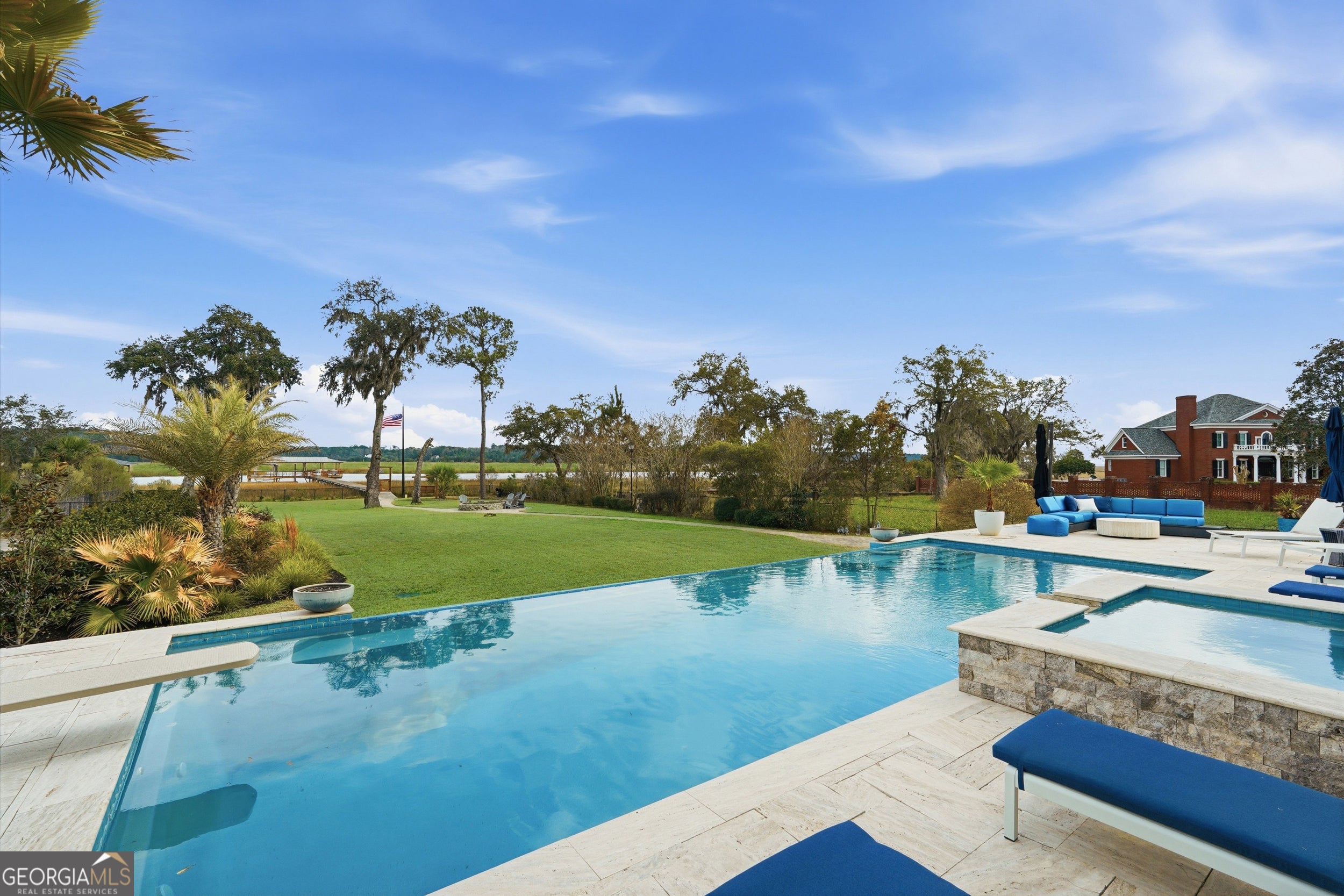 Exceptional deep-water estate in Richmond Hill, offering a private dock with boat lift and year-round navigable water, a rare opportunity in the Coastal Georgia luxury market. Designed for discerning buyers who prioritize true deep-water access, this property provides effortless boating with no tidal restrictions. The waterfront setting is nothing short of breathtaking. A dramatic infinity-edge pool with elevated spa overlooks expansive water views, while generous outdoor entertaining spaces create a seamless indoor-outdoor lifestyle ideal for refined gatherings and serene evenings alike. Inside, over 5,000 square feet of thoughtfully designed living space blends architectural presence with elevated comfort. The updated chefs kitchen features top-tier appliances, sophisticated finishes, and an open layout ideal for both entertaining and everyday living. The expansive primary suite serves as a private retreat, complete with a grand bedroom, oversized custom closet, and a spainspired bath designed with timeless elegance. An elevator provides effortless access to all levels, enhancing both convenience and long-term livability. An extraordinary deep-water opportunity in Richmond Hill- perfectly positioned for buyers seeking luxury waterfront living near Savannah. This property is also being listed for rent at $8,000/month.