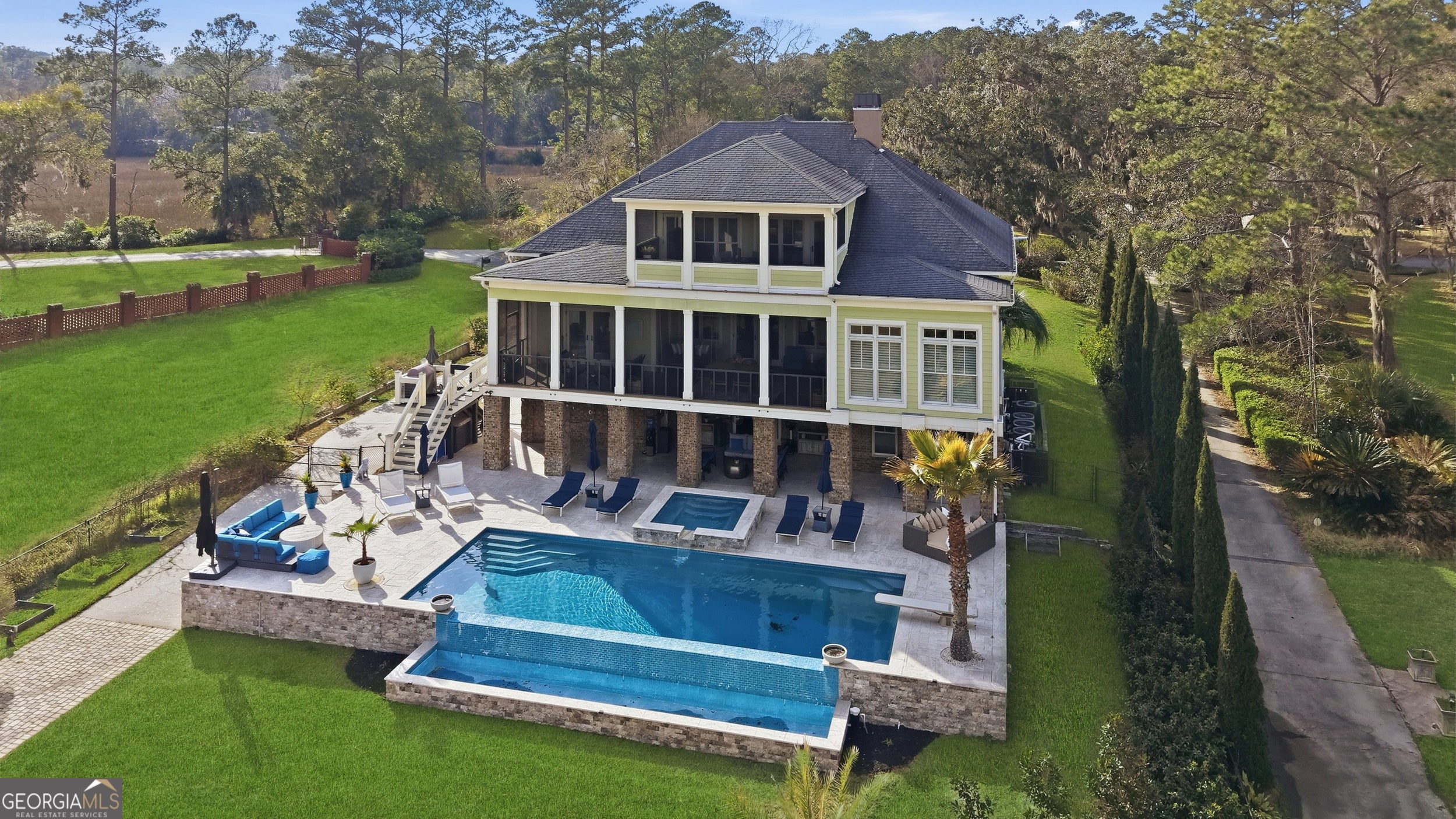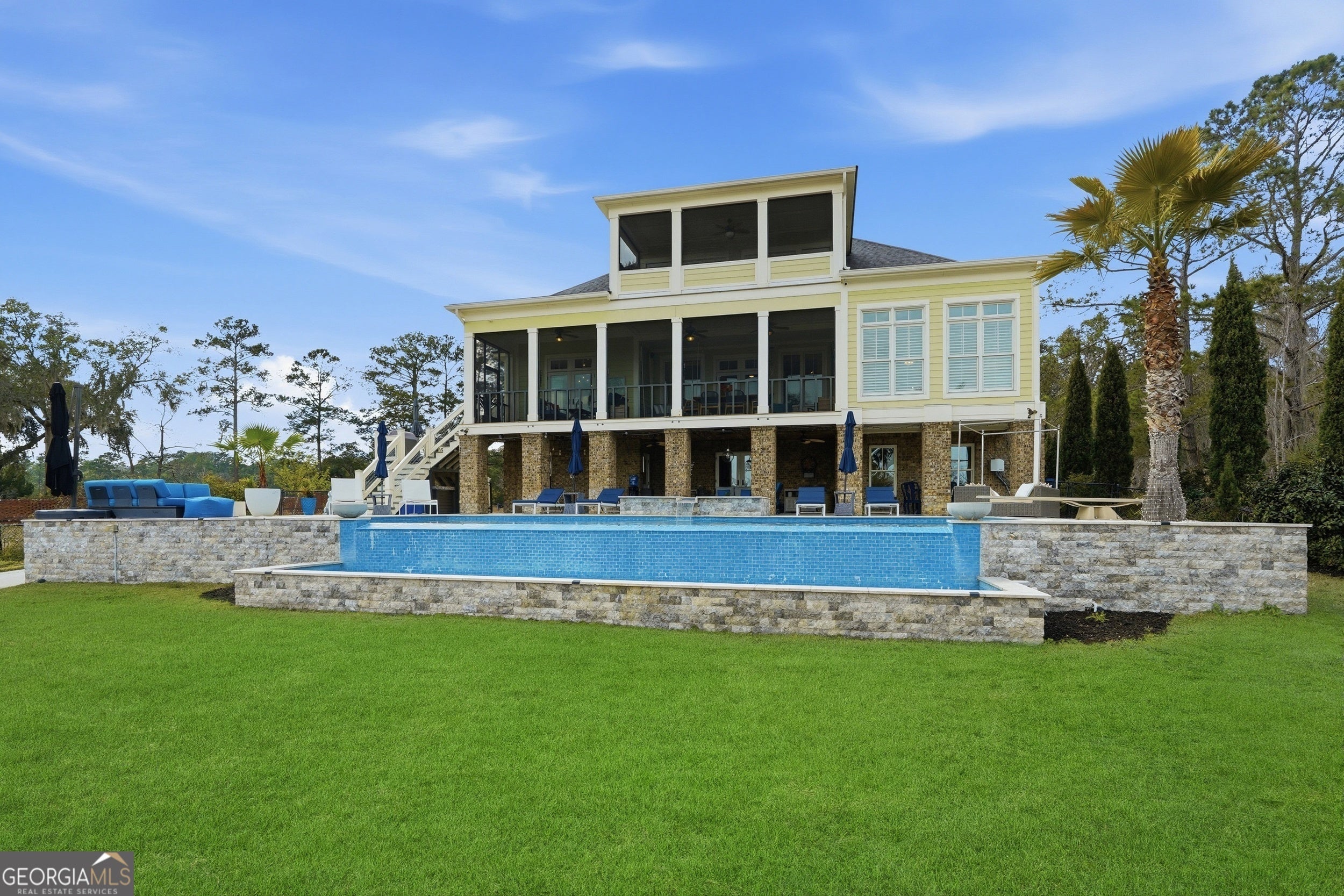Exceptional deep-water estate available for lease in Richmond Hill, offering a private dock with boat lift and year-round navigable water, a rare opportunity in Coastal Georgias luxury rental market. Designed for those who value true deep-water access, this home provides effortless boating with no tidal restrictions and a lifestyle that feels like a private waterfront retreat. The setting is breathtaking. A dramatic infinity-edge pool with elevated spa overlooks expansive water views, while generous outdoor entertaining spaces create a seamless indoor-outdoor experience perfect for hosting or enjoying quiet coastal evenings. Inside, over 5,000 square feet of thoughtfully designed living space blends architectural presence with comfort and functionality. The updated chefs kitchen features top-tier appliances, sophisticated finishes, and an open layout ideal for everyday living or entertaining. The expansive primary suite offers a luxurious private retreat, complete with a grand bedroom, oversized custom closet, and spa-inspired bath with timeless finishes. An elevator services all levels for added convenience, and the homes design supports both elegance and livability. Now offered for lease at $8,000 per month, this is an exceptional opportunity to experience luxury deep-water living in Richmond Hill, just miles from Savannah. Pet deposit is $800 non refundable per pet, plus a $1,500 refundable deposit per pet. Max 2 pets allowed, no exotic animals.