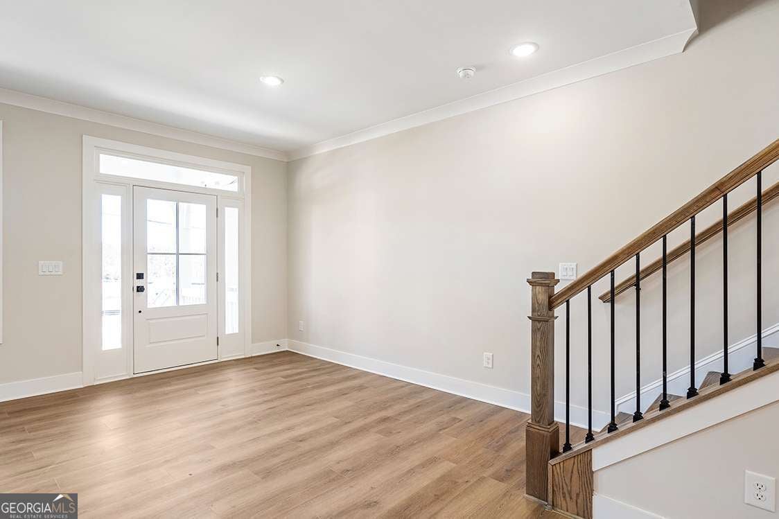 NEW CONSTRUCTION- Ready Now! $10K incentive to use your way (with our preferred lender)! Only 2 townhomes remain. Come home to the heart of it all in one of Cherokee's most dynamic new addresses at the new Holly Springs Town Center with walkable access to Town Center's restaurants, retail stores, green spaces, events and a new outdoor amphitheater. Centered on the landmark new Holly Springs City Hall, the heart of Holly Springs Town Center will be an inviting community space to host festivals, markets and community events like the city's annual Autumn Fest, monthly concerts, food truck nights, Holiday Parade and more. Each residence is WALKABLE to the new town center. Live, dine and play in the heart of it all. If the thought of life in Downtown Woodstock, Roswell, Canton or Alpharetta is appealing to you, then be a founding member of that life here! The NEW Walnut Floor Plan by Stonecrest Homes is now complete. This 4 bedroom, 3.5 Bathroom townhome offers style and flow across three levels. Come off of the sidewalk from the Town Center to a brick covered porch perfect for conversations with neighbors. Entirely open main living level. Kitchen with quartz countertops, bell vent hood and stainless-steel appliance package sits in the center of the main level. The family room sits to the rear adjacent to a rear porch that overlooks neighborhood green space. Primary Suite with spa bath and walk in closet. Flex room on the lower level with walk in closet and full bath with shower. Unfinished storage space on the terrace allows you to use your garage as parking and store your extras in the house. Mudroom entry from rear entry two car garage. Home is generously sized at over 2700 sq ft. Lock & go living are totally possible here. Don't miss the rare opportunity to live in a City Center before it all goes vertical. Drive to work and then do nothing but walking at home!