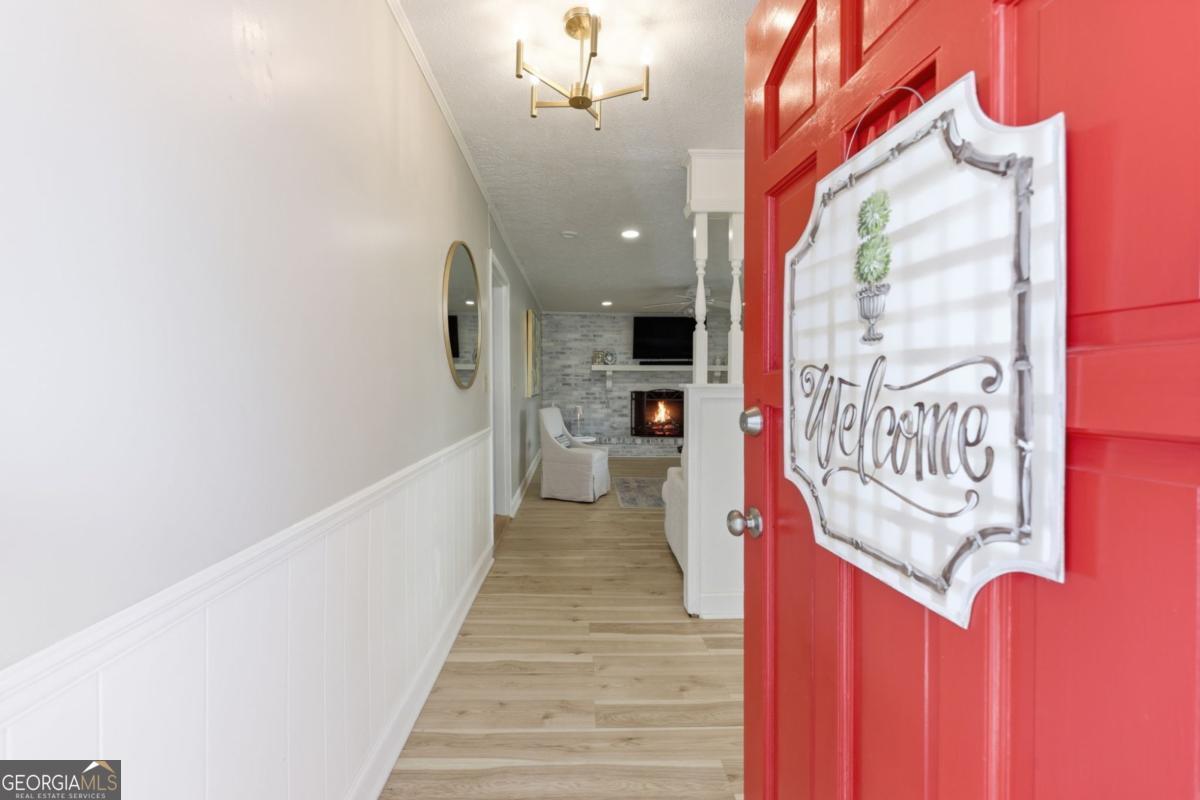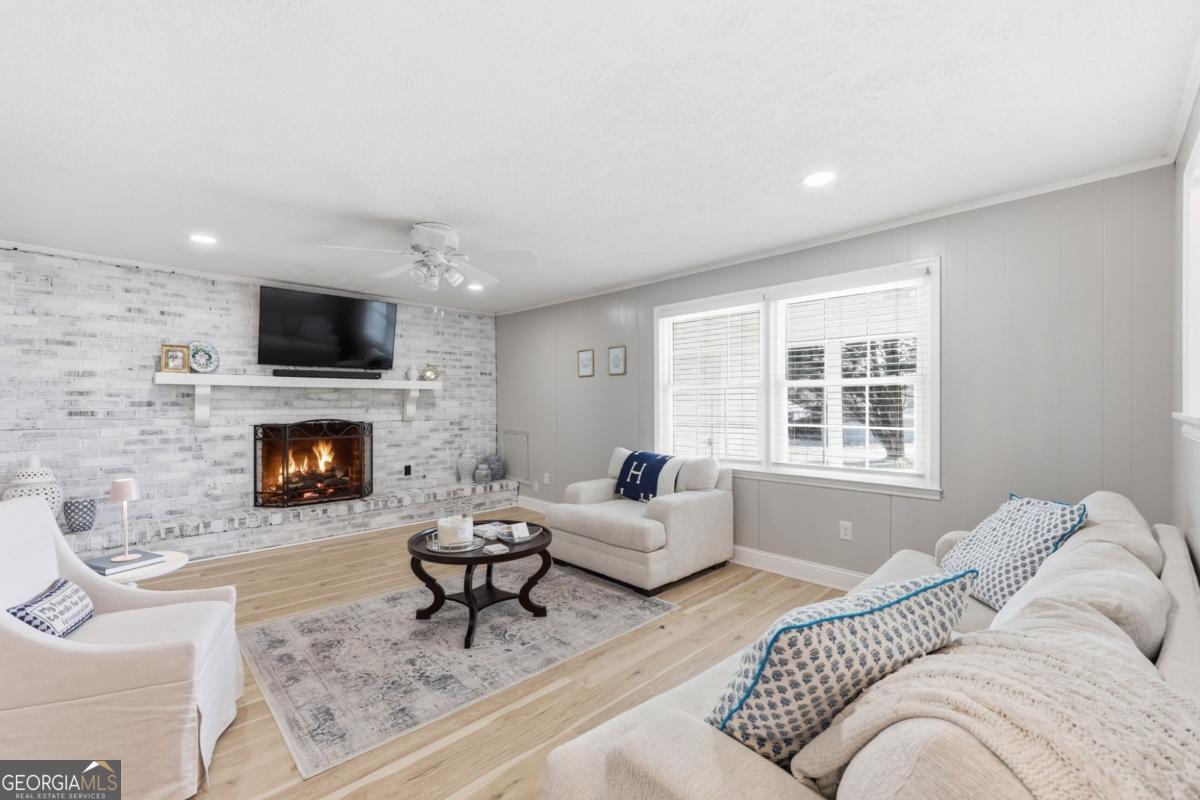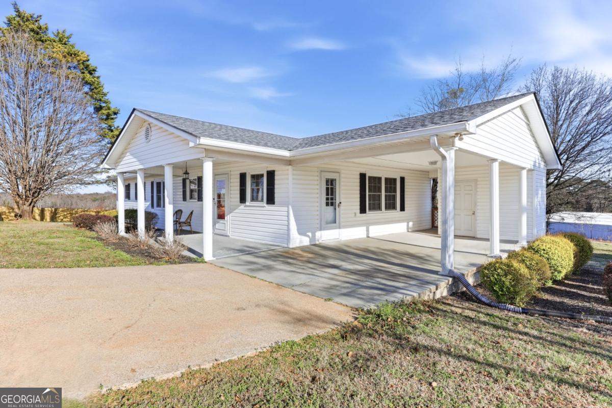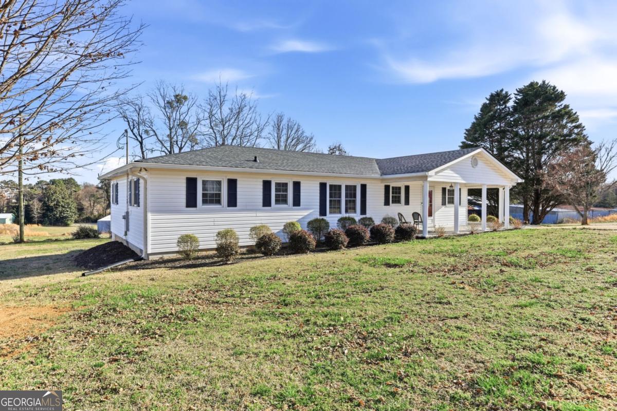 Welcome to 7006 Tribble Gap Road, a beautifully maintained ranch home situated on a generous 0.81-acre corner lot. Offering 3 bedrooms, 2 full baths, and a half bath, this thoughtfully designed layout provides comfortable one-level living with inviting, open-concept spaces perfect for both everyday life and entertaining. The fireside living room, highlighted by a charming whitewashed fireplace, flows seamlessly into the bright kitchen featuring painted cabinetry, stainless steel appliances, a walk-in pantry, and adjoining dining and breakfast areas. A spacious laundry/mudroom and convenient half bath are tucked just off the kitchen for added functionality. Step outside to enjoy the screened porch and deck overlooking the level backyard - an ideal setting for relaxing or hosting gatherings. Additional features include a brand-new roof (June 2025), a carport with extra storage, and a separate outbuilding with power and water that offers endless possibilities for a workshop, studio, office, or hobby space. With no HOA and quick access to I-985, this property combines flexibility, space, and convenience in one exceptional package.