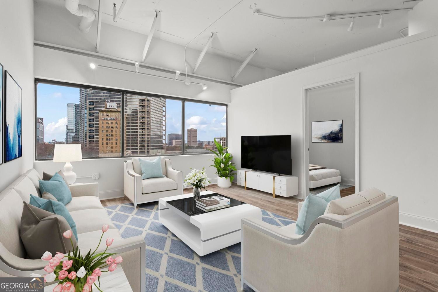 Experience elevated city living in this beautifully updated industrial-style condo perfectly positioned where Old Fourth Ward meets Downtown and Midtown. Located in one of the city's most vibrant and thriving neighborhoods & across the street to the highly anticipated Stitch Project and the Civic Center redevelopment. This prime address is steps away from dining, entertainment, parks, and everything intown living has to offer and within minutes to Mercedes Benz Stadium, GA Tech, GA State, Emory, Piedmont Park, Fox Theater, Ponce City Market, the Beltline, and more! This clean, bright unit showcases stunning skyline views through a dramatic wall of windows, creating abundant natural light and highlighting the fresh, modern finishes throughout. Recently REMODELED, the condo features SS appliances. NEW quartz countertops, NEW sink and NEW modern faucets, NEW microwave and range, NEW lighting, fresh interior paint, NEW bathroom vanity, Mirror & Shower Door and NEW stylish LVP flooring throughout. Residents enjoy exceptional amenities including 24/7 concierge and security, on-site property manager, gated and covered assigned parking in a secure parking garage, abundant guest parking, individual storage units, secured bike racks, swimming pool, BBQ area, fitness center, conference room, fully equipped business center, laundry facilities, vending machines and electric vehicle charging stations, Google fiber wiring. LOW monthly fees. FHA and VA approved.