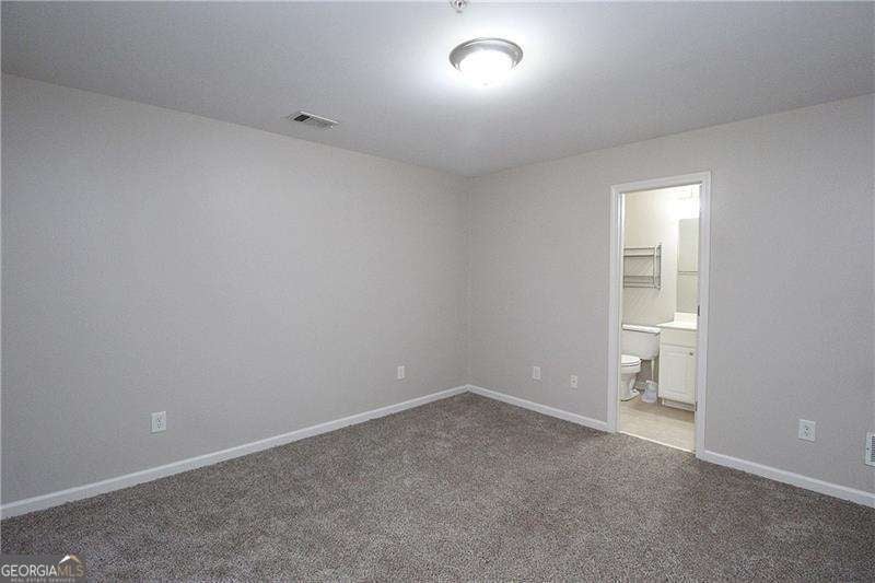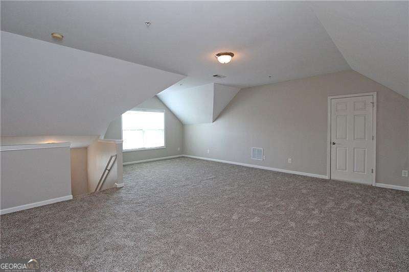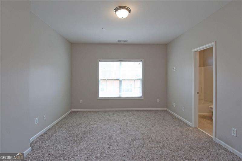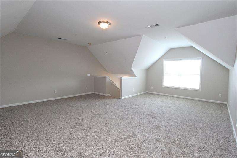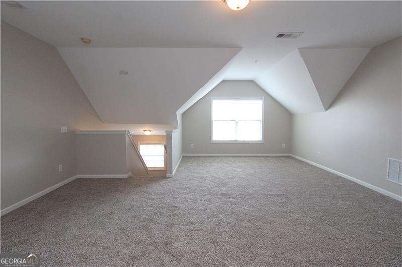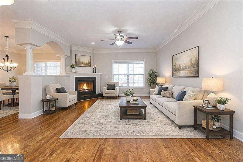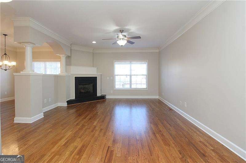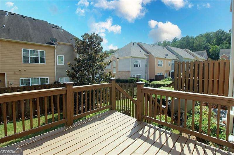 Gated Marietta townhome community located minutes to the Marietta Square, I-75, Battery Park, I-285 & downtown Atlanta. Amenities include neighborhood pool, clubhouse and fenced dog park. This spacious floor plan is ideal for singles, multiples and/or working from home. Recently upgraded with beautiful new hardwood flooring, new interior paint, primary shower surround, carpet, lighting fixtures, & patio doors. Stainless appliances include microwave, range, refrigerator, plus washer & dryer. Open concept plan has family room with cozy corner fireplace w/gas logs, separate dining room, and gourmet kitchen w/ breakfast bar, granite countertops, hardwood floors, crown moulding, & wood cabinets. Rear deck will give extra enjoyment for chilling & grilling! Spacious primary suite has vaulted ceiling and great wall space. Primary bath has double vanity, separate tub & shower, tile floor, and large walk-in closet. Main level/entry has bedroom/office with a full bath. Upper level has oversize bonus room ideal for media room, office space, or could be another bedroom. Don't miss this one-it will exceed your expectations!
