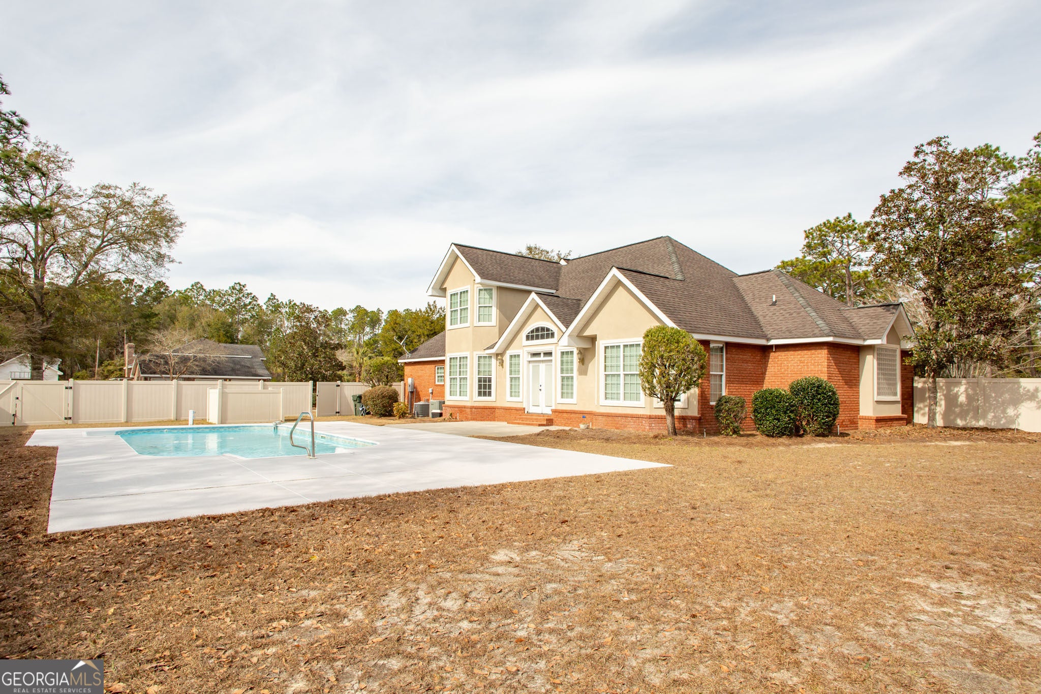 Step into this beautiful two-story home on Central Avenue in Ware County, where classic charm meets modern comfort. The main living area welcomes you with vaulted ceilings and abundant natural light, creating an open and inviting atmosphere oerfect for everyday living and entertaining. A formal dining room offers and elegant space for gatherings, while the thoughtfully designed floor plan flows effortlessly throughout the home. The spacious primary suite is a true retreat, featuring a custom tile shower in the private en-suite bath. An additional bedroom and full bath are also located on the main floor. Upstairs, you'll find a versatile bonus space along with two additional bedrooms, providing plenty of room for guests, family, or a home office. With four bedrooms and three full baths, this home offers both space and functionality. Step outside to your own private oasis- a sparkling blue in-ground pool enclosed by a vinyl privacy fence- ideal for relaxing, entertaining, and enjoying warm Georgia days! This Central Ave gem is a must-see!
