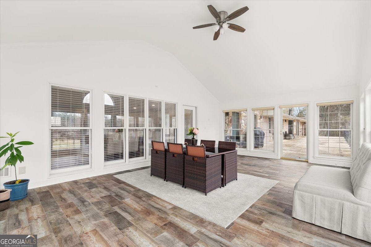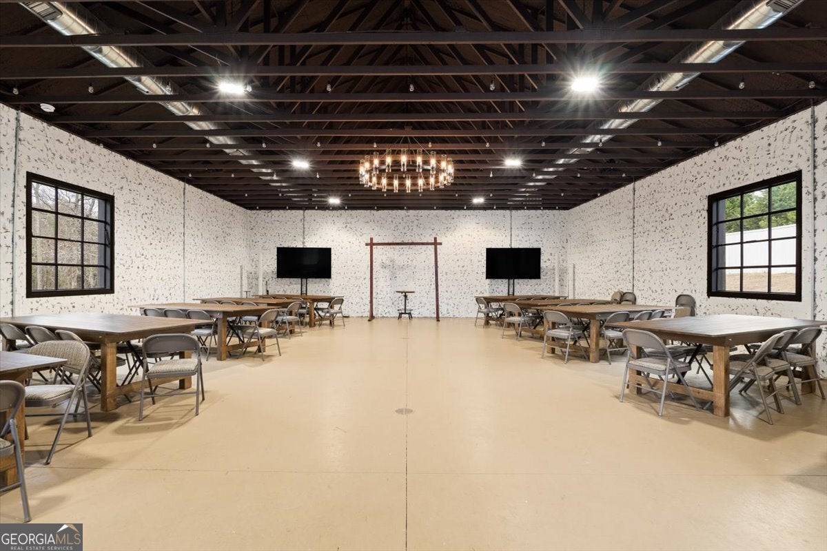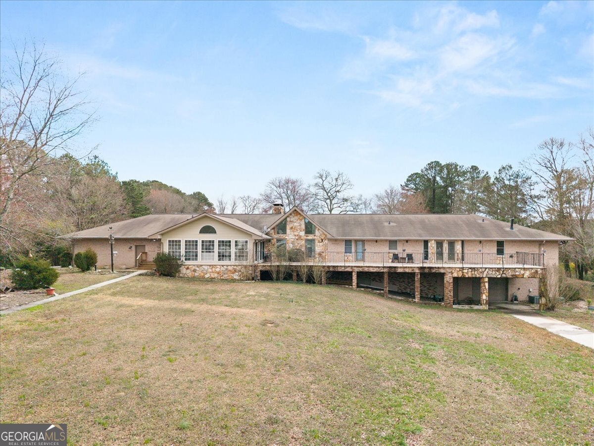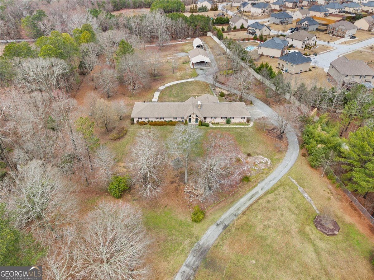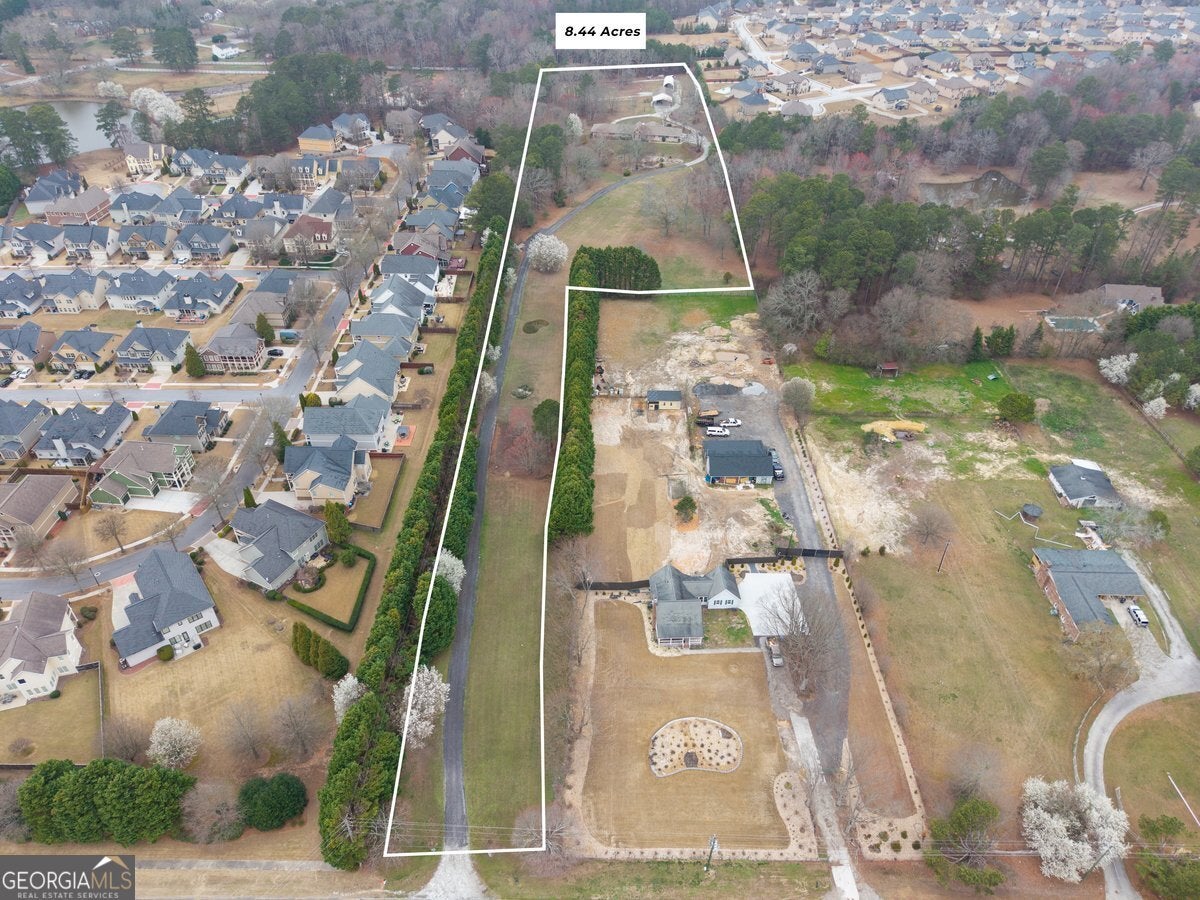 Secluded, spacious, and truly one of a kind in Georgia, this extraordinary 8.44-acre estate offers the best of both worlds, total privacy with unbeatable convenience. Perfectly positioned between Grayson and Loganville, you'll enjoy serene country living while remaining just minutes from highways, premier shopping, and local dining. Experience the beauty of every season surrounded by mature trees, including stunning Japanese Red Oaks, and open, lush grounds that invite you to walk, jog, or simply unwind without ever leaving your own property. With no HOA restrictions, this sprawling acreage provides endless opportunities to expand, build additional structures or guest homes, cultivate blueberries, muscadines, and more, or design the lifestyle you've always envisioned. At the heart of the estate stands a completely reimagined 5,673 sq. ft. custom ranch located within the prestigious Grayson School District. This exceptional residence features 5 spacious bedrooms and 5 retro-renovated luxurious bathrooms, plus 3 beautiful half baths, along with a total interior transformation including new flooring, fresh paint, and beautifully updated walls. Every detail blends comfort, character, and modern functionality. Designed for grand-scale entertaining, the property includes a private ballroom/family event hall that accommodates 100+ seated guests; perfect for weddings, celebrations, and unforgettable family gatherings. Hosting is effortless with on-site parking for over 100 vehicles, allowing friends and loved ones to gather comfortably for life's most meaningful moments. Creativity and versatility continue in the massive basement, large enough to park 5 to 6 full-size vehicles with ease. Featuring a private entrance, this expansive space is ready to become an in-law suite, car collection gallery, hobby workshop, professional studio, or custom retreat tailored to your vision. A huge covered RV port further enhances the property's functionality. This rare gem delivers the ultimate lifestyle: a private sanctuary where you can breathe, grow, entertain, and create, while remaining just minutes from the vibrant amenities of Loganville and Grayson. Opportunities like this don't come often.