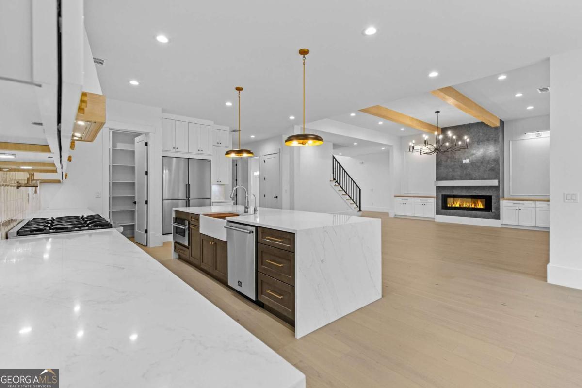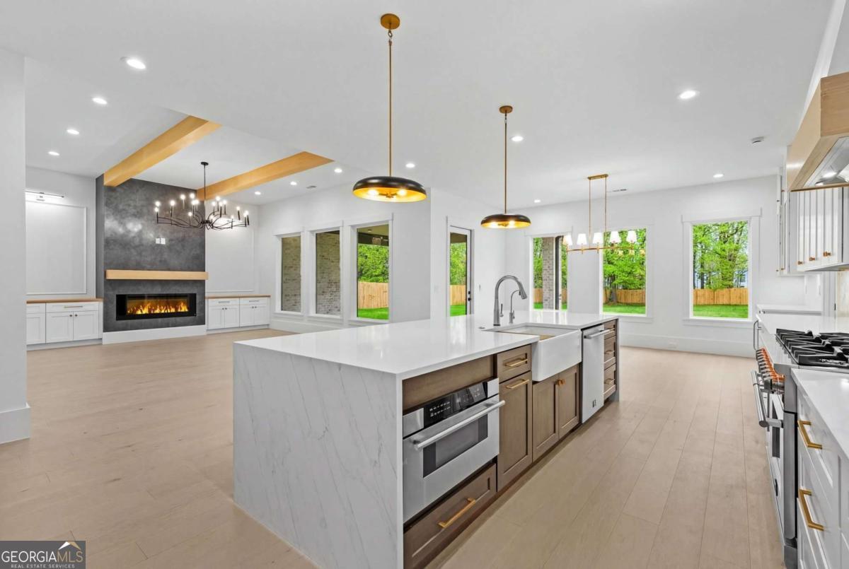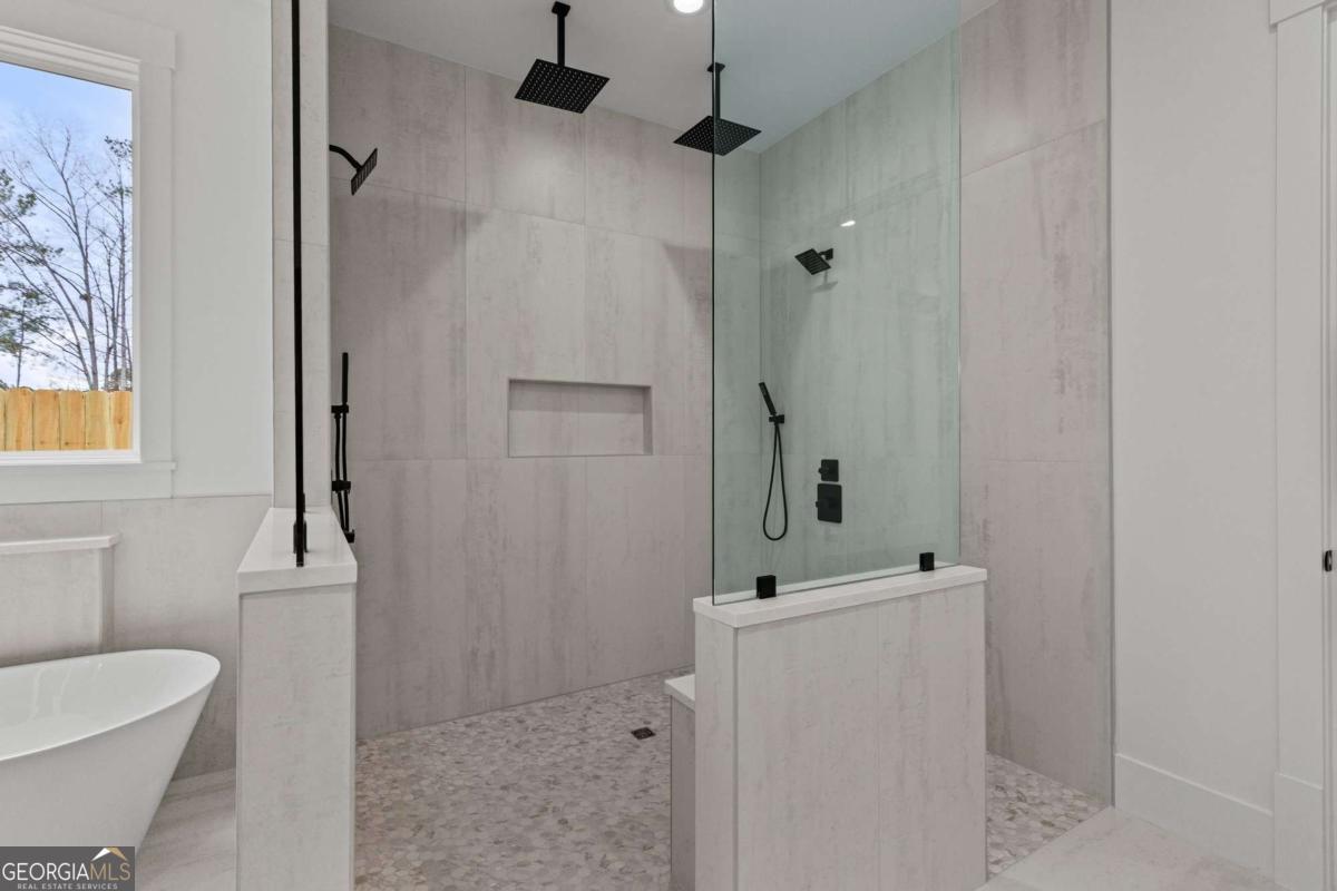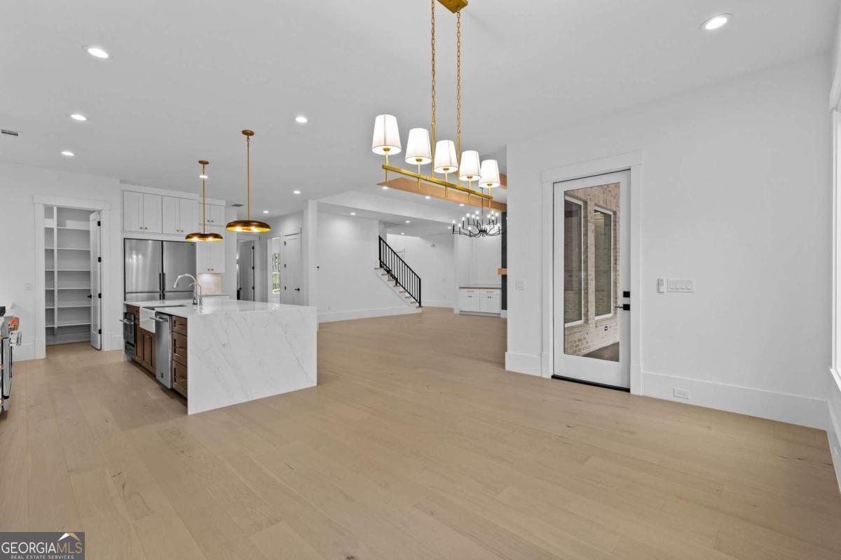 Stunning custom luxury estate in Gwinnett County featuring 6 bedrooms, 7 bathrooms, and approximately 6,000 sqft on 1.13 private acres in a highly sought after location with top rated schools and NO HOA. This beautifully designed home welcomes you with a grand entry foyer and statement chandelier and offers a primary suite on the main level, plus a second main level suite with private entrance and full bathroom, perfect for an in-law or teen suite. The chef's kitchen features a large island, walk-in pantry, and all appliances installed, making it truly move-in ready. Enjoy custom luxury tile, spacious living areas ideal for entertaining, large walk-in closets, and a gorgeous custom mudroom with built in storage. Convenient dual laundry rooms (main level and upstairs) with countertops and sink. The property also features a gated entrance, private fenced backyard, and plenty of space to enjoy 1.13 acres of privacy. A rare opportunity to own a spacious luxury home with privacy, flexibility, and NO HOA in one of Gwinnett County's most desirable areas.