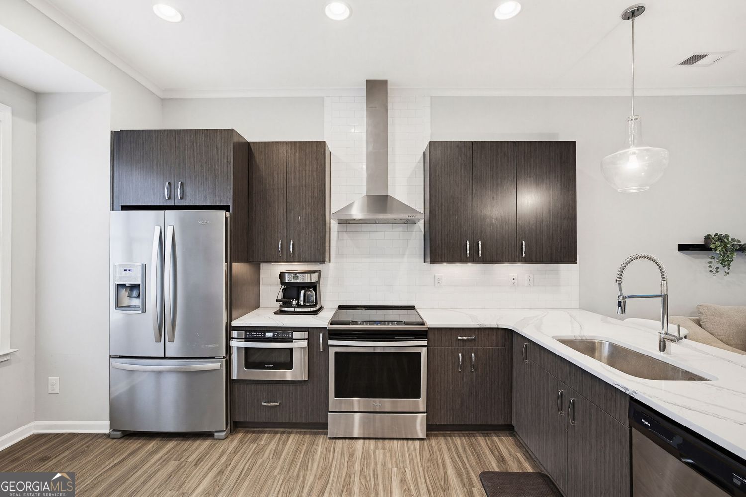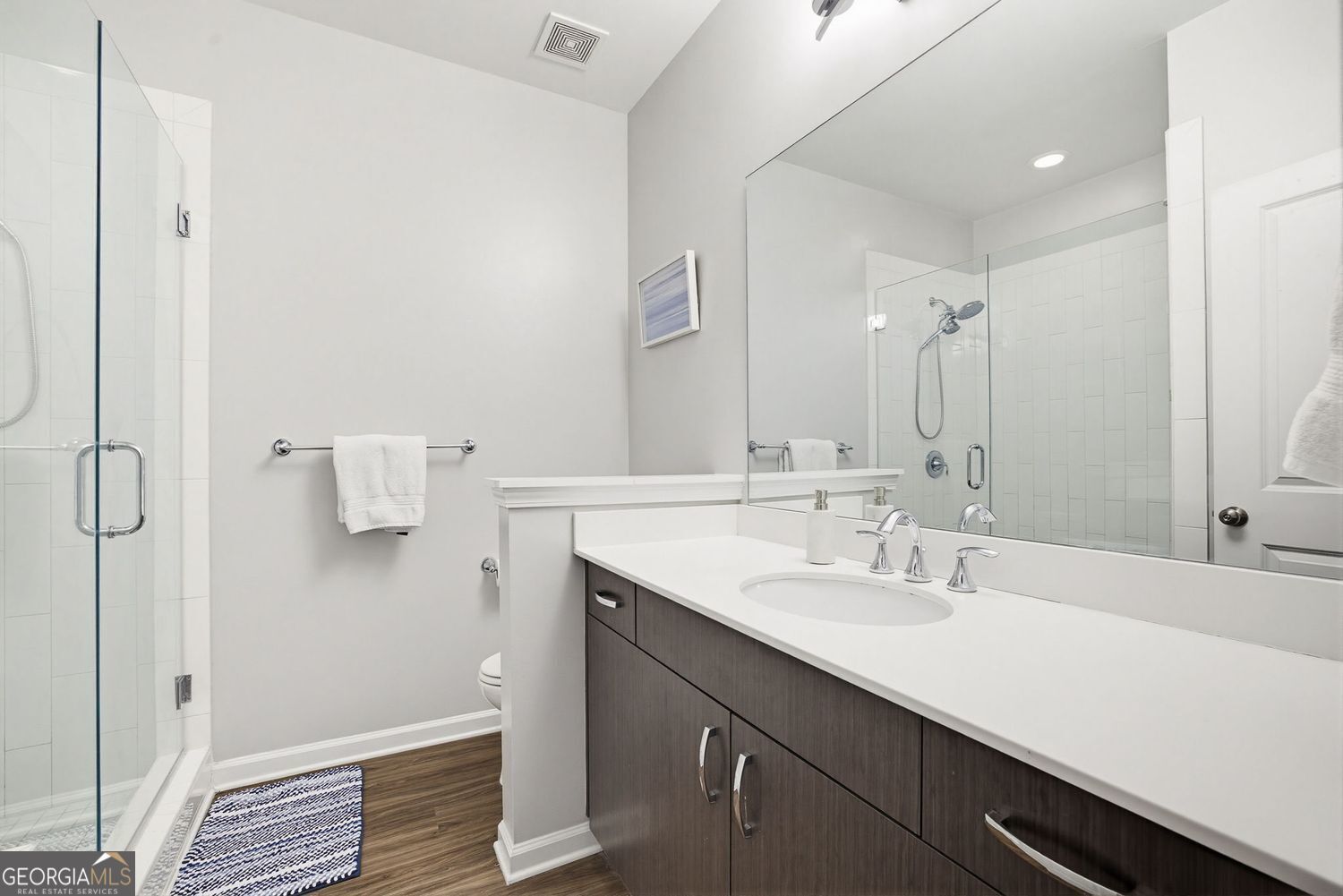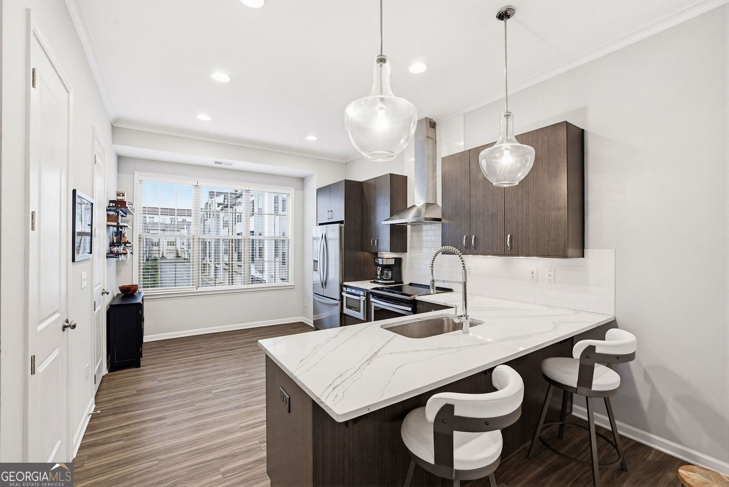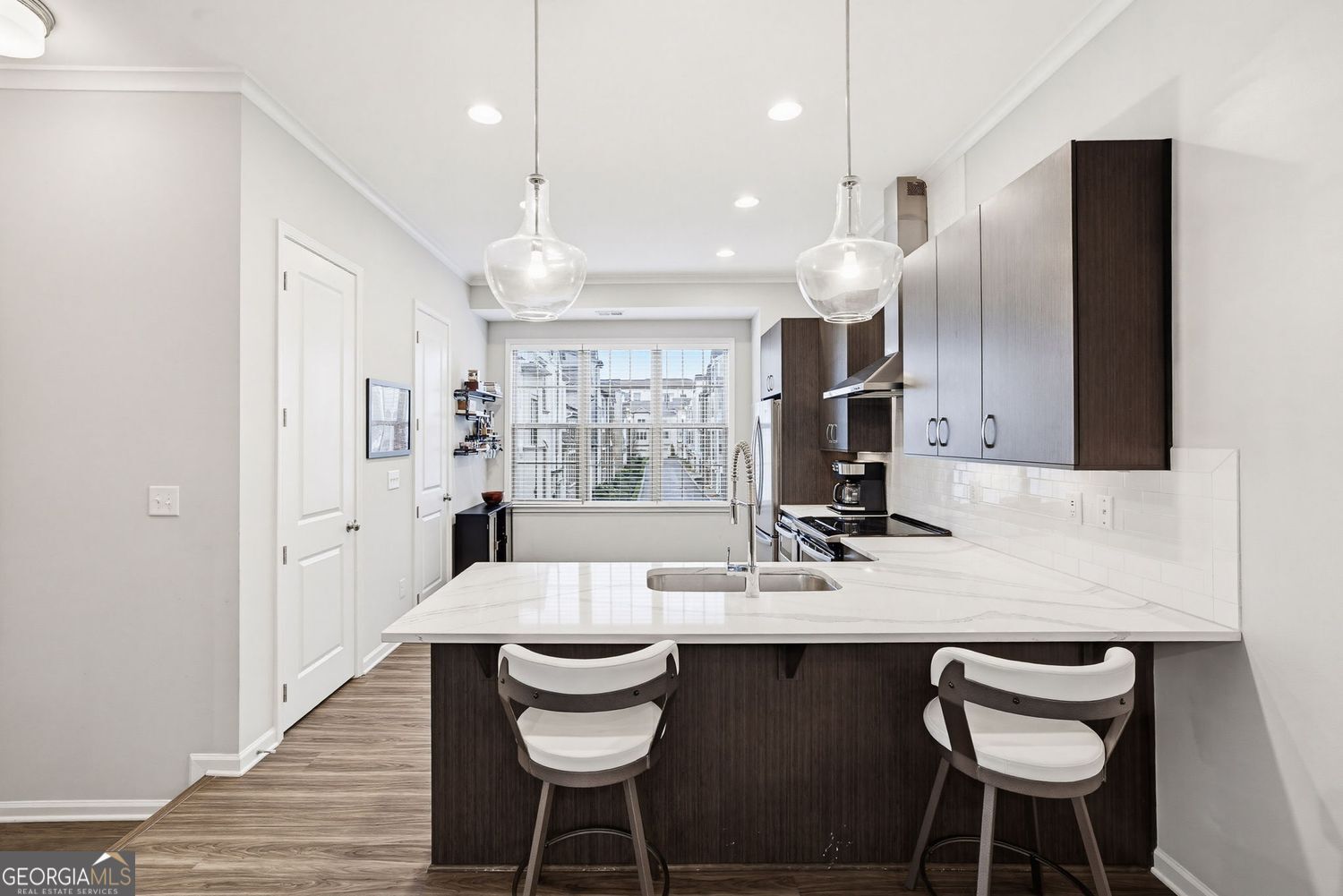 Fantastic opportunity to own a beautifully maintained townhome in the gated Broadview Place community, just seconds from everything Buckhead and intown living have to offer. A welcoming ground-level entry opens to a versatile flex space, ideal for a home office, gym, studio, or additional living area that can evolve with your needs over time. Upstairs, the main level features a bright, airy open-concept layout with stunning floors throughout. The kitchen sits at the heart of the home, perfect for entertaining or casual meals at the island and flows seamlessly into the generously sized family room and separate dining area. Kitchen highlights include ample cabinetry, stainless steel appliances, quartz countertops, and a beautiful vent hood that anchors the space. A convenient half bath and pantry complete the main level. Retreat to the upper floor where the spacious Owner's Suite offers a large walk-in closet and private en suite with abundant counter space and a frameless glass walk-in shower. An additional bedroom with its own private en suite and a dedicated laundry space provide comfort and functionality. A one-car garage offers secure parking and additional storage. New HVAC system and thoughtful upkeep throughout make this one a must-see. All of this in an unbeatable location with quick access to major highways and just moments from top-rated restaurants, vibrant bars, boutique retail, parks, grocery stores, Starbucks, and more!