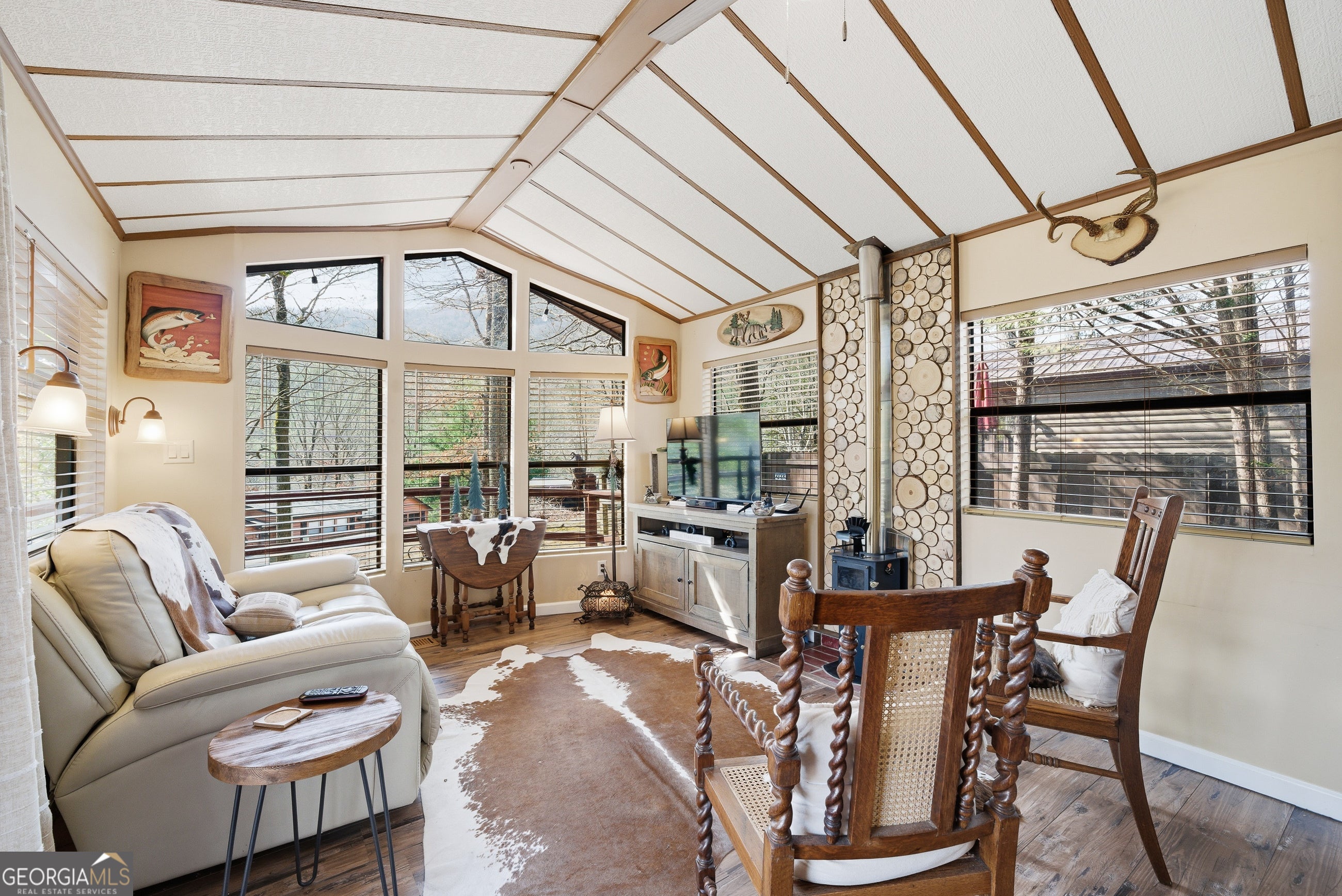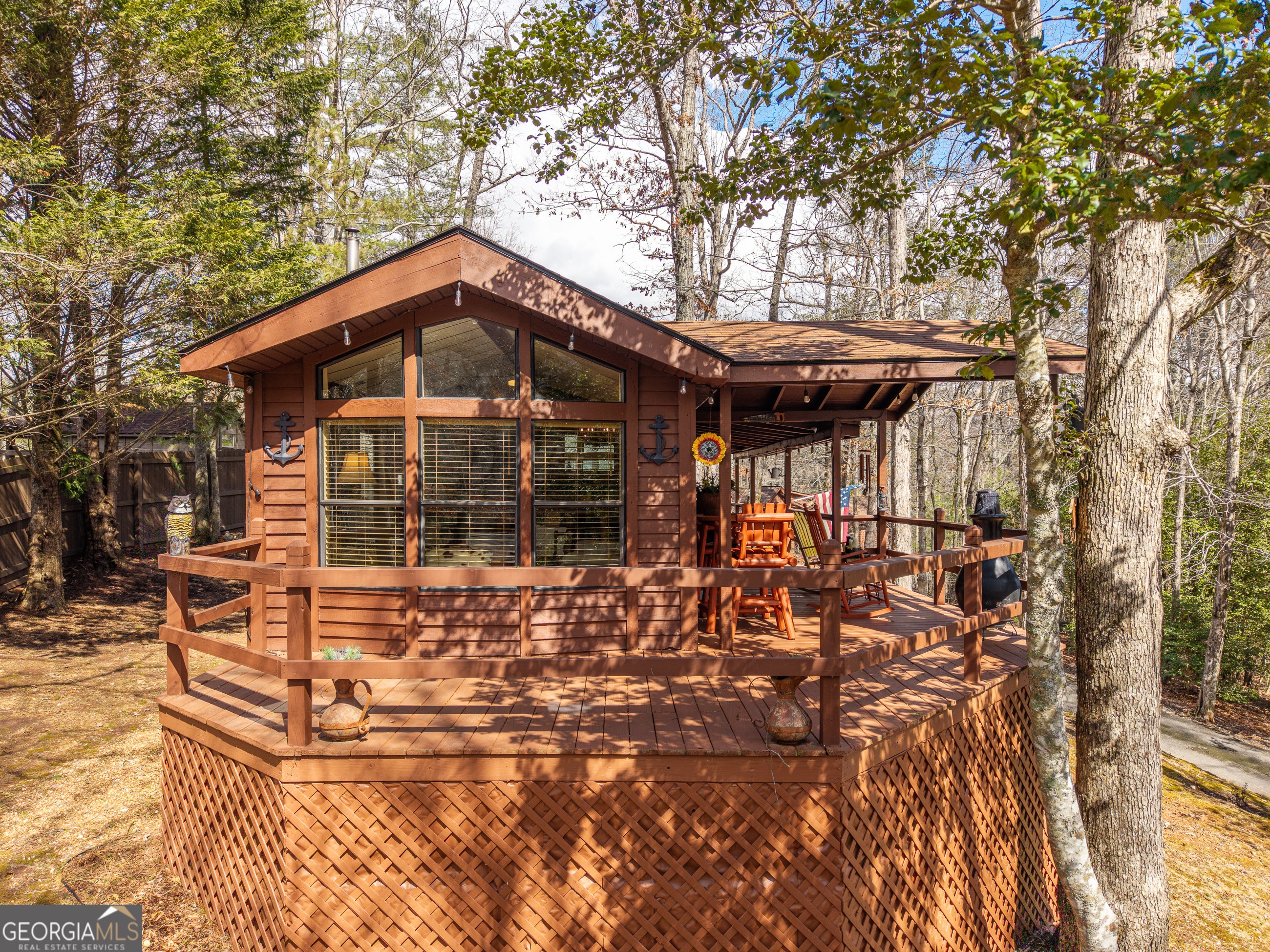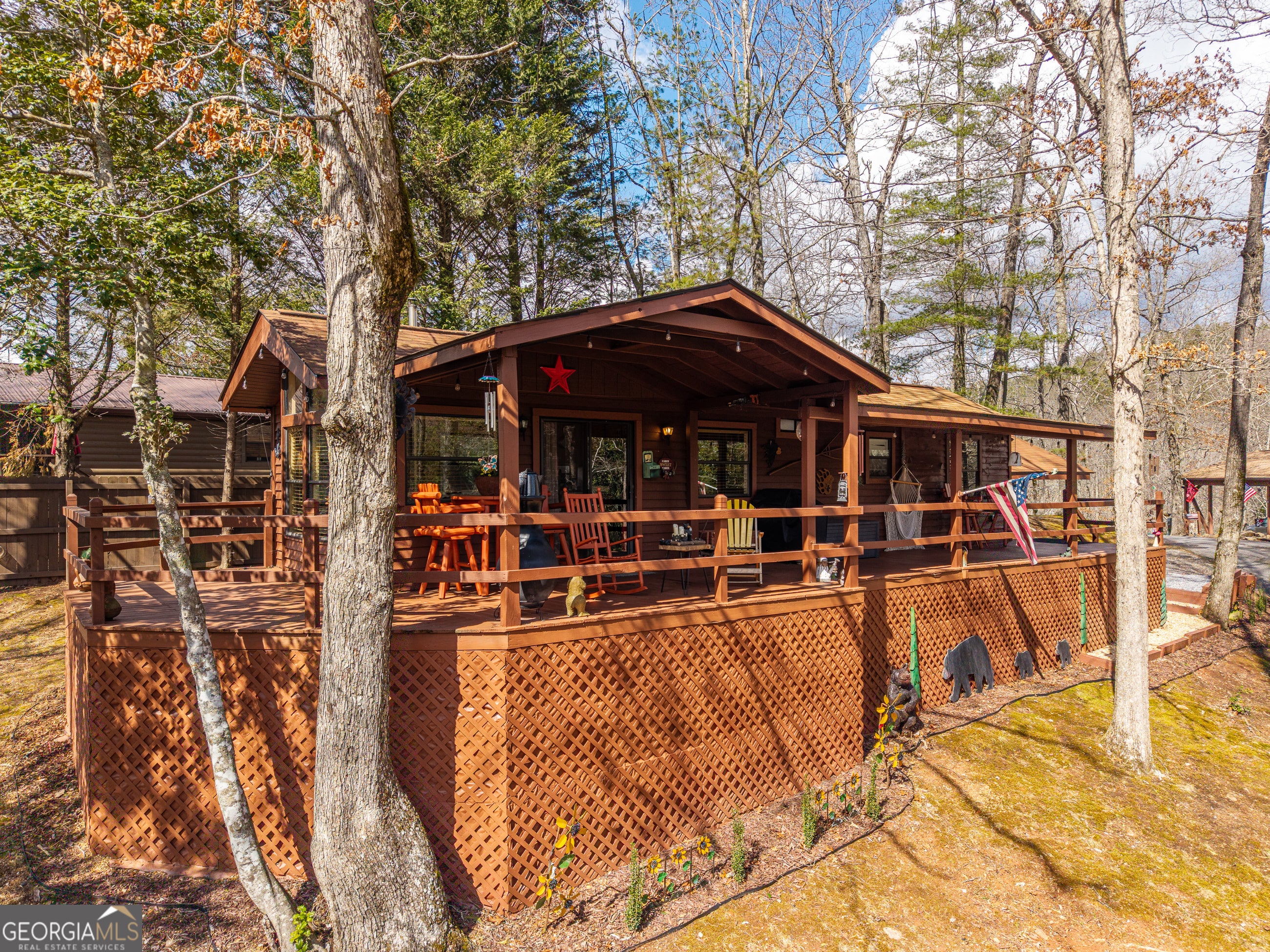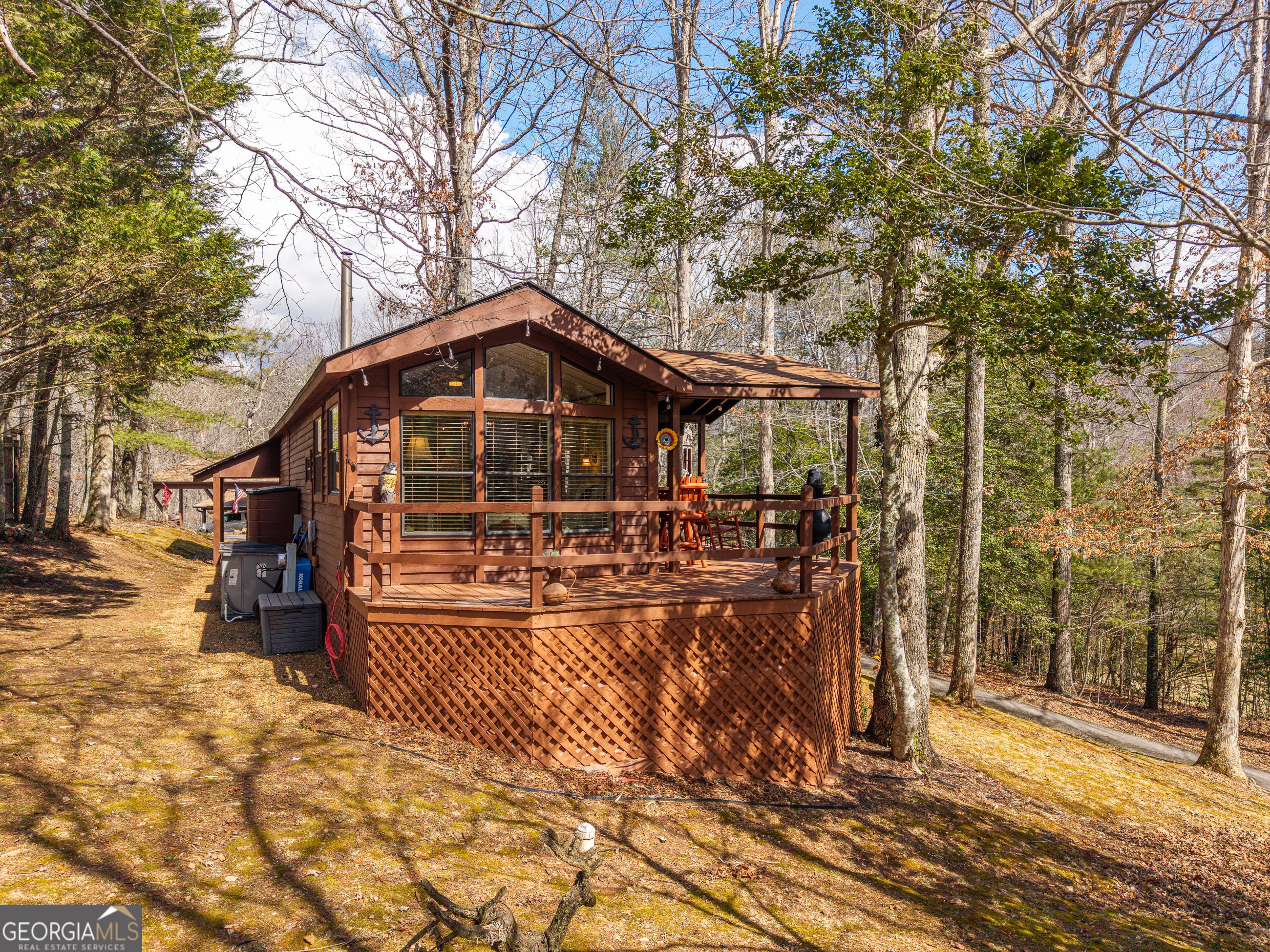 Peaceful, tranquil, and serene are just a few words that describe this thoughtfully designed tiny home at 1856 Deer Run Circle in Hiawassee, Georgia. Built for simplicity and comfort, this 1 bedroom / 1 bathroom home offers approximately 616 square feet of efficient living space with no wasted square footage - cozy, yet perfectly functional. Situated on nearly of an acre in the quiet community of Hiawassee Mountain Village, this property provides the privacy and setting buyers seek in the North Georgia mountains. Enjoy year-round mountain views from the spacious covered front porch - the perfect spot to relax in a rocking chair and take in the peaceful surroundings. Inside, you'll find a well-appointed kitchen, dedicated living area, dining space, bedroom, full bath, and stackable washer and dryer. A wood-burning stove adds warmth and mountain charm, while the new HVAC system and almost new roof (approximately 4 years old) provide added value and peace of mind. A carport offers convenient covered parking. Residents also enjoy access to The Gathering Place community center, featuring tables, a screened porch, and laundry facilities - ideal for family gatherings and social events. Creeks and streams are nearby, enhancing the natural mountain setting. Conveniently located just minutes from downtown Hiawassee and Lake Chatuge, with easy access to Lake Nottley and Lake Burton, this property offers both seclusion and accessibility. Whether you're looking for a full-time residence, mountain retreat, or investment opportunity, this charming tiny home delivers. HOA includes Lawn Maintenance, Water, Sewer.
