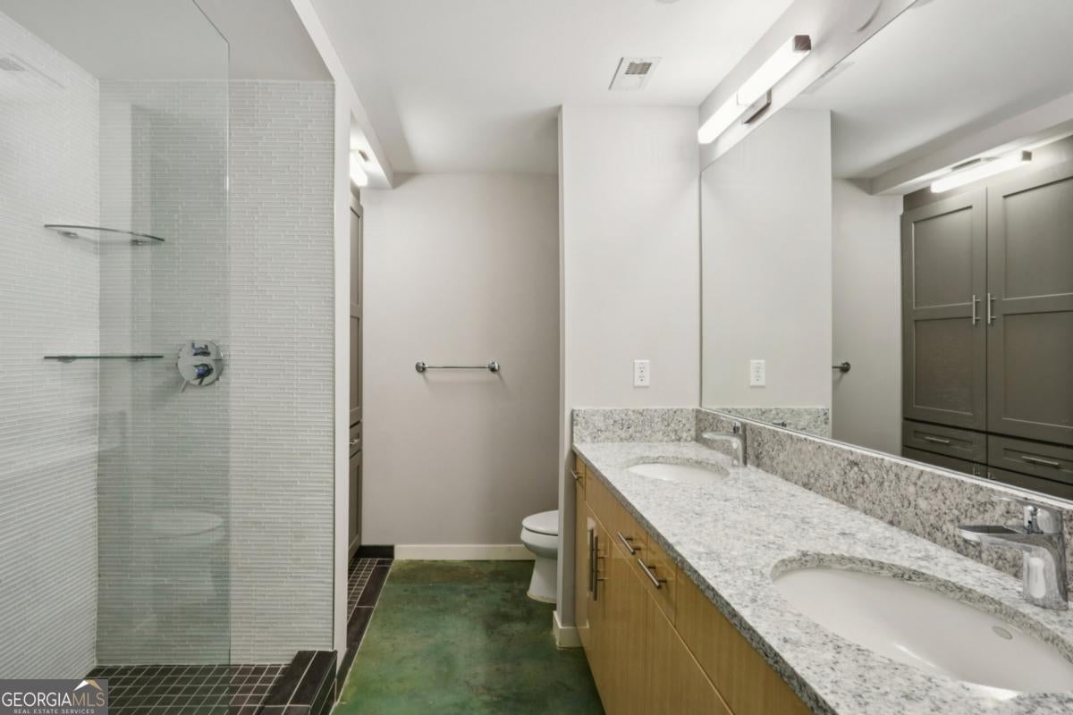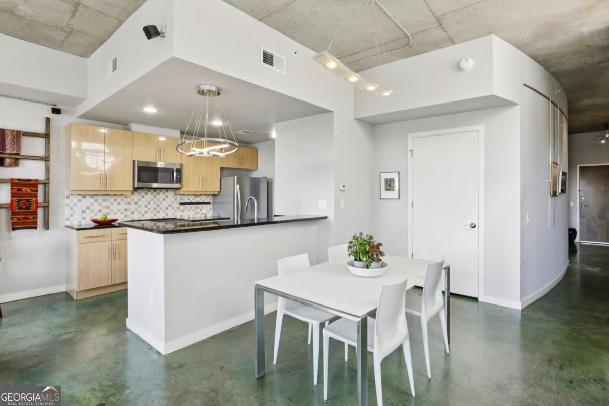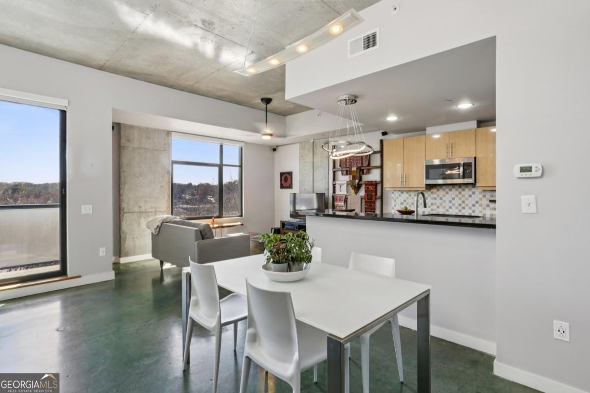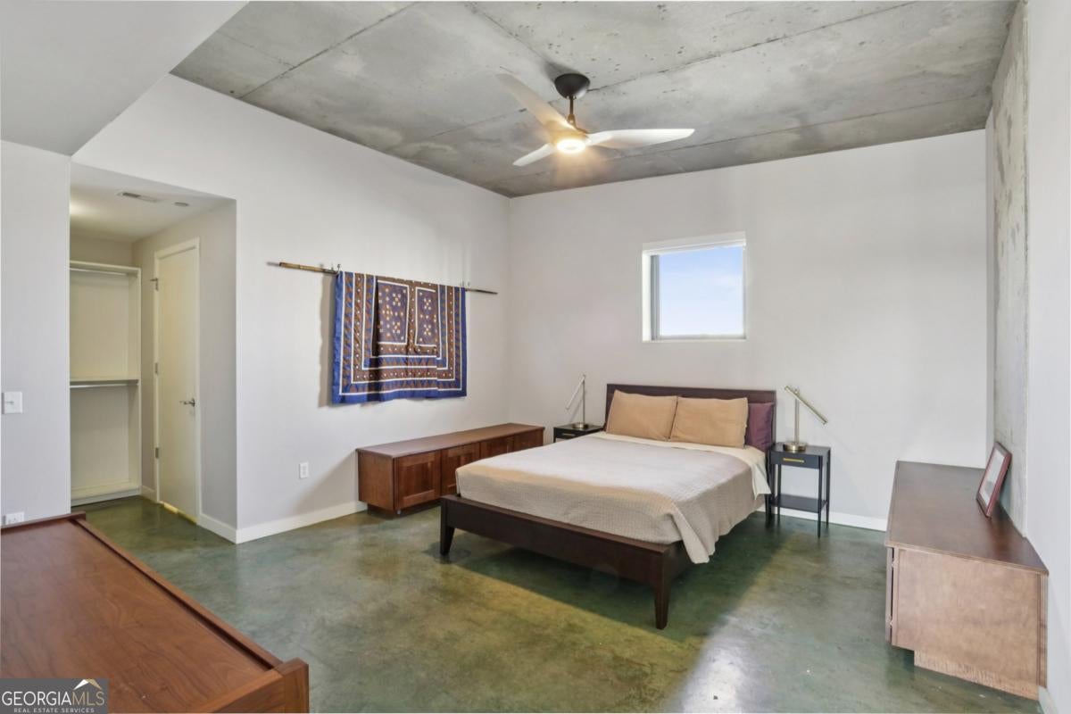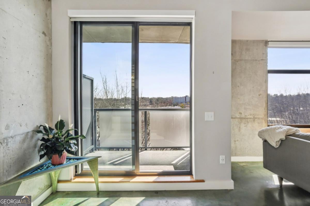 Live elevated in this striking penthouse contemporary loft in the heart of Downtown Decatur. Spanning two levels with a private rooftop deck, architectural drama meets effortless, lock-and-leave living. From the moment you enter, the design makes a statement - soaring concrete ceilings and floors, a sweeping entry, floating staircase, curated modern lighting, and impressive built-ins that blend form and function. The industrial elements are balanced with high-end finishes throughout, creating a space that feels both bold and refined. The main living area opens to a covered balcony with Downtown Decatur views - the perfect shaded perch for morning coffee or a quiet reset between meetings. Upstairs, your private rooftop patio offers a completely different perspective: open sky, warm sun, and front-row seats to sunset gatherings with friends and thoughtfully crafted cocktails. The open-concept kitchen anchors the space with stainless steel appliances, induction cooktop, a granite breakfast bar, and seamless flow into the living and dining areas - ideal for entertaining. Two bedrooms feature lofted ceilings that amplify the sense of volume, while wide-vanity bathrooms make getting ready for an evening on the Square effortless. A bonus flex space provides the perfect office or creative studio, and custom closets throughout ensure storage is never an afterthought. Take full enjoyment the community's rooftop pool and well-equipped fitness center have to offer. Located just blocks from Decatur Square, the Decatur MARTA Station, shops, and award-winning restaurants, this home offers a Walk Score of 94 - truly a walker's paradise. Two well-lit, secured parking spaces in the gated deck make coming and going seamless. With easy access to Emory University, the CDC, VA Hospital, Druid Hills, Midtown, and Virginia Highlands, this contemporary live-work-play community offers the ultimate blend of convenience, security, and style. This isn't just a condo - it's a front-row seat to the best of Decatur living.