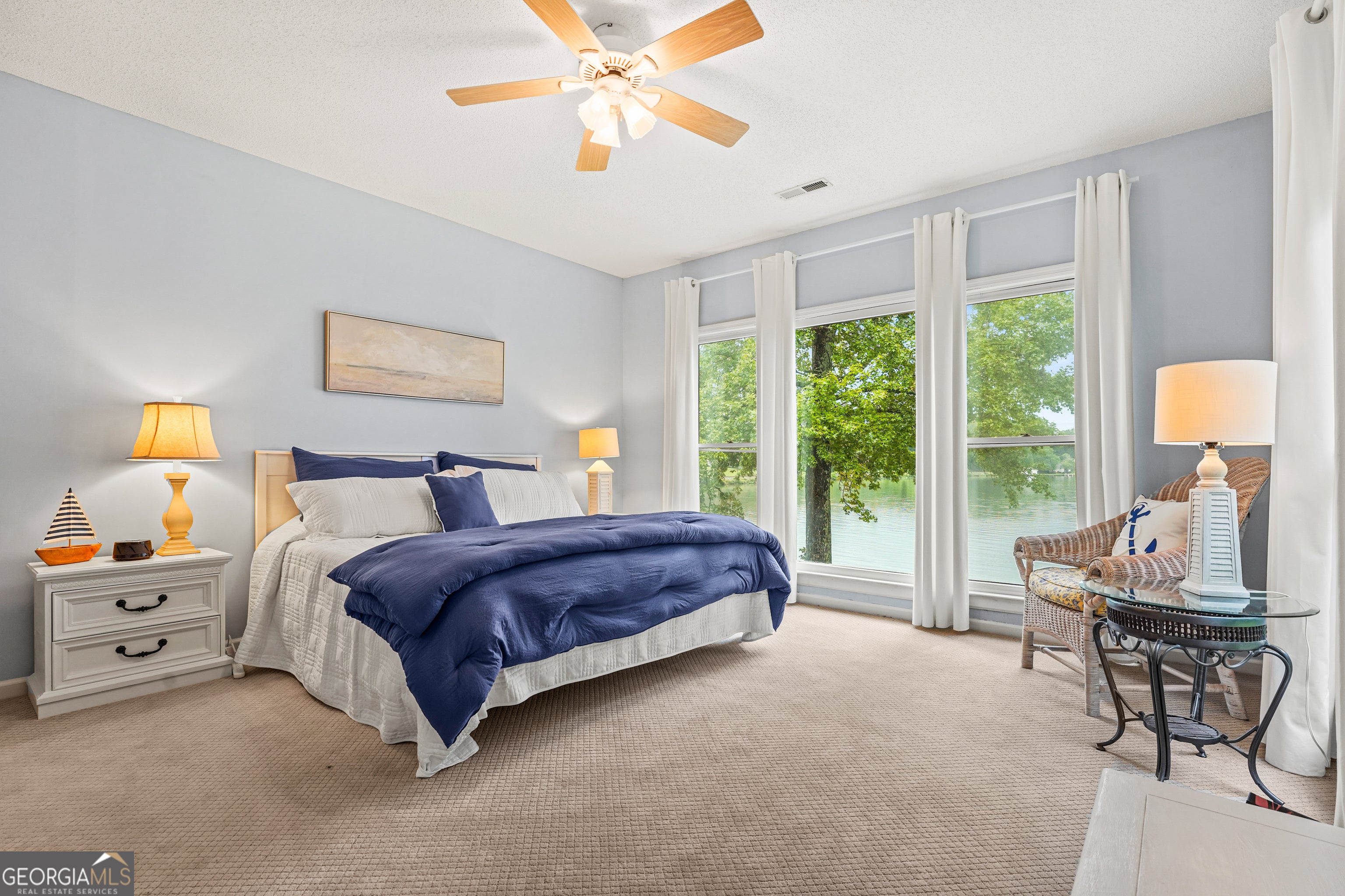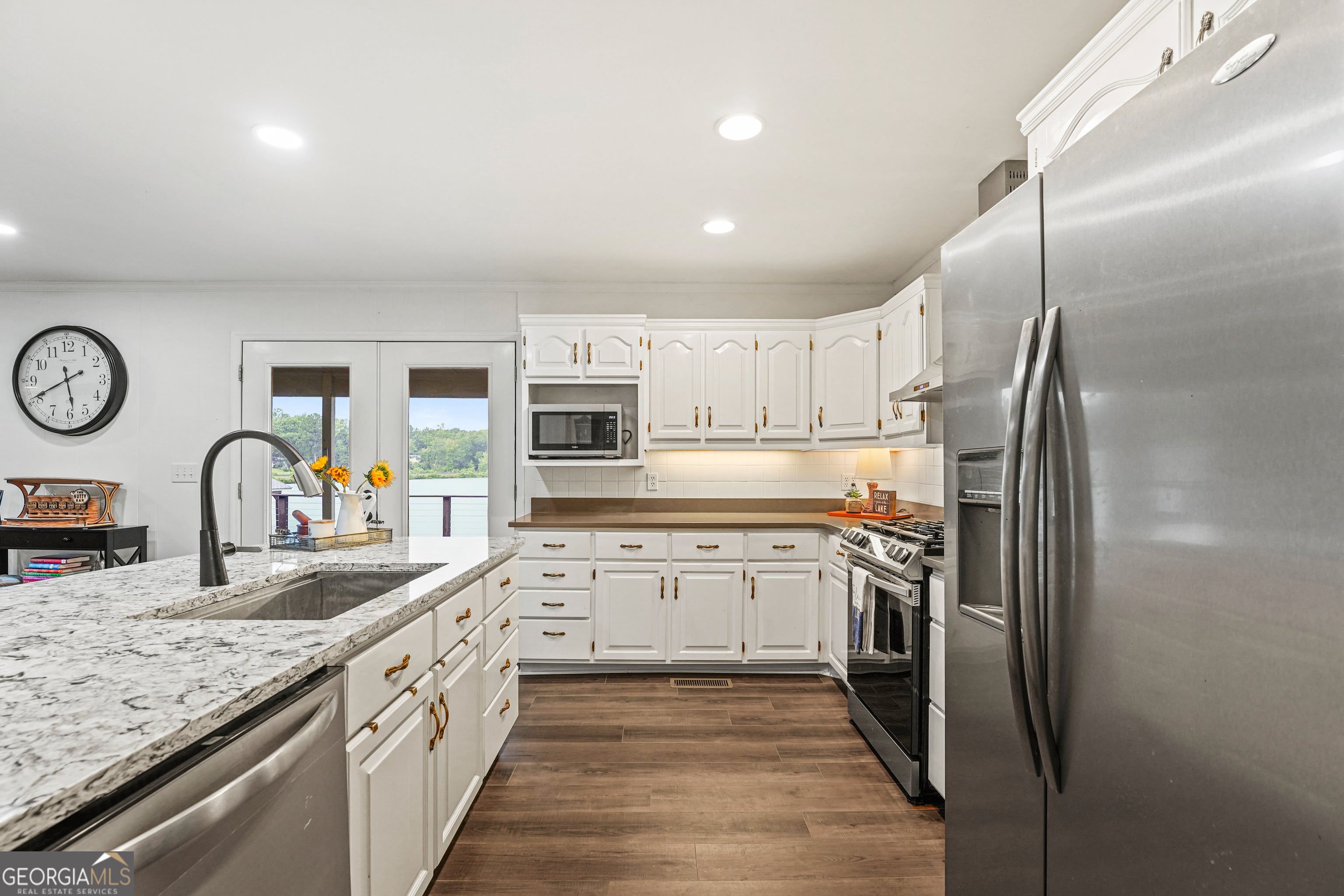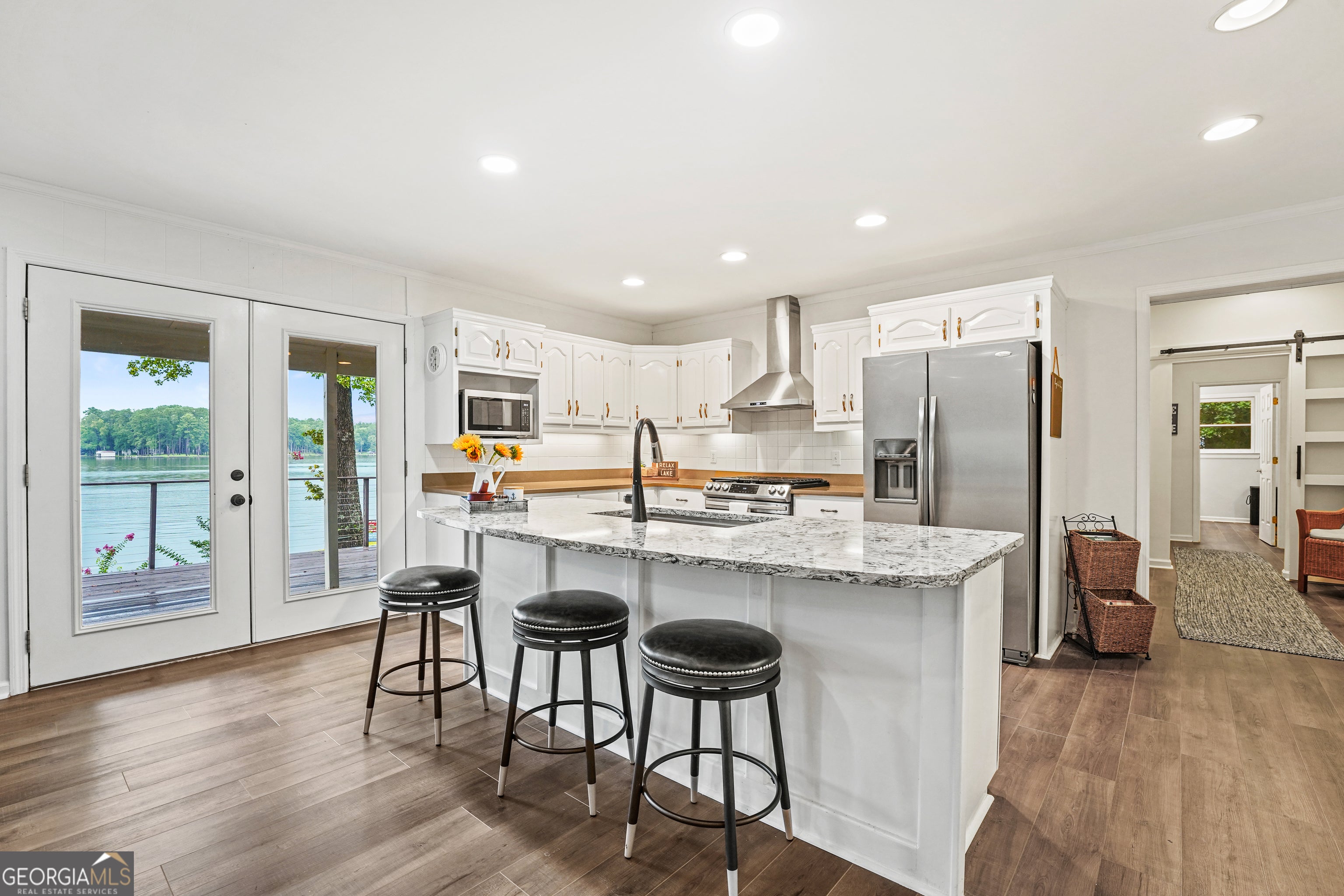 Looking for a Lake Sinclair lake home in Baldwin County that is convenient to shopping (less than 5 miles from Milledgeville Kroger/Publix), is move-in ready, has deep water, almost 200 ft. of water frontage, a double boathouse, over 3000 sq. ft., large open views of the lake, and on 1.47 acres? Well, look no further. This home has gone through a huge transformation and it is stunning! All of the 4 bedrooms face the water and are large; not only do you get to wake up to beautiful views of the lake but so do your guests! This home is also steps from the water, so the views are wide open from all of the lakeside rooms. Other features and updates that I love about this home are: the luxury vinyl tile throughout, remodeled kitchen with new appliances and quartz countertops, and a large counter height island, the large walk-in pantry, added windows in the living room which allows more lake views, new office with a barn door that allows privacy or when open gives a beautiful view of the lake, new carpet, remodeled bathrooms, the added railings on the outside deck, the large deck and covered porch on the lakeside, and the circular driveway. The lists go on! Also, the boathouse was redone in 2022 with new pillars, posts, decking, and a new dock and the roof on the home and the boathouse were replaced in 2023. Both HVAC systems were replaced November 2025. New Water Heater installed in Feb 2026. Note: a small portion of the home was built in 1967 but a large addition was added in 1993. Call to schedule a showing today! You won't be disappointed! It is gorgeous and ready for a new owner!