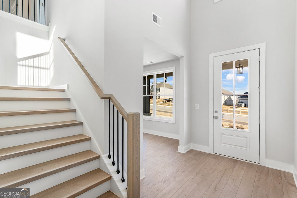 Brand New Construction in the Manor at Gainesville township! See our Master on Main PEACHWOOD floor plan. This home features a tandem 3-car garage. Step inside to an open-concept floor plan featuring a bright, airy living space, a gourmet kitchen with stone-surface countertops, a large island, and stainless-steel appliances, including a double oven. The spacious living room features 12-foot ceilings and flows seamlessly to a covered back patio. The main bathroom has a double vanity, an oversized shower and an extensive closet. This plan offers a flex room that can serve as an office or dining area on the main level. The laundry room is located on the main floor with double cabinets and tile flooring. The second floor features a generous loft area, three more bedrooms, and a large, fully tiled bathroom with a double vanity. Bring your buyers to enjoy this stunning living space with an Olympic-sized pool, pickleball and tennis courts, a fitness center, and a clubhouse with a conference room. **Interior Stock photos being used** Call TODAY! Ask us about our $35,000 Flex Cash Any Way, You Want It* incentive with the use of a preferred lender, with a binding contract by 04/30/2026.
