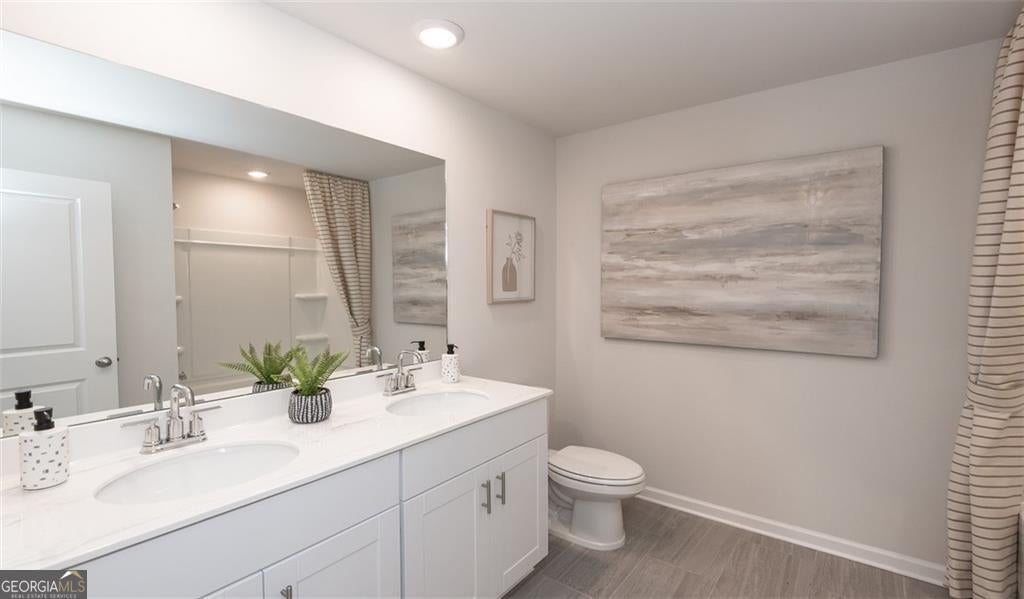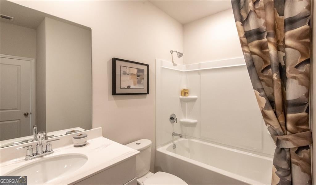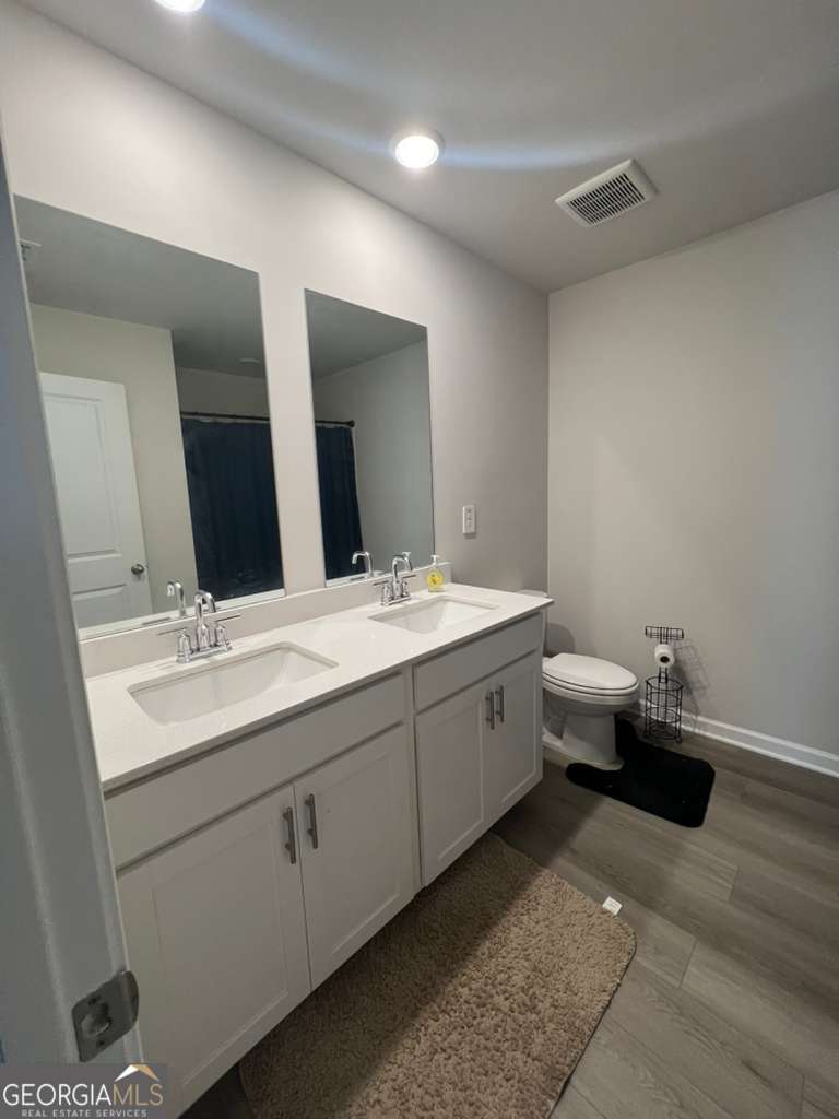 2023 built Exceptionally well maintained 5 BED 4.5 BATH home available for rent. Spacious, open-concept main floor with large kitchen island, dining area and a great room, patio Deck overlooking small pond are perfect for entertaining. Bed+ full Bath on main level (Guest suite) in addition to a half-bath and a study room which can be used as a study or a bedroom. Upstairs, the primary suite features a large walk-in closet and an ensuite bath with dual vanity. 3 additional bedrooms upstairs which share a bathroom. Laundry room with washer+ dryer. Additional entertaining loft area upstairs which can be used as a media room or a play area. Huge unfinished walk-out basement can be used for storage or as a workshop. Close proximity to shopping and dining plus convenient access to I-85 and GA-316. Close to GSMST magnet school. Planned amenities include a community clubhouse, a swimming pool and green spaces. Gated Entry ** House has built in water purification system and RO system.