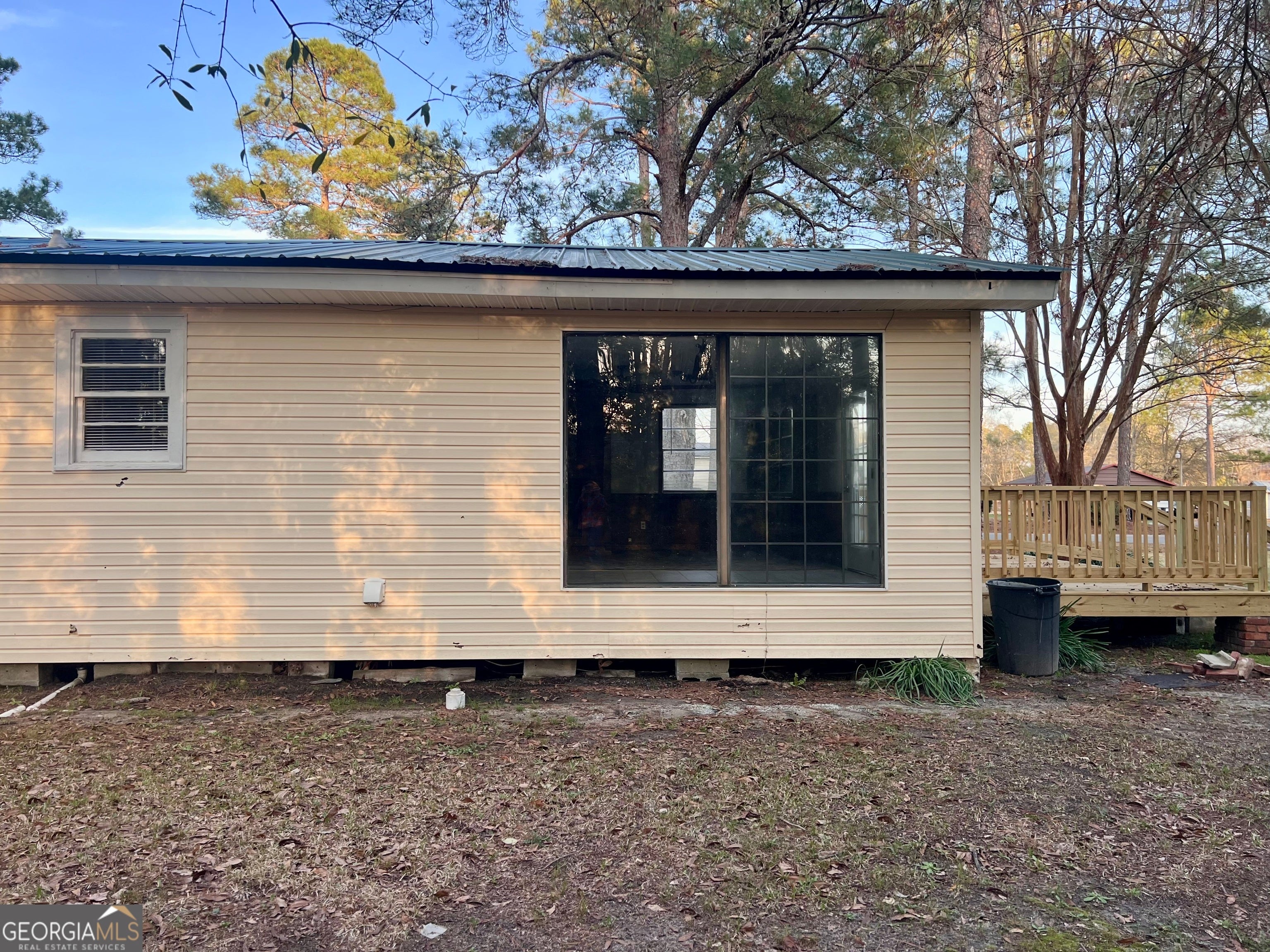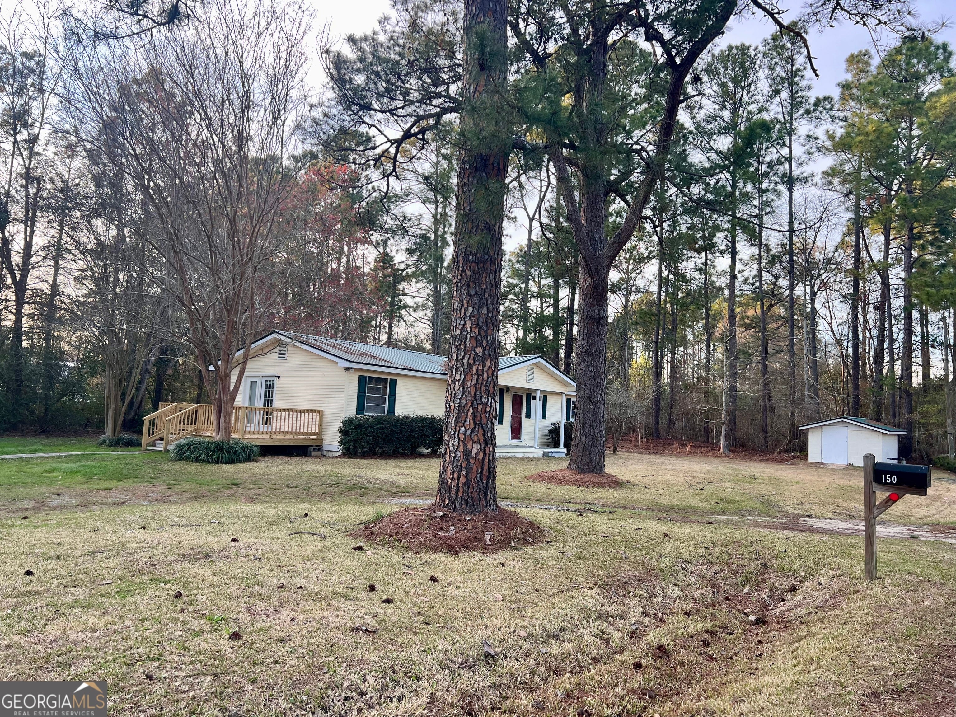 Charming 3-bedroom, 2-bath home sits on a beautifully landscaped 0.46-acre lot and features a year old metal roof for added durability and peace of mind. Enjoy outdoor living on a new spacious deck overlooking the yard-perfect for relaxing or entertaining. Inside, you'll find a large living room featuring a cozy brick fireplace and custom built-in cabinets. The kitchen is fully equipped with a dishwasher, stove, and refrigerator, and includes a separate area for dining. The home offers two additional bedrooms, with a guest bathroom conveniently located in the hallway. The large master bedroom provides a private retreat, with an additional bathroom, and features sliding glass doors that lead directly outside. Additional highlights include a 20x26 storage building/workshop, providing ample space for tools, hobbies, or extra storage.