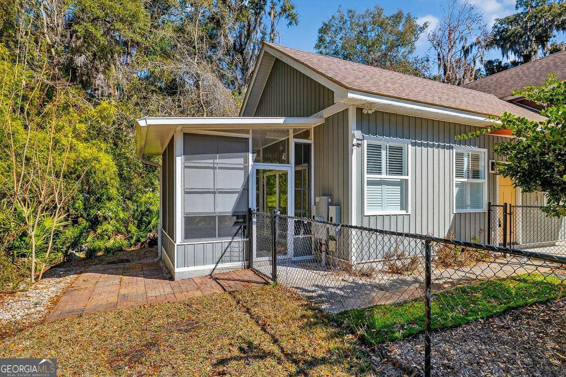 Rare opportunity to own a single family residence designed with a duplex style layout. This property features a fully attached ADU creating two independent living spaces under one roof, ideal for multi-generational living, guests, or rental income. Each side includes its own kitchen, bedrooms, bathrooms, LVP flooring, and stacked washer and dryer for added functionality and privacy. The living areas are divided by the garage, enhancing independence while maintaining the convenience of a connected home. Only seven years old and in excellent condition, the home sits on a generously sized lot with St. Simons Land Trust property to the west and a Dunbar Creek residence behind, providing privacy and elbow room. The home also offers unfinished attic space with potential for future expansion or additional storage. No HOA and no flood insurance required. Enjoy coastal living with an all-seasons porch and partially fenced yard on one side and another screened in porch on the other. Conveniently located near shopping, dining, and beaches, this move-in ready property is an exceptional opportunity.