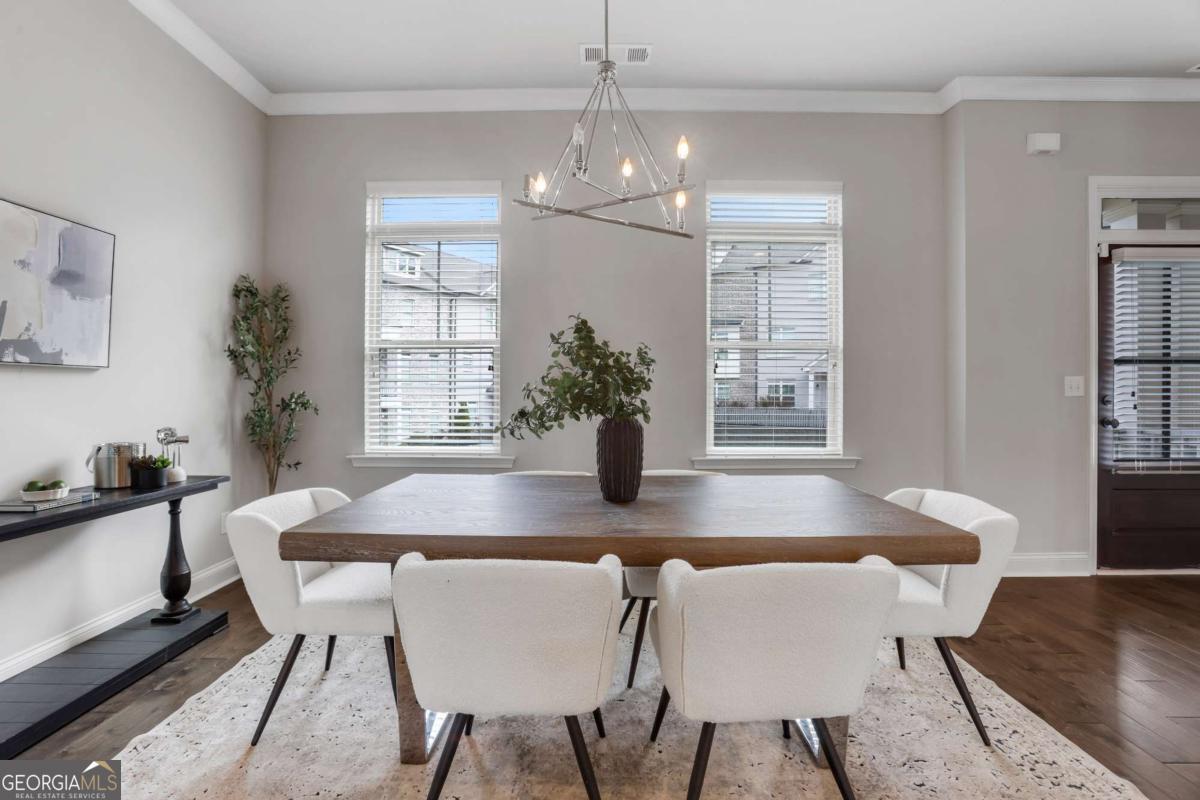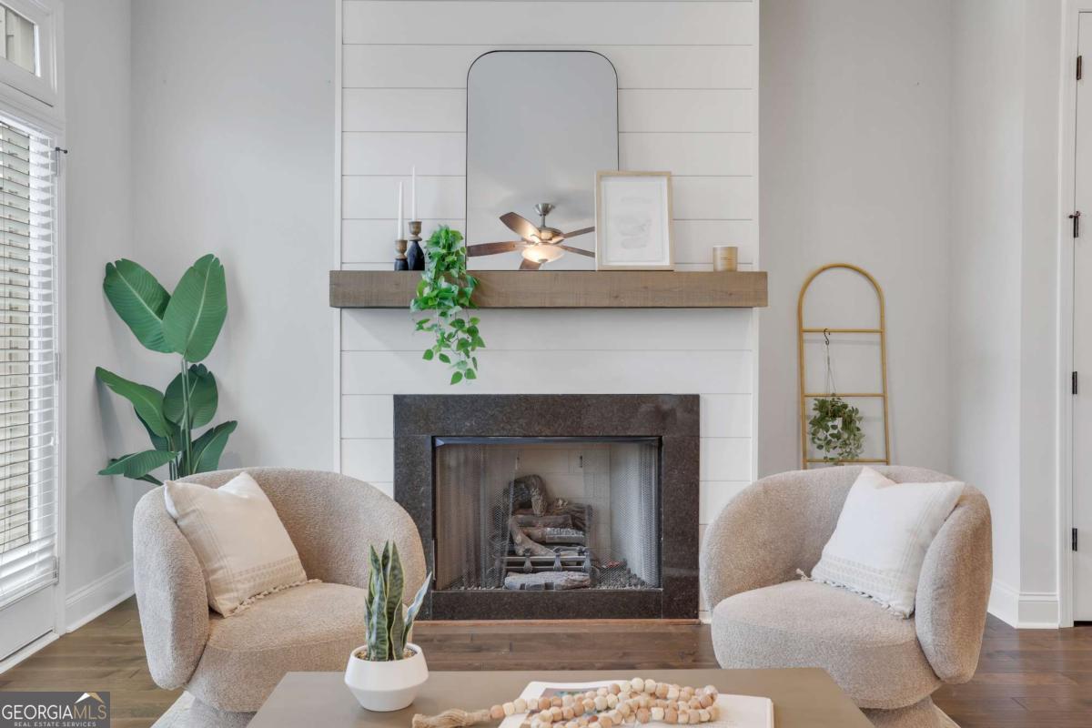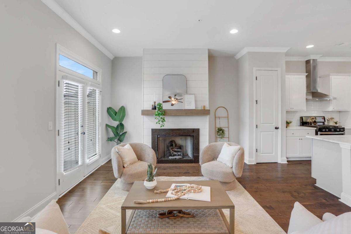 Exclusively listed by David Bascoe of Compass Atlanta. This gated Smyrna townhome offers convenience and charm, featuring a lovely walk-out patio with views of the parklike greenspace. The open-concept floor plan includes 4 bedrooms, 3.5 baths, and a 2-car garage. The family room boasts a custom gas fireplace, while the gourmet kitchen showcases white granite countertops, high-end stainless steel appliances, and a view to the balcony. Enjoy gorgeous hardwood floors and 10-foot ceilings on the main level, where the Owner's suite includes an oversized shower and two walk-in closets. Located in the desirable King Springs Elementary School District, this home also benefits from low Cobb County taxes and low HOA fees. Just minutes from I-75, I-285, the airport, and The Battery Atlanta.