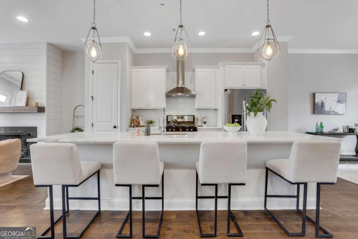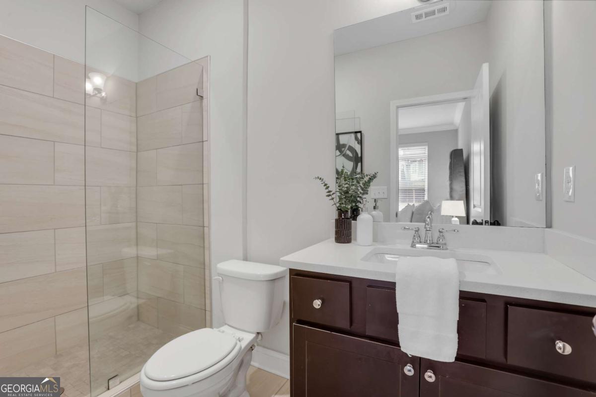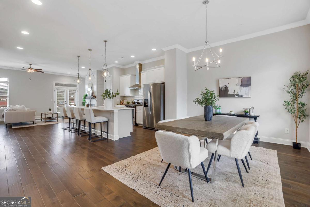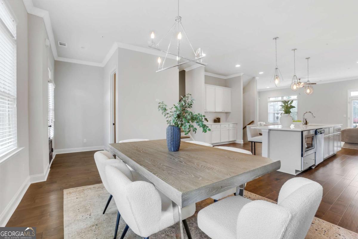 Exclusively listed by David Bascoe of Compass Atlanta. This gated Smyrna townhome offers convenience and charm, featuring a lovely walk-out patio with views of the parklike greenspace. The open-concept floor plan includes 4 bedrooms, 3.5 baths, and a 2-car garage. The family room boasts a custom gas fireplace, while the gourmet kitchen showcases white granite countertops, high-end stainless steel appliances, and a view to the balcony. Enjoy gorgeous hardwood floors and 10-foot ceilings on the main level, where the Owner's suite includes an oversized shower and two walk-in closets. Located in the desirable King Springs Elementary School District, this home also benefits from low Cobb County taxes and low HOA fees. Just minutes from I-75, I-285, the airport, and The Battery Atlanta.