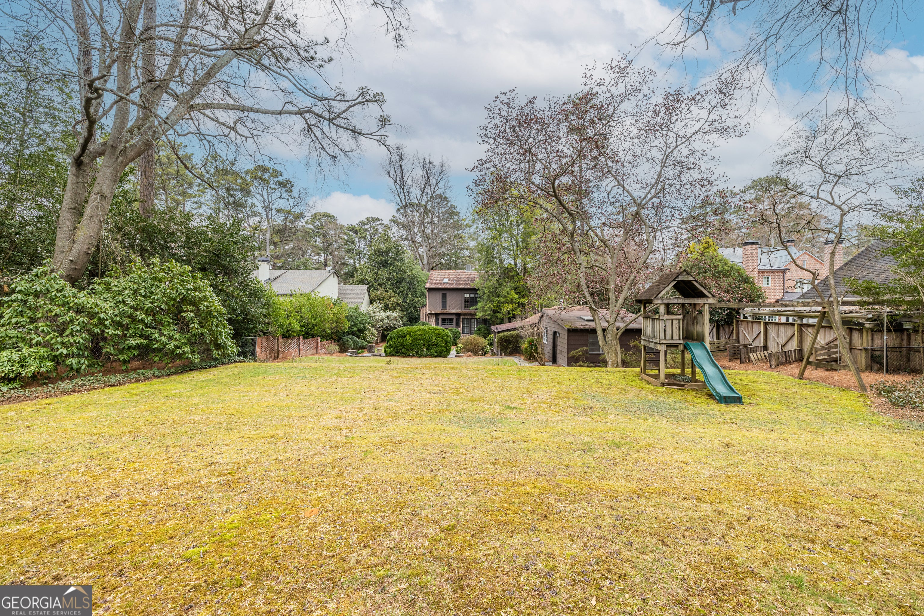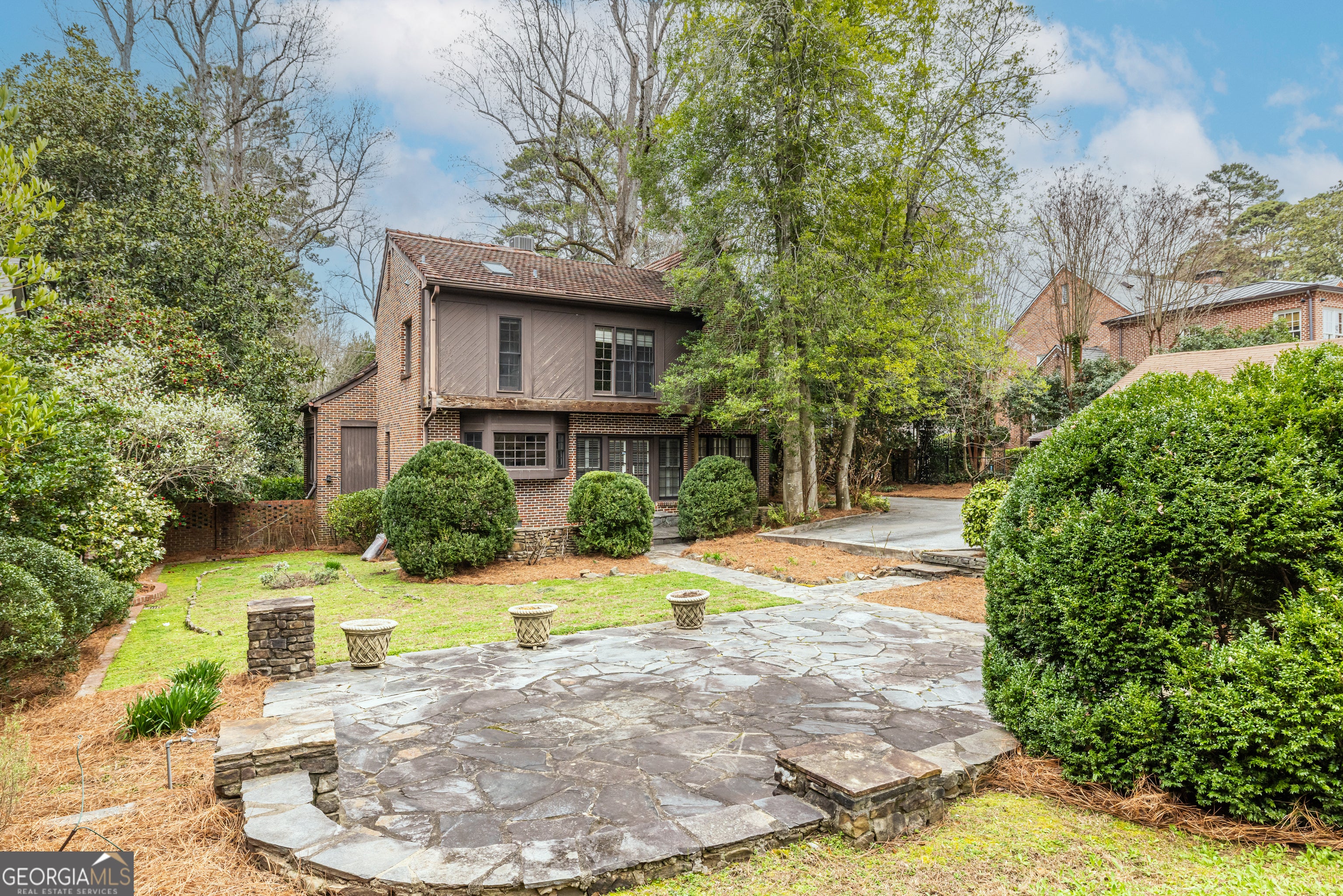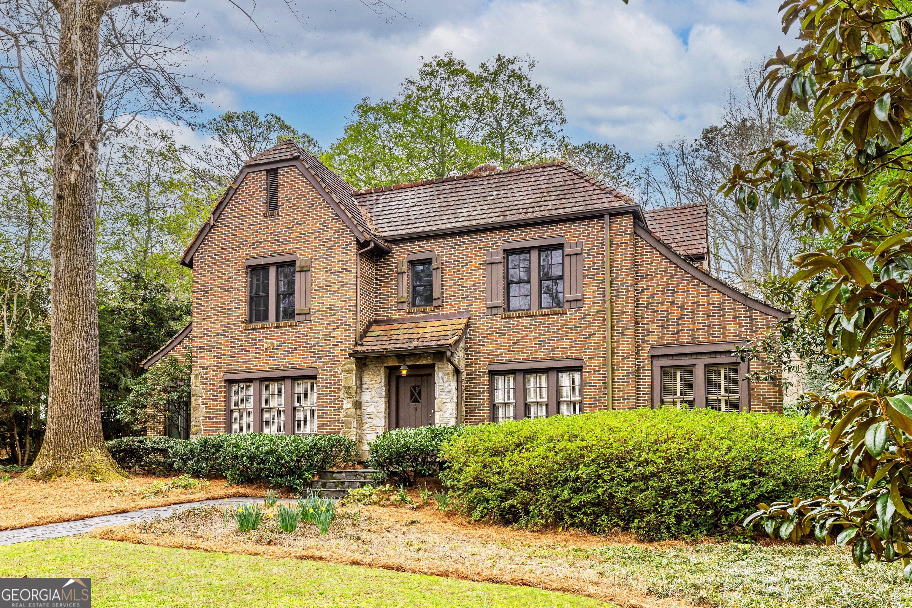 *Seller will not respond to any offers prior to 5pm on Monday, March 9, 2026.* There are neighborhoods in Atlanta that people admire, and then there is Historic Brookhaven. Tucked just minutes from the commercial heartbeat of Buckhead, yet worlds away in feel, Historic Brookhaven is defined by winding streets, mature canopy trees, manicured lawns, and the quiet confidence of homes that have stood the test of time. With the Capital City Club just around the corner and parks woven throughout the neighborhood, this is one of the most sought after addresses in the entire city. And then there is this opportunity. Set on a large, deep lot on a private street just off Peachtree Dunwoody Road, this stately brick Tudor sits surrounded by mature landscaping on all sides. As you pull in, there's a sense of quiet and permanence. Big trees. Established homes. Lawns that have been cared for over decades, not just seasons. It feels settled in the best possible way. Inside, a wide central hallway anchors the main level and sets the tone immediately. To one side, a gracious living room centered around a substantial fireplace. To the other, a true dining room ready for holidays, dinner parties, or simply a Tuesday night that feels a little elevated. There is a comfortable den for everyday living, and a generously sized kitchen featuring an enormous bay window, abundant counter space, and classic white cabinetry. Two sunrooms extend the living space even further, offering flexibility for a playroom, reading room, art studio, or that quiet morning coffee spot you'll guard fiercely. Upstairs, four large bedrooms provide room to spread out. The primary suite features a vaulted ceiling and a marble clad ensuite bath that feels substantial and timeless. A second bedroom has most recently served as a home office, perfect for today's hybrid lifestyle. Two additional bedrooms share a Jack and Jill bath, thoughtfully positioned for both privacy and convenience. Out back, beyond the landscaped patio, sits a detached garage with a full one bedroom, one bathroom guest suite. Whether for extended family, a long term guest, an au pair, or rental potential, this is a meaningful asset that adds flexibility and long term value. Now let's talk about what makes this truly special. Historic Brookhaven is one of those neighborhoods where opportunities simply do not come along often. The lot alone, deep and private, is compelling. The home itself offers solid bones and generous proportions for an intrepid renovator ready to bring a vision to life. And for a builder looking to start anew, the setting supports a showpiece. Surrounded by beautifully maintained homes and protected by the enduring appeal of the neighborhood, this is the kind of investment that makes sense both emotionally and financially. Some homes are turnkey. Others are transformational. This one is an opportunity.