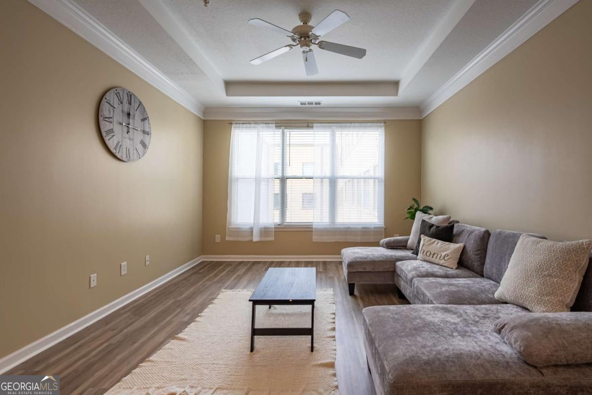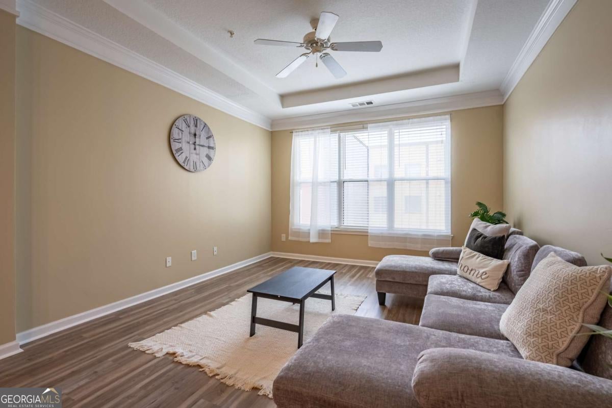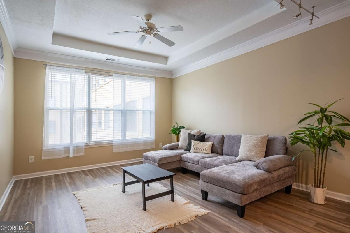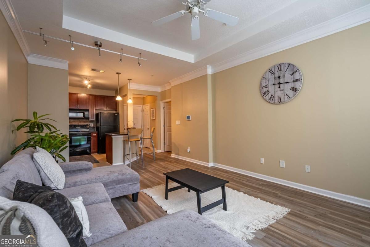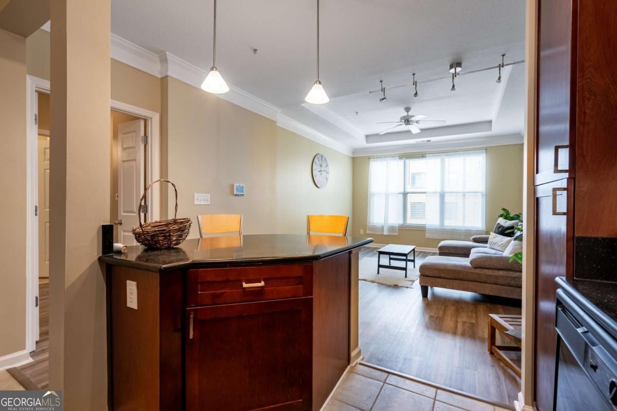 Beautiful apartment in the heart of Atlantic Station! This fully furnished, all electric space features a washer and dryer, kitchen island with breakfast bar, walk in closet, tray ceiling, crown molding, LVP and tile flooring, pendant & track lighting, coat closet, ceiling fans, garbage disposal, alarm system, pantry and built in microwave. Spacious, full bath has tons of cabinets & drawers and a soaking tub/shower combo. Gated, covered parking has an assigned space and guest parking. Community includes gym, pool, clubhouse & BBQ. Atlantic Station shuttle will take you to Marta Arts Center Station in midtown. Just a few blocks away from Ikea, Millenium Gate Museum, shopping and restaurants. No pets allowed.
