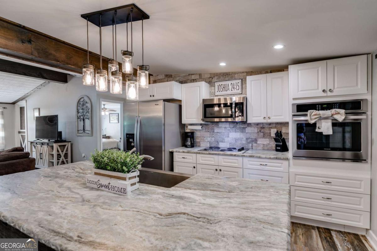 - AppliancesCooktop, Dishwasher, Dryer, Electric Water Heater, Microwave, Oven (Wall), Refrigerator, Stainless Steel Appliance(s), Washer