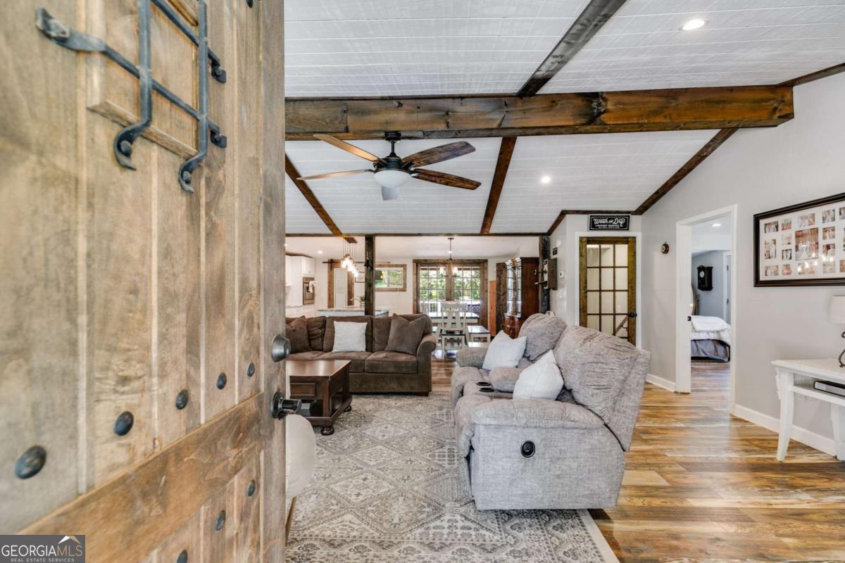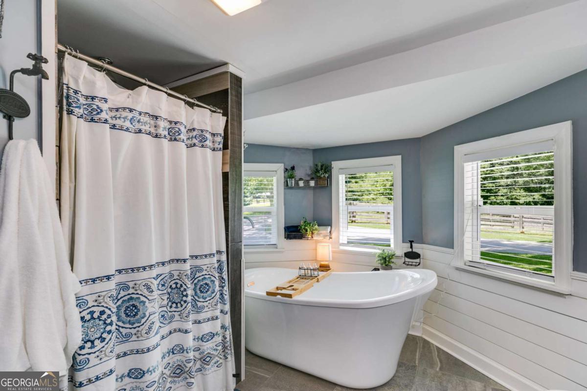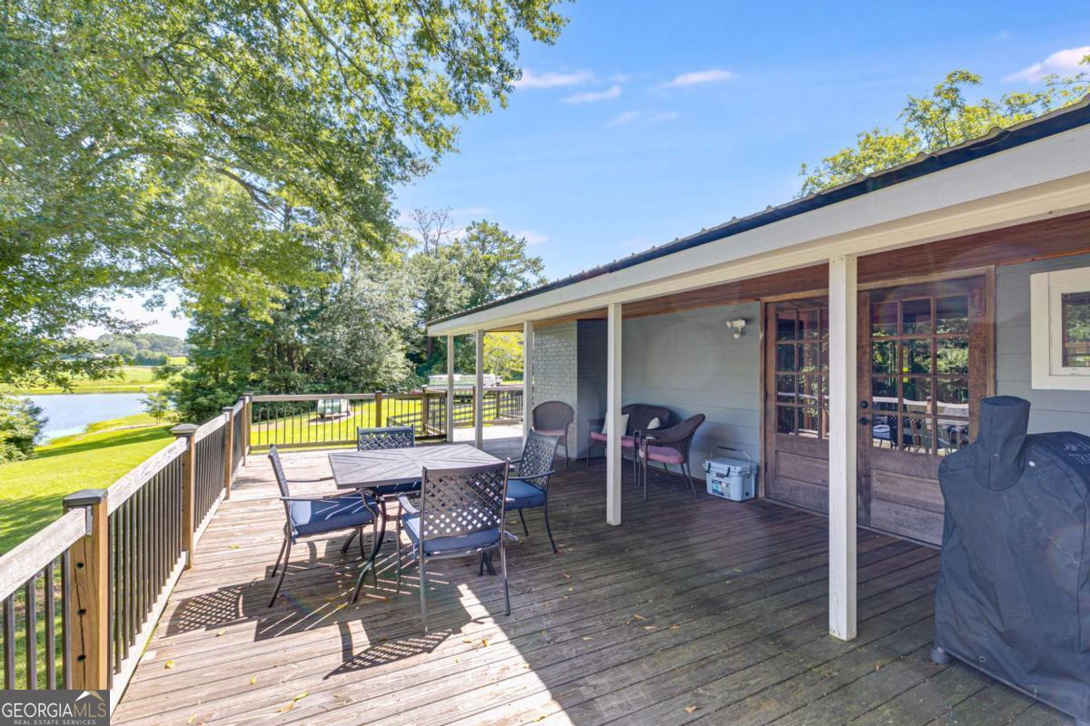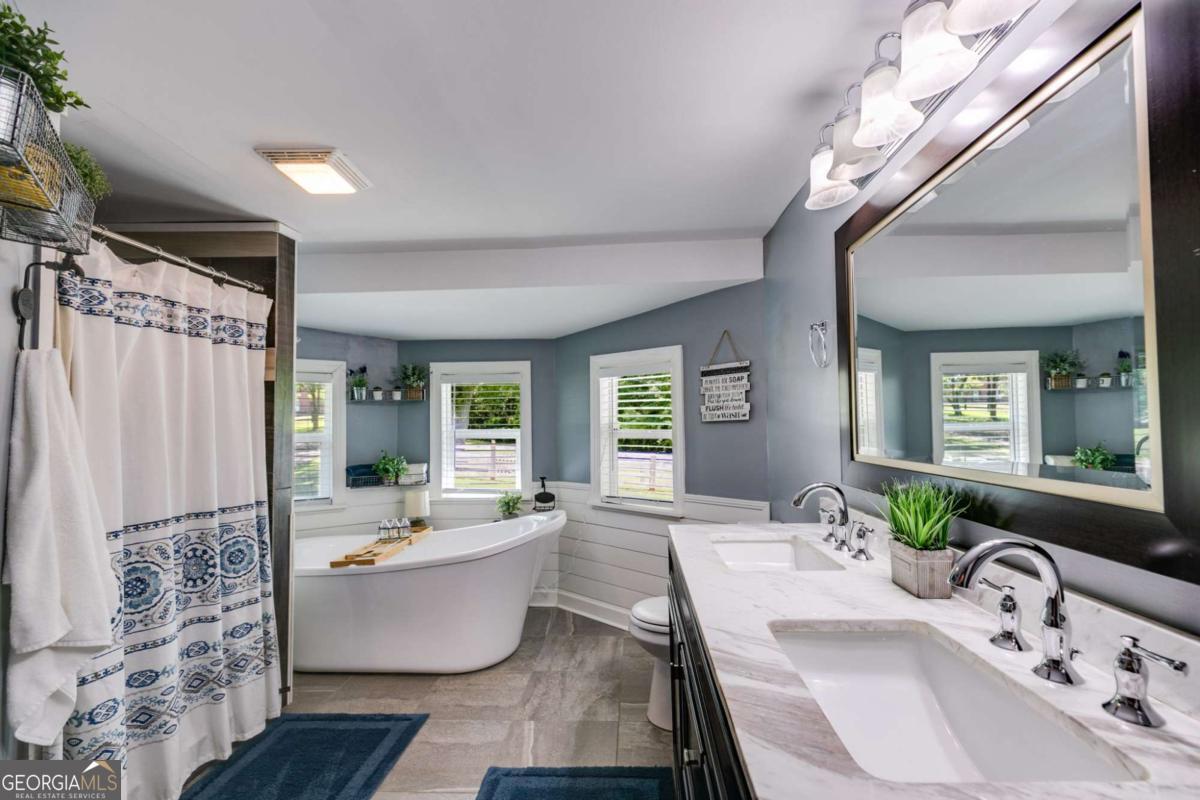Welcome to this beautifully updated ranch-style farmhouse sitting on 3.19 acres in one of Carrollton's most sought-after areas! This 3 bed, 2.5 bath home perfectly blends modern touches with timeless charm. Step inside to find LVP flooring throughout, soaring ceilings in the main living area, and a fully updated kitchen featuring stainless steel appliances and a walk-in pantry. All bathrooms have been stylishly renovated with custom stonework in the showers, and the primary bedroom boasts a spa-like en suite with a soaking tub, walk-in closet, and serene lake views. Enjoy the outdoors on the expansive deck that wraps around the back and side of the home, or explore the creek at the edge of the property. There's also a fenced side yard, an unfinished basement ready for expansion, and a detached garage/workshop with electrical/RV hookup. All this just 5 minutes to shops and restaurants and under 10 minutes to downtown Carrollton. Don't miss your chance to own a piece of peaceful, country living close to everything!