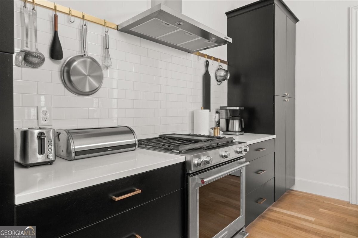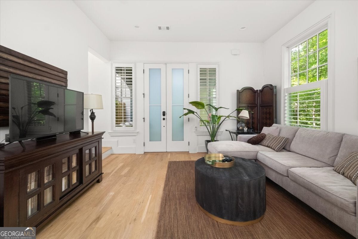 Newer construction townhome in the heart of sought-after Lake Claire featuring private, fenced outdoor living and modern finishes throughout. Built in 2019, this meticulously maintained 2-bedroom, 2.5-bath home offers low-maintenance intown living with a covered flagstone patio, dedicated parking space, and walkable access to parks, dining, and transit. Residents also enjoy a community dog park and optional membership to the beloved Lake Claire Swim Club located within the neighborhood. The open-concept main level features hardwood floors throughout, 10-foot ceilings, and abundant natural light filtered through custom interior shutters. The gourmet kitchen is designed for both everyday living and entertaining, showcasing KitchenAid stainless steel appliances, quartz countertops, generous cabinet storage, and a large walk-in pantry. A convenient half bath and additional storage closet complete the main level. Upstairs, the spacious primary suite offers a spa-inspired bath with a double vanity, oversized walk-in shower, private water closet, and an expansive walk-in closet. The second bedroom includes its own en-suite bath, creating an ideal roommate layout, guest suite, or dedicated home office. An upstairs laundry room adds everyday functionality. Outdoor living truly sets this home apart. The covered patio with distinctive flagstone flooring creates a private, inviting space perfect for morning coffee, relaxing evenings, or entertaining friends. The patio and walkway are fully fenced, providing additional privacy and a great setup for pets, with the option to fence the front yard as well. A dedicated walkway leads directly to your assigned private parking space. Zoned for Mary Lin Elementary School, Howard Middle School, and Midtown High School, the location places you minutes from Candler Park, Candler Park Golf Course, Pullman Yards, the MARTA Edgewood/Candler Park Station, Midtown Atlanta, Downtown Atlanta, and Decatur, Georgia. With walkable access to parks, restaurants, and transit, this home offers the perfect balance of modern comfort and vibrant intown living.