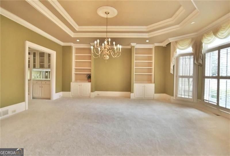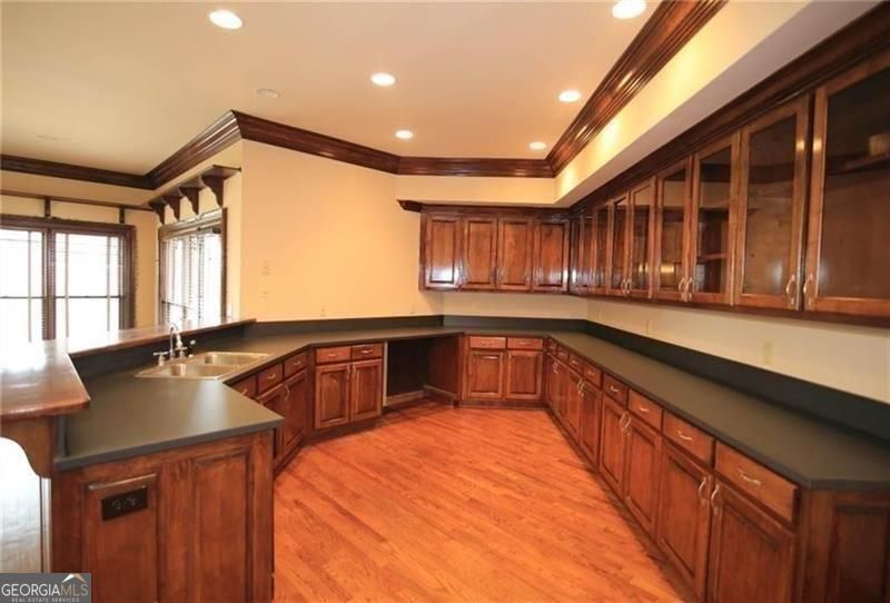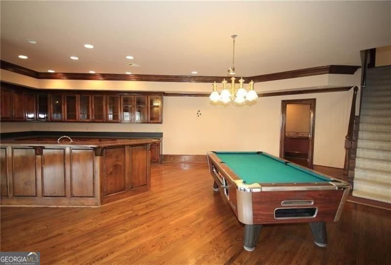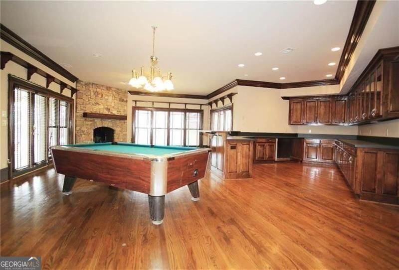 Stunning golf and lake views complement this lovely estate home. So much space!! Extra spacious rooms including expansive kitchen with huge pantry. Large master on main with his-n-hers closets. Upstairs secondary bedrooms are also extra-large with walk-in closets. Finished terrace has entertaining bar, billiards room and recreation room. Four car garage. Circular driveway. Landlord will leave some items in unfinished portion of the basement which will be locked. House needs some updating and will be leased "as-is".