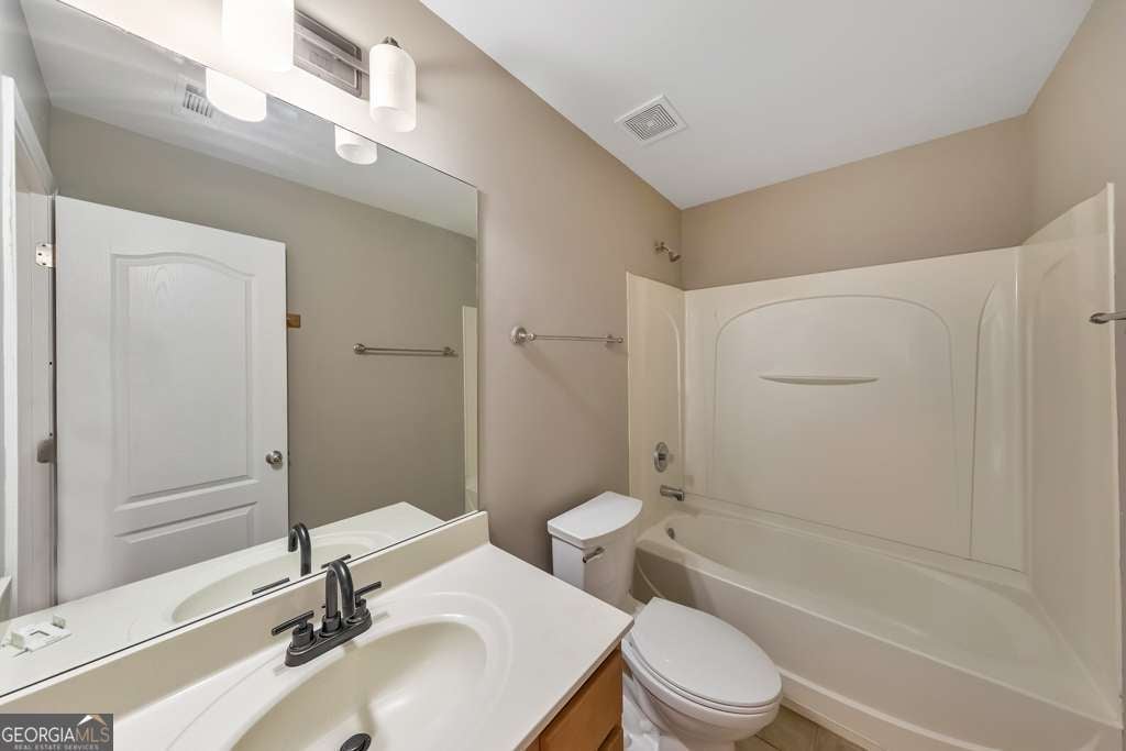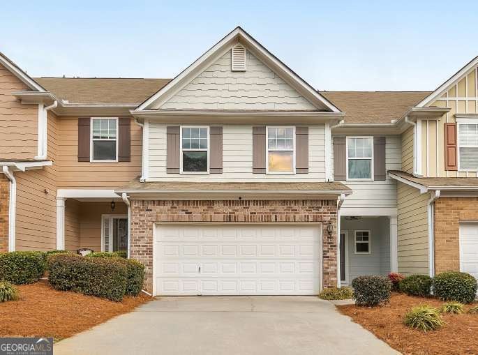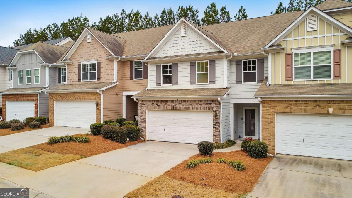 Pack your bags because this is the one! Welcome to this elegant 3 bed / 2.5 bath townhome in the coveted Mountain Brook community, showcasing thoughtful updates and well-kept interiors throughout. Fresh interior paint, including the ceilings, provides a bright, cohesive backdrop that highlights the home's many enhancements. The main level features wide-plank wood flooring, updated laminate tile, upgraded crown molding, and a modern dimmable dining light fixture. A dramatic two-story fireside living room showcases a wall of windows, filling the home with natural light and enhancing the open, airy feel. The updated kitchen blends function and design with new white soft-close cabinetry, abundant drawers, a pull-out spice rack, granite countertops, an oversized pantry, newer stainless-steel appliances, and a stainless-steel trash compactor. Upstairs, upgraded carpet with 8 lb padding, installed less than a month ago, adds comfort throughout. The spacious primary suite offers peaceful mountain views and an updated bath featuring Moen faucets and a Kohler comfort-height toilet. Secondary bedrooms include ceiling fans, and both the full bath and main-level half bath have been refreshed with updated lighting, vanities, and comfort-height toilets. The laundry area includes new plumbing and upgraded cabinetry above the washer and dryer. Additional highlights include a renovated two-car garage with ceiling storage shelves and a newly sealed floor, plus Tradewinds storm doors at both the front and rear entrances. Residents enjoy access to a secured neighborhood pool just a short stroll away, as well as exclusive access to Gordy Lake, complete with a dock, fishing, and scenic paths. All of this is conveniently located off Highway 92 near I-575, with easy access to dining, shopping, and entertainment.