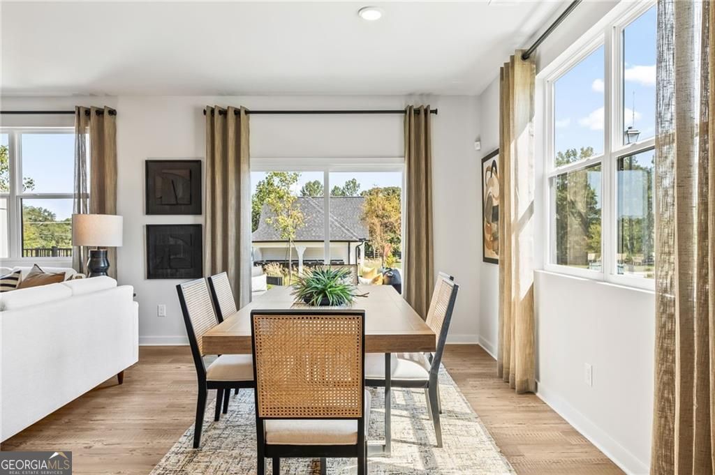 END-UNIT - The Sawnee at Azalea Square boasts two stories of exceptional living space. Upon stepping inside, this plan greets you with an open-concept main living area-including a great room, a well-appointed kitchen with a center island, and a dining room. The upstairs features a laundry room, two generous secondary bedrooms with a walk-in closet, and a hall bath. The primary suite is complete with an attached dual-vanity bath, a walk-in shower, and a walk-in closet.