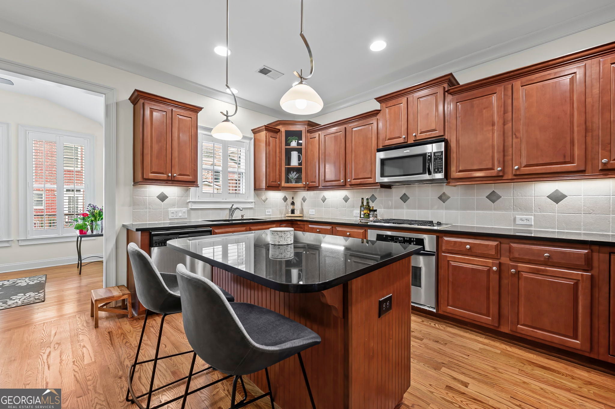 Welcome to 4202 Kendall Way. Located in one of Roswell's most desirable gated communities, Heritage at Roswell. This spacious, professionally designed and updated residence boasts a generous floor plan with expansive rooms, hardwood floors, designer lighting and California shutters - perfect for modern-living and entertaining! Featuring an updated 3-bedroom, 3.5-bath, filled with natural light, an open layout, two-car garage, and a charming sunroom/office off the kitchen. The lower level is finished, featuring bedroom, full bath, walk-in closet and garage access. Heritage at Roswell is an extremely social and active community, rich with clubs, events, and an array of resort-style amenities that boasts an easy lock-and-leave, low-maintenance lifestyle. Residents can enjoy beautiful green spaces, including one of the largest parks that is located near the home, a recently renovated clubhouse with a full kitchen available for private events, two swimming pools, and tennis courts. The state-of-the-art fitness facility features both cardio and weight training equipment, ensuring you have everything you need for an active lifestyle, plus there's serene walking trails by the lake. This townhome's prime location offers convenient access to downtown historic Roswell plus an array of restaurants and shops less than a mile away, and downtown Alpharetta is easily accessible as well. Experience the best of both worlds with a serene community atmosphere and vibrant nearby attractions. Do not miss out on this move-in ready gem! Welcome Home!