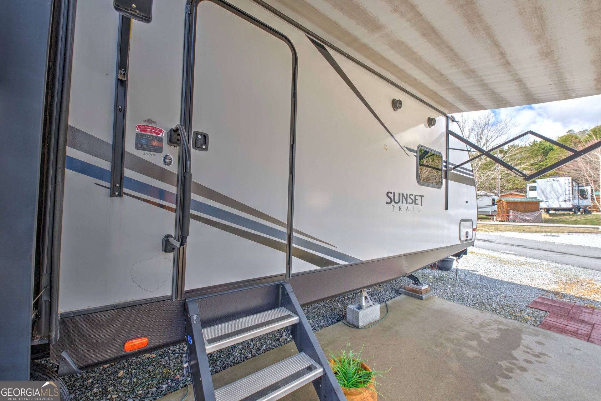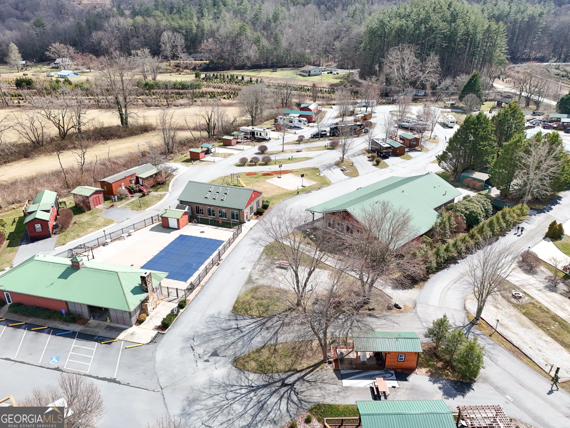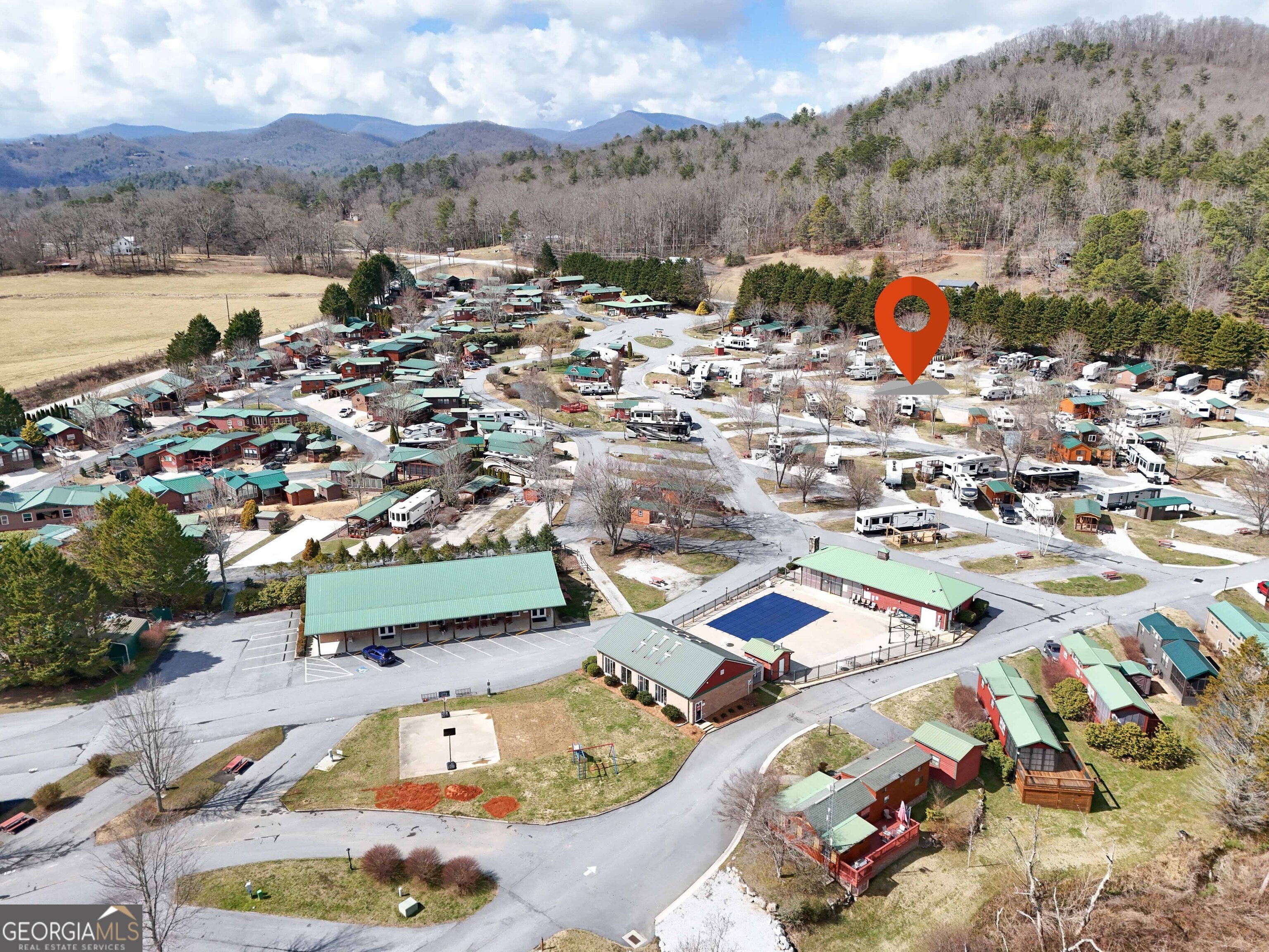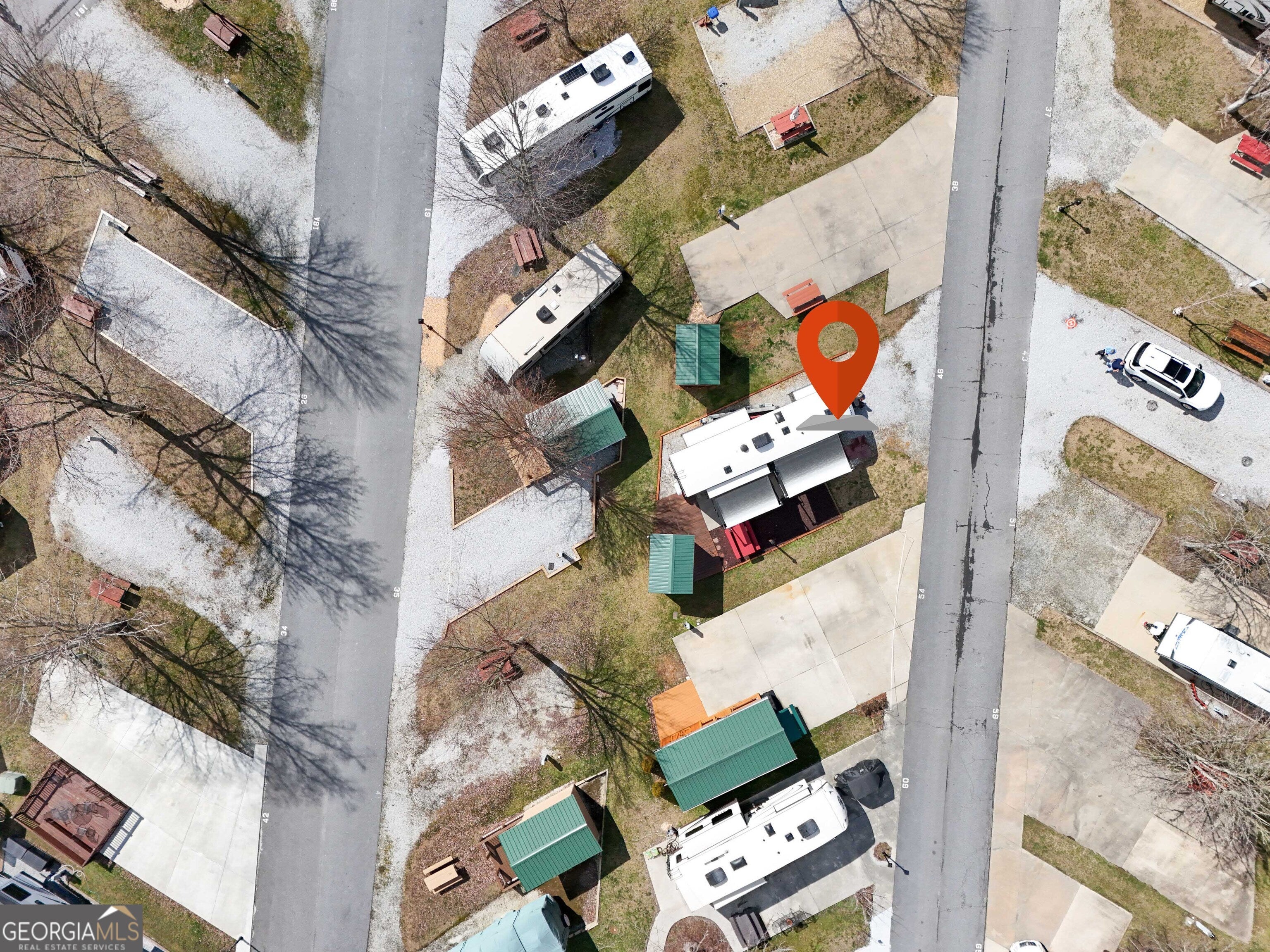 Discover Lot 46 on Holiday Rambler Lane, a private RV lot in River Vista RV Resort, Dillard, GA. This lot features a partial concrete pad, picnic table, wooden deck, and shed-perfect for your mountain getaway in scenic Rabun County. Take advantage of resort amenities, including an outdoor pool, fitness center, Sauna, Wifi, and more. Ideally located just minutes from Dillard and only 20-25 minutes from Highlands, NC, you'll enjoy easy access to hiking, waterfalls, golf, lakes, and all the best mountain attractions. The camper shown in the photo is optional and available for separate purchase. The lot is also available for independent purchase.