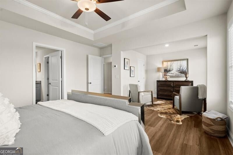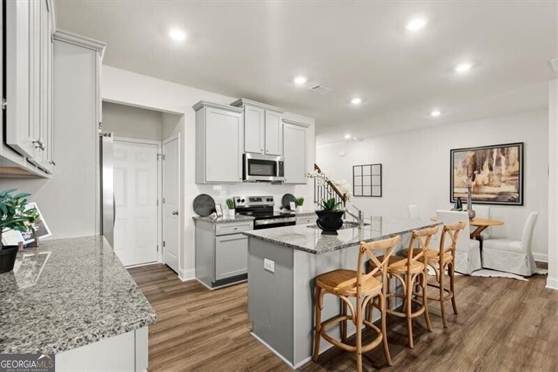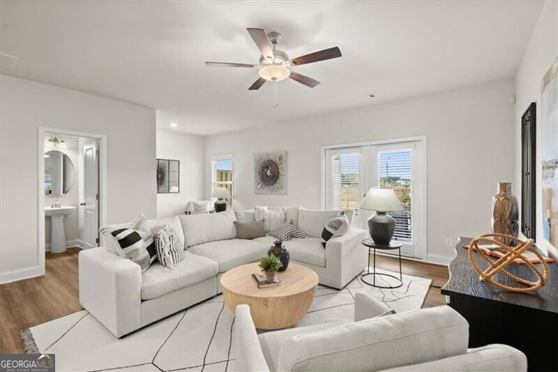 Lot 46 - Jefferson Middle Unit- Ready Now - Final Opportunity! Welcome home to the Danielson plan, a charming 2-story, 4 bedroom townhome nestled in the sought-after community of Alcovy Meadows in Dacula, GA. From the covered porch at the front entry -perfect for those online shipments - to the covered patio with a ceiling fan out back, every detail of this home is designed with convenience and comfort in mind. Step inside to discover an open-concept layout that seamlessly connects the kitchen and family room, creating the perfect space for entertaining or simply relaxing with loved ones. The kitchen boasts a popular corner pantry, offering ample storage space for all your culinary needs. Tucked away on the lower level is a convenient powder room, providing added privacy and functionality. The home features hardwood flooring throughout, except for the bedrooms which have carpet. Upstairs, you'll find four spacious bedrooms, including a luxurious primary suite with a full bath and walk-in closet. Plus, with an additional full bath and a laundry room on the upper floor, chores become a breeze. Outside, the covered patio beckons you to unwind and enjoy the serene surroundings, while the attached 2-car garage with automatic Smart Home opener included and driveway provides ample parking and storage space. Don't miss out on the opportunity to make this stunning Danielson plan townhome your own. Schedule a showing today and experience the perfect blend of style, comfort, and convenience! Generous builder incentives available when using the preferred lender, see onsite agent for more details.