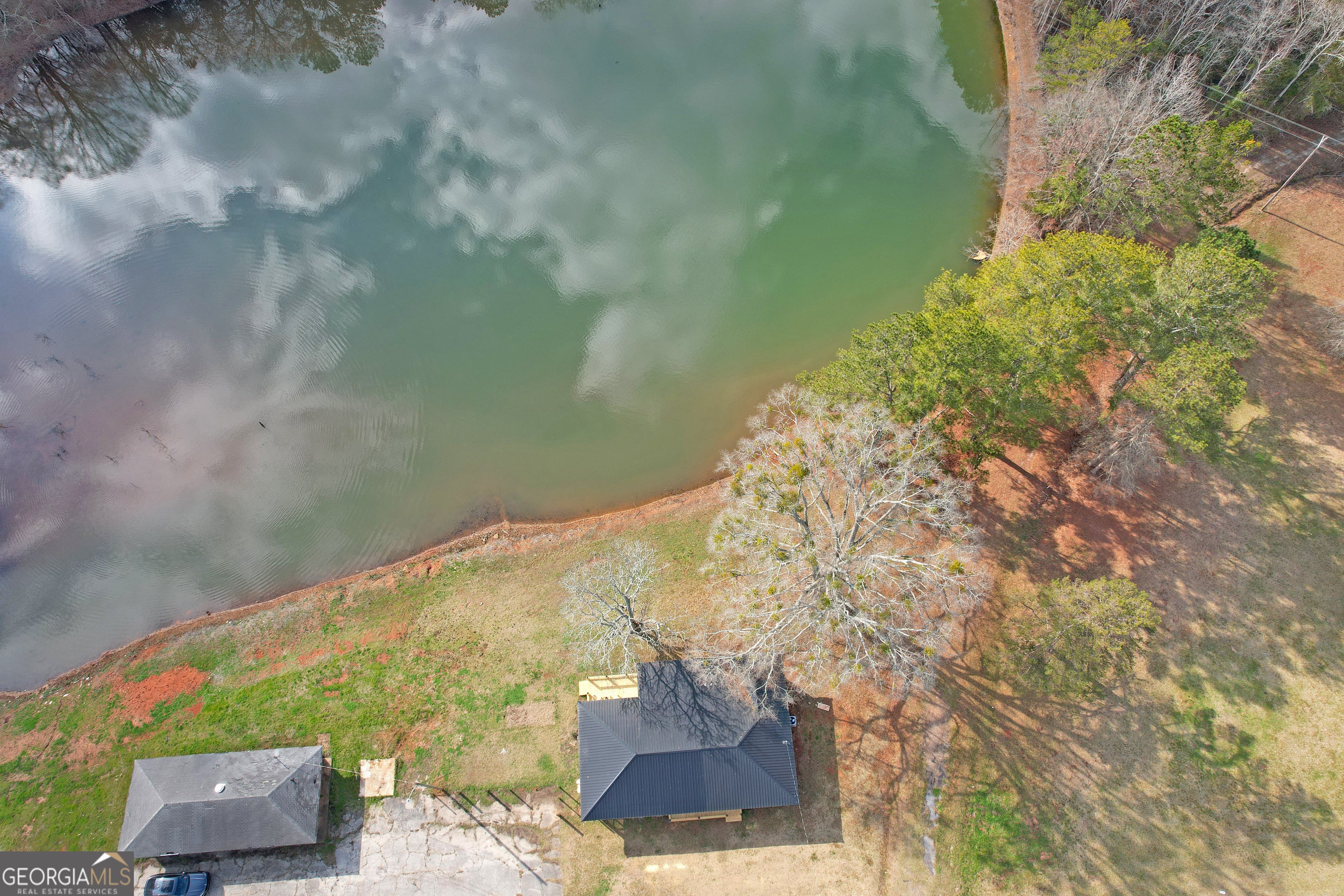 3 bedroom, 2 bath overlooking private lake stocked with crappie, bream and bass. Remodeled with new sheetrock or brick walls. New HVAC & duct work. New wiring, plumbing, cabinets, countertops, and fixtures throughout. New appliances. New deck overlooking the lake. Metal roof only 3-4 years old. Additional 4 acres lot may be available, call listing agent for details.