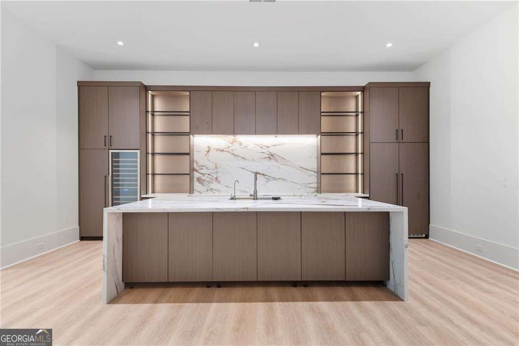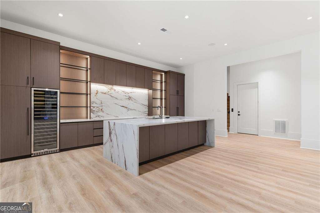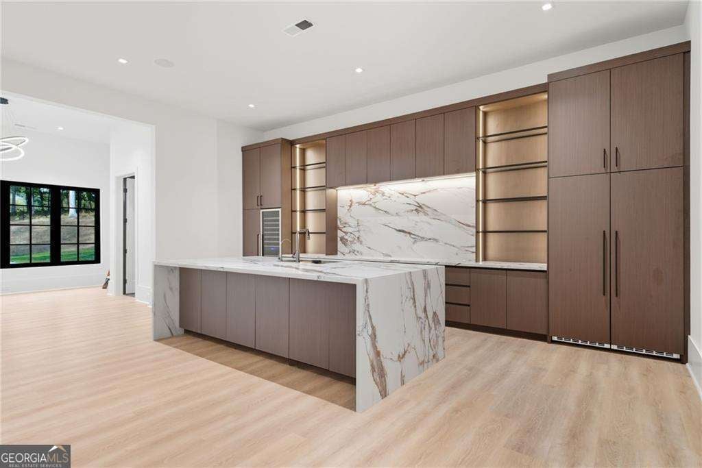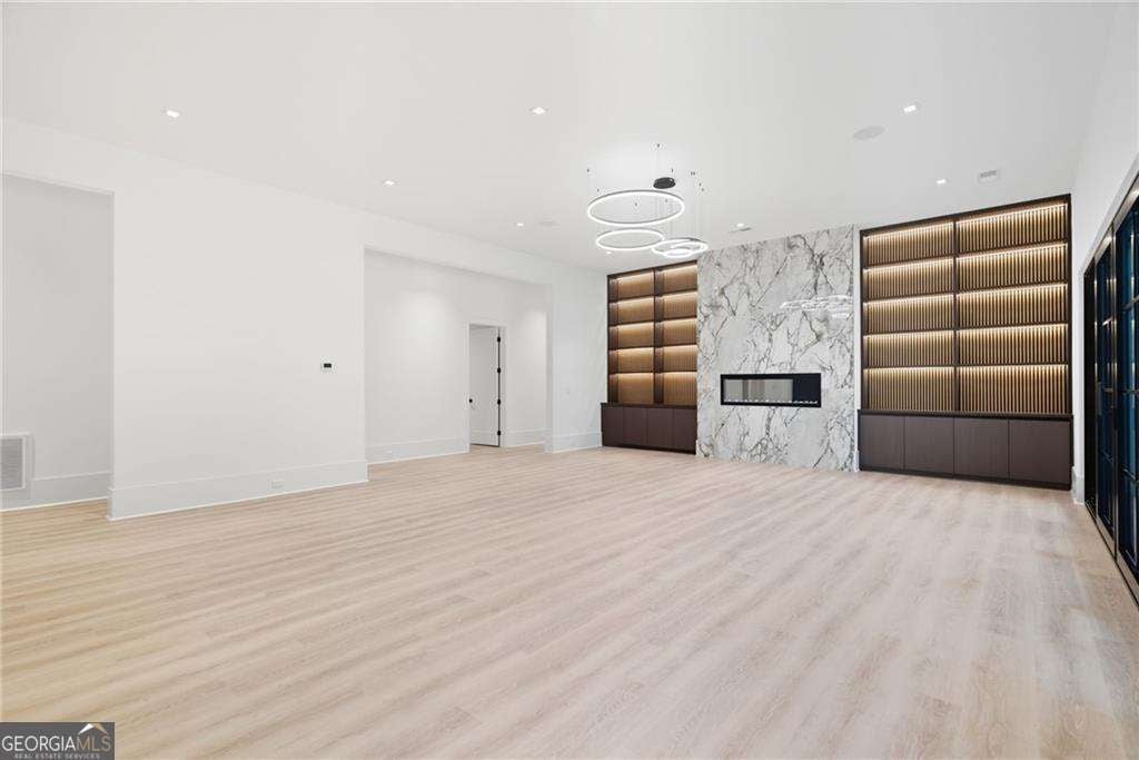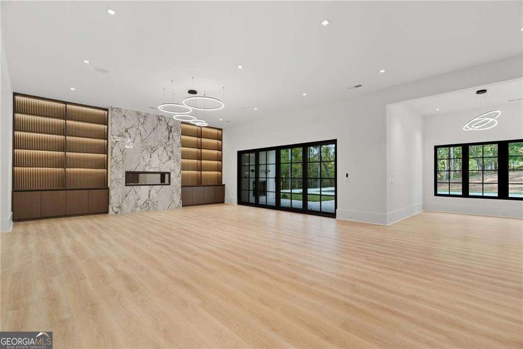 NOW UNDER CONSTRUCTION in the prestigious, gated Echelon Golf Club - home to one of Georgia's top-ranked championship golf courses. Estimated completion January 2027. This is not just new construction - this is a statement estate by Alexandria Homes offering approximately 8,000+ square feet above grade and an additional 4,000+ square feet of finished terrace level,TOTALING 14,523 square feet of heated and unheated space, delivering rare scale, architectural drama, and long-term performance. Featuring 7 bedrooms, 8 full baths, and 2 half baths, this residence is defined by volume and presence. A soaring 20-foot two-story foyer and 20-foot great room create an unforgettable arrival experience, seamlessly blending modern design touches with timeless transitional elegance. LED lighting is thoughtfully integrated throughout, enhancing architectural lines and creating a refined ambiance across every level. The chef's kitchen is designed for elevated entertaining and everyday excellence, showcasing premium appliances, custom cabinetry, oversized island, walk-in pantry, and butler's pantry. Custom closets are thoughtfully designed throughout the entire home, delivering both beauty and functionality. The main-level primary suite is a private retreat featuring a sitting area with fireplace, spa-inspired bath with soaking tub, oversized walk-in shower, dual vanities, and a boutique-style custom closet with island. With five fireplaces throughout the home, warmth and architectural focal points are strategically placed to enhance both indoor and outdoor living. The covered rear porch features its own fireplace and built-in outdoor grill, overlooking the future pool and spa with sweeping golf course views - creating a true resort-level experience. Upstairs offers four spacious en-suite bedrooms, a media/flex space, and a secondary laundry room. The fully finished terrace level showcases impressive 12-foot ceilings - a rare luxury - along with two additional en-suite bedrooms, theater room, fitness room, expansive family room, dedicated bar or secondary kitchen space, and a third laundry room for ultimate convenience. Constructed with upgraded aluminum-clad windows, full spray foam insulation, and 2x6 exterior framing throughout, this estate provides superior structural integrity, exceptional energy efficiency, quieter interiors, and long-term savings on utility costs - performance that matches its beauty. A porte-cochere and expansive 5-car garage complete the commanding exterior presence. Even more compelling: very low Cherokee County property taxes and an exceptionally reasonable $1,550 annual HOA fee - nearly unheard of for a gated golf course community of this caliber. There is still time to personalize select finishes. Final purchase price subject to buyer selections and approved specifications. Photos reflect previous builder craftsmanship. A rare opportunity to secure one of the most compelling luxury new construction offerings in Alpharetta - where design, quality, efficiency, and prestige align seamlessly.