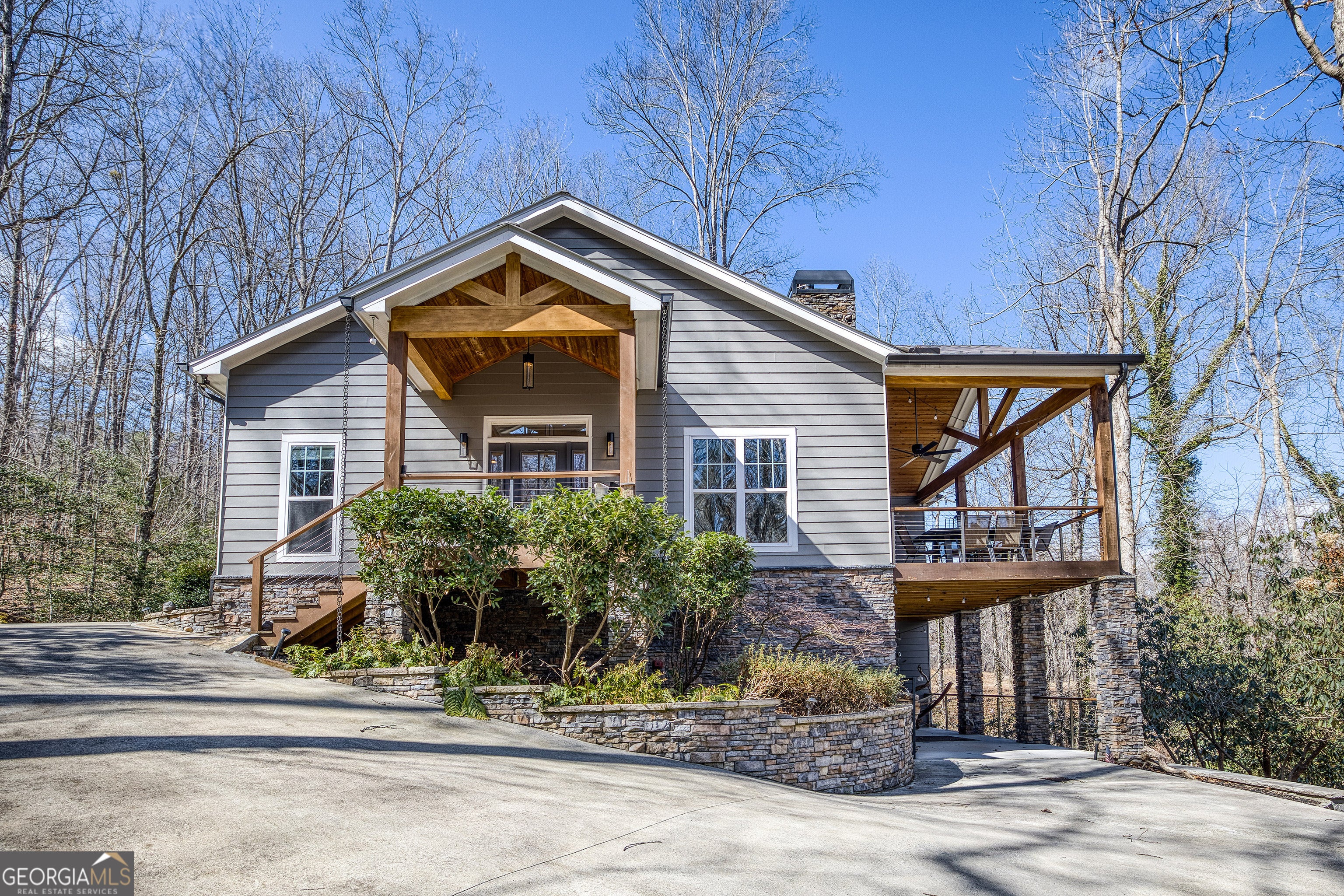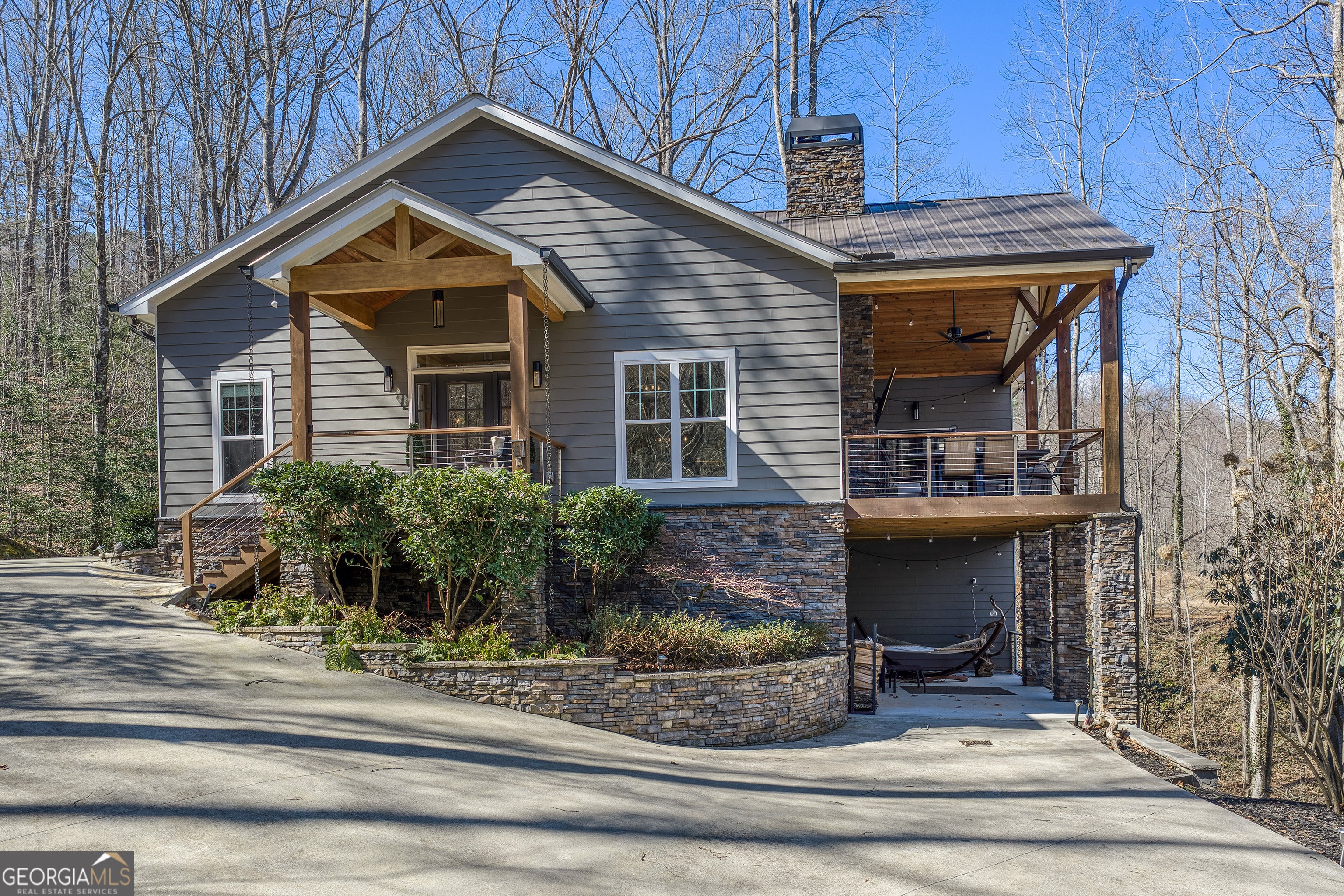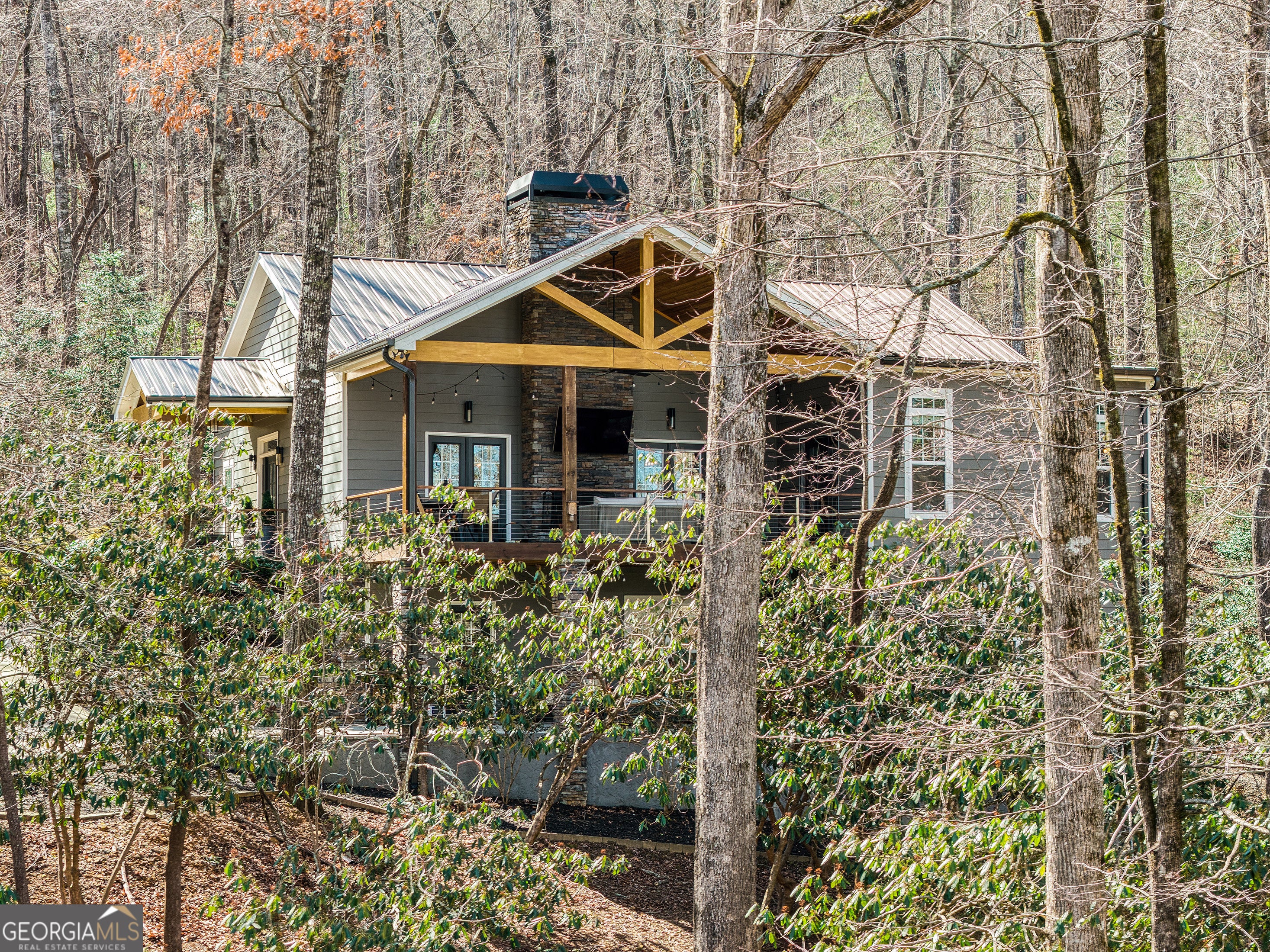 Custom-built 2016 masterpiece in the heart of Lake Burton country. This 4BR/3.5BA, 3,652 SF retreat on a private, gated 0.90-acre estate offers hardwood floors, soaring ceilings, chef's kitchen, wood-burning fireplace, finished terrace level, and mountain views - all wrapped in a metal roof and brick exterior built to last generations. A babbling brook meanders the property beneath a canopy of mature hardwoods. Steps from LaPrade's Marina with golf cart access to the lake. Turnkey, exquisitely finished, and priced to move. Minutes to Clayton, Waterfall Club, and The Orchard. Properties of this caliber in this location are extraordinarily rare.