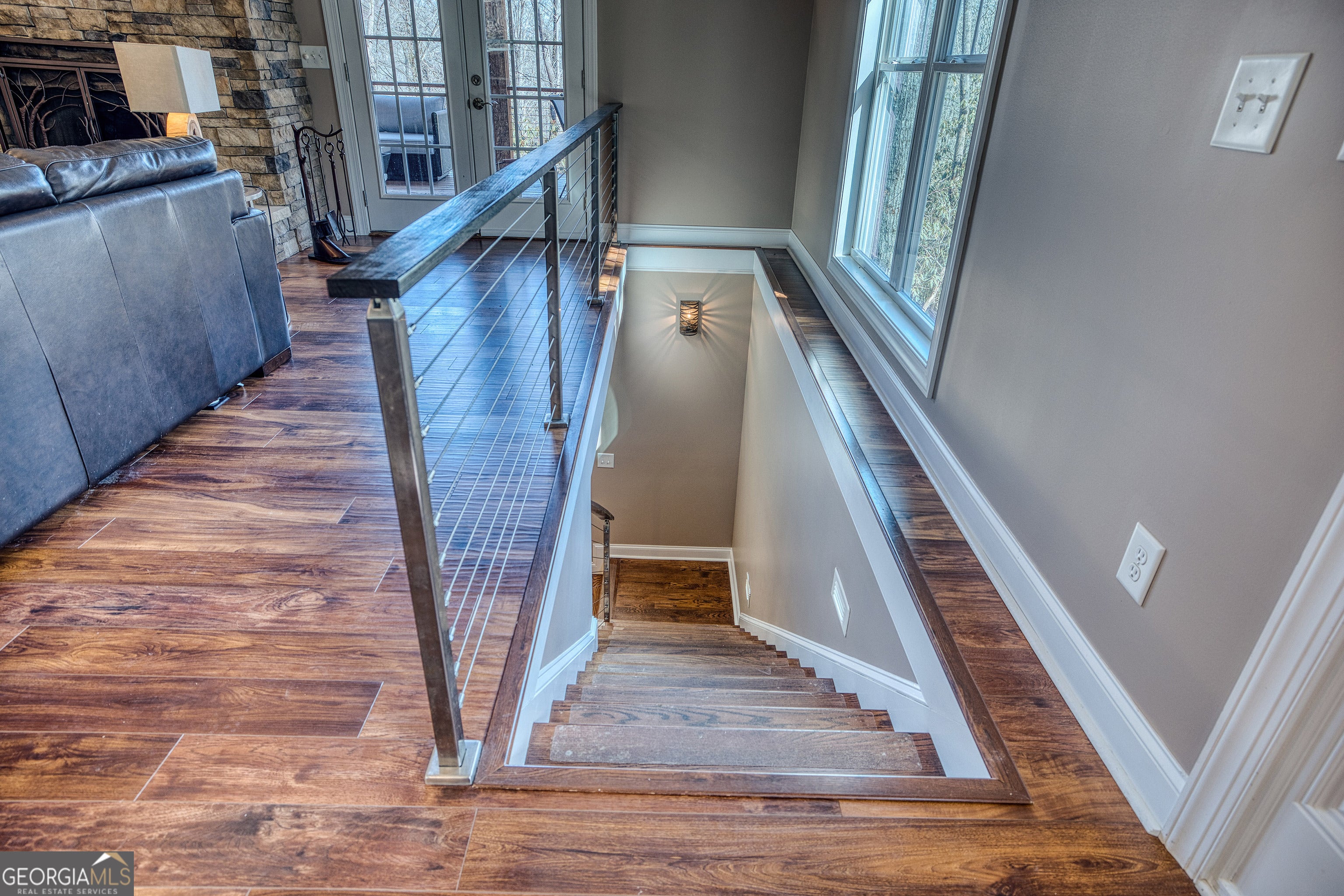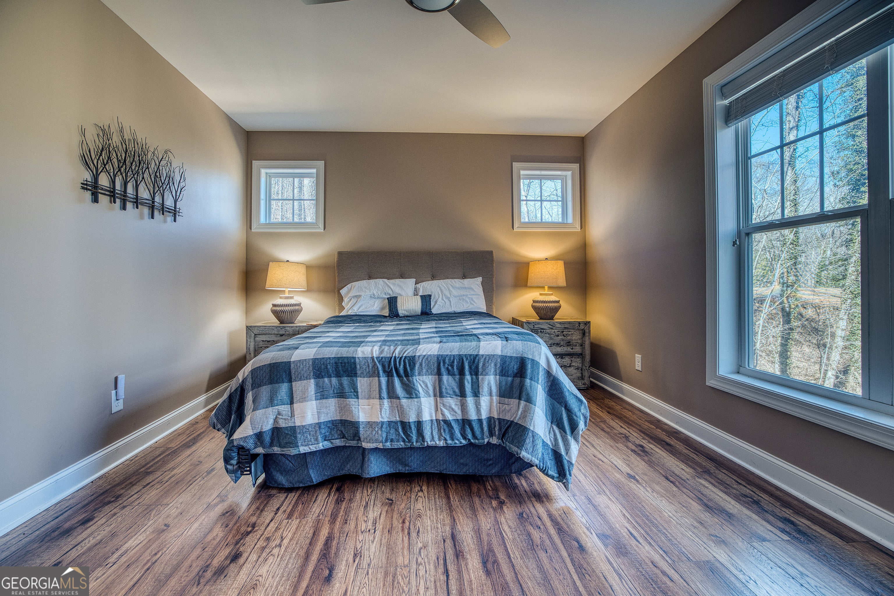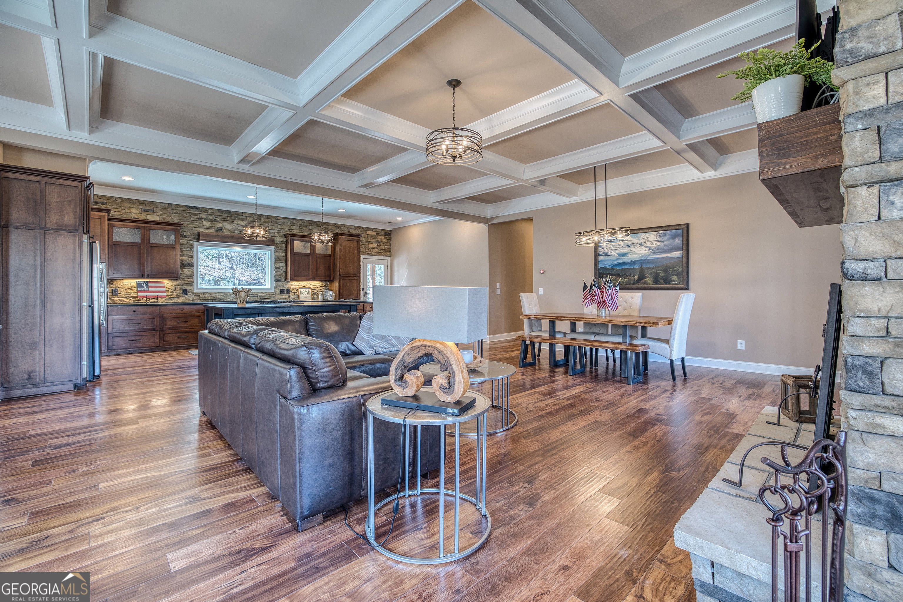 Custom-built 2016 masterpiece in the heart of Lake Burton country. This 4BR/3.5BA, 3,652 SF retreat on a private, gated 0.90-acre estate offers hardwood floors, soaring ceilings, chef's kitchen, wood-burning fireplace, finished terrace level, and mountain views - all wrapped in a metal roof and brick exterior built to last generations. A babbling brook meanders the property beneath a canopy of mature hardwoods. Steps from LaPrade's Marina with golf cart access to the lake. Turnkey, exquisitely finished, and priced to move. Minutes to Clayton, Waterfall Club, and The Orchard. Properties of this caliber in this location are extraordinarily rare.
