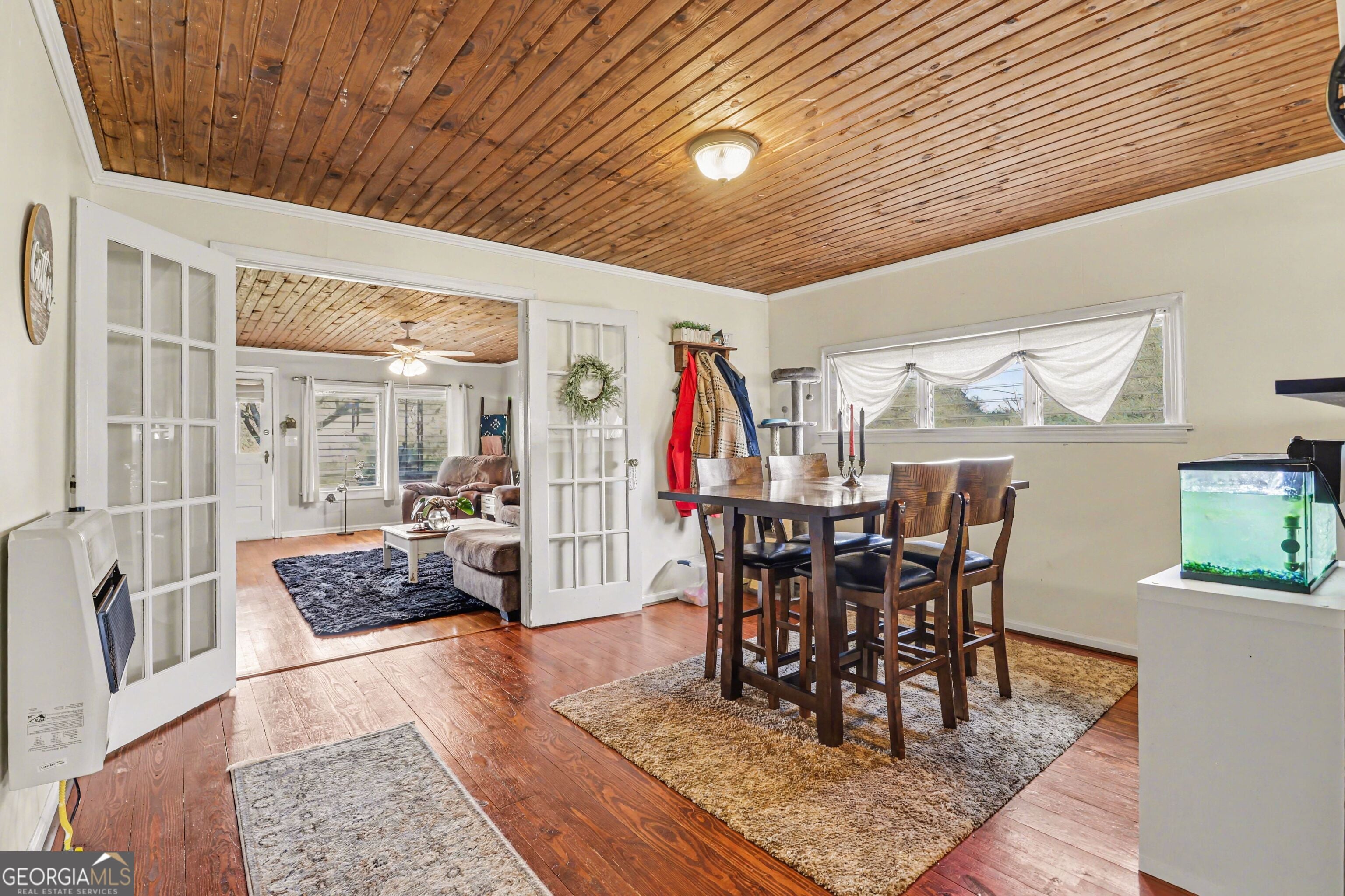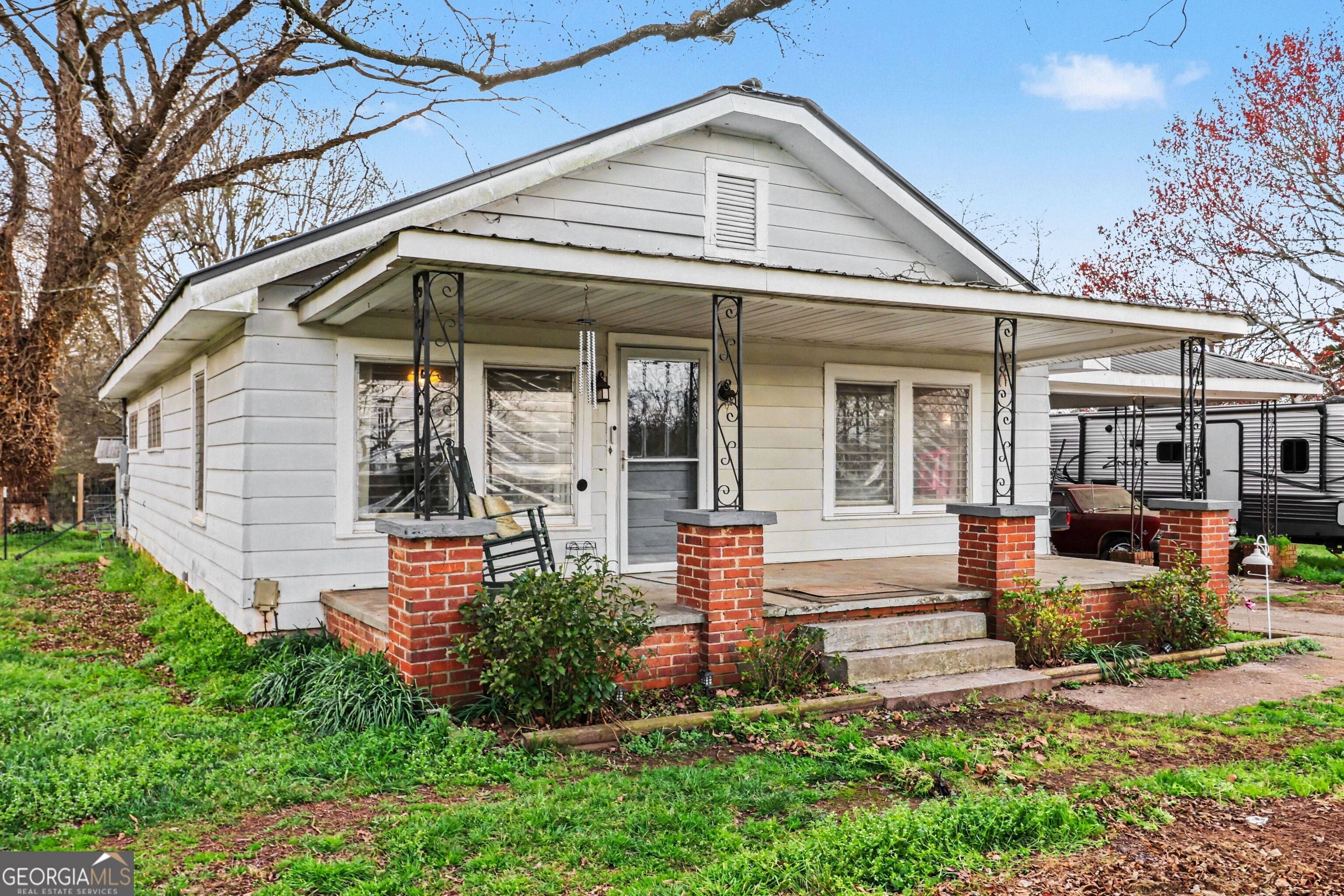 Welcome to 6680 Highway 52, Gillsville, GA 30543. Located in Hall County, this 1950 country farmhouse cottage sits on 7.14 private acres zoned agricultural. The home offers 2 bedrooms, 2 bathrooms, and approximately 1,600 square feet. As you arrive, the setting offers privacy and open space with a mix of cleared and wooded land. Inside, the main living area features hardwood floors and a practical layout and overall country feel. The living room flows into the dining area, creating a straightforward floor plan. The kitchen offers a country feel with ample workspace and storage. The home includes two bedrooms and two full bathrooms arranged for everyday functionality. In addition to the home, there is a dedicated RV/Camper storage that includes a separate drive, sewage hookup, and a covered deck. This provides a functional option for guests or extended use. The 7.14 acres provide room for gardening, recreation, animals, or future improvements. The opportunities are truly endless. Zoned for Lula Elementary, East Hall Middle, and East Hall High School and conveniently located with easy access to Interstate 365/985 and I-85, the property is a short drive to Lula, Gainesville, Jefferson, Commerce, and Homer, offering a rural setting with access to surrounding towns and amenities.