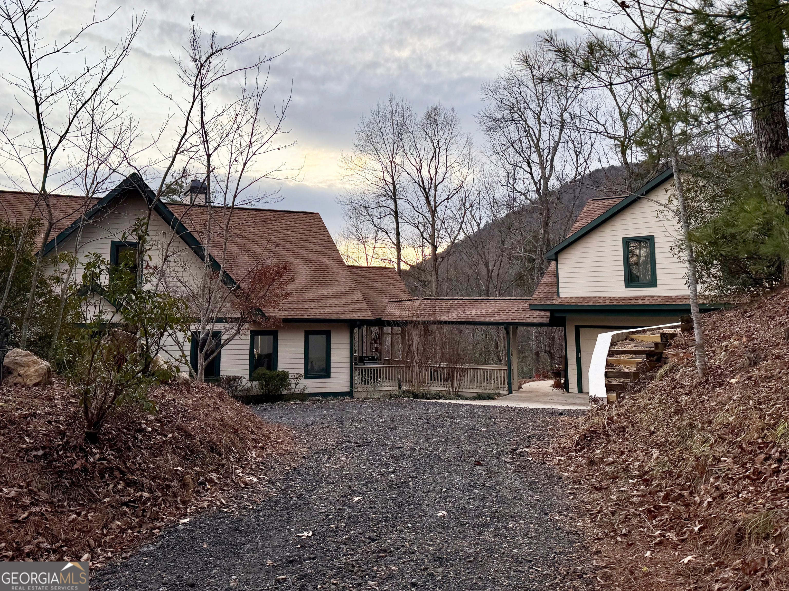A thoughtfully designed mountain estate offering privacy, versatility, and a setting that feels intentionally removed from the ordinary. Situated on almost 3 wooded acres with a flowing creek, this custom-built property is located within a private neighborhood known for its large lots, preserved surroundings, and commitment to privacy. The community provides direct access to adjoining national forest land, with established trails leading to a nearby waterfall, offering a rare extension of outdoor living beyond the property itself. The main residence features 4 bedrooms and 3.5 baths, with a layout that supports both everyday living and gatherings of any size. Generous interior spaces connect seamlessly to expansive decks, encouraging indoor-outdoor living and allowing the home to fully engage with its surroundings. The estate includes a separate guest home with elevator access, providing practical flexibility for extended stays, multi-generational living, or private guest accommodations. Outdoor features include a saltwater pool, outdoor shower, creek frontage, and multiple outdoor living areas that create a relaxed, retreat-like atmosphere while maintaining privacy. A three car garage, custom construction, and an estate-style layout reinforce the lasting value of this property. Designed as a complete compound rather than a single residence, the property delivers quality and functionality that are increasingly difficult to find, making it well suited for fulltime living or a long term mountain retreat.