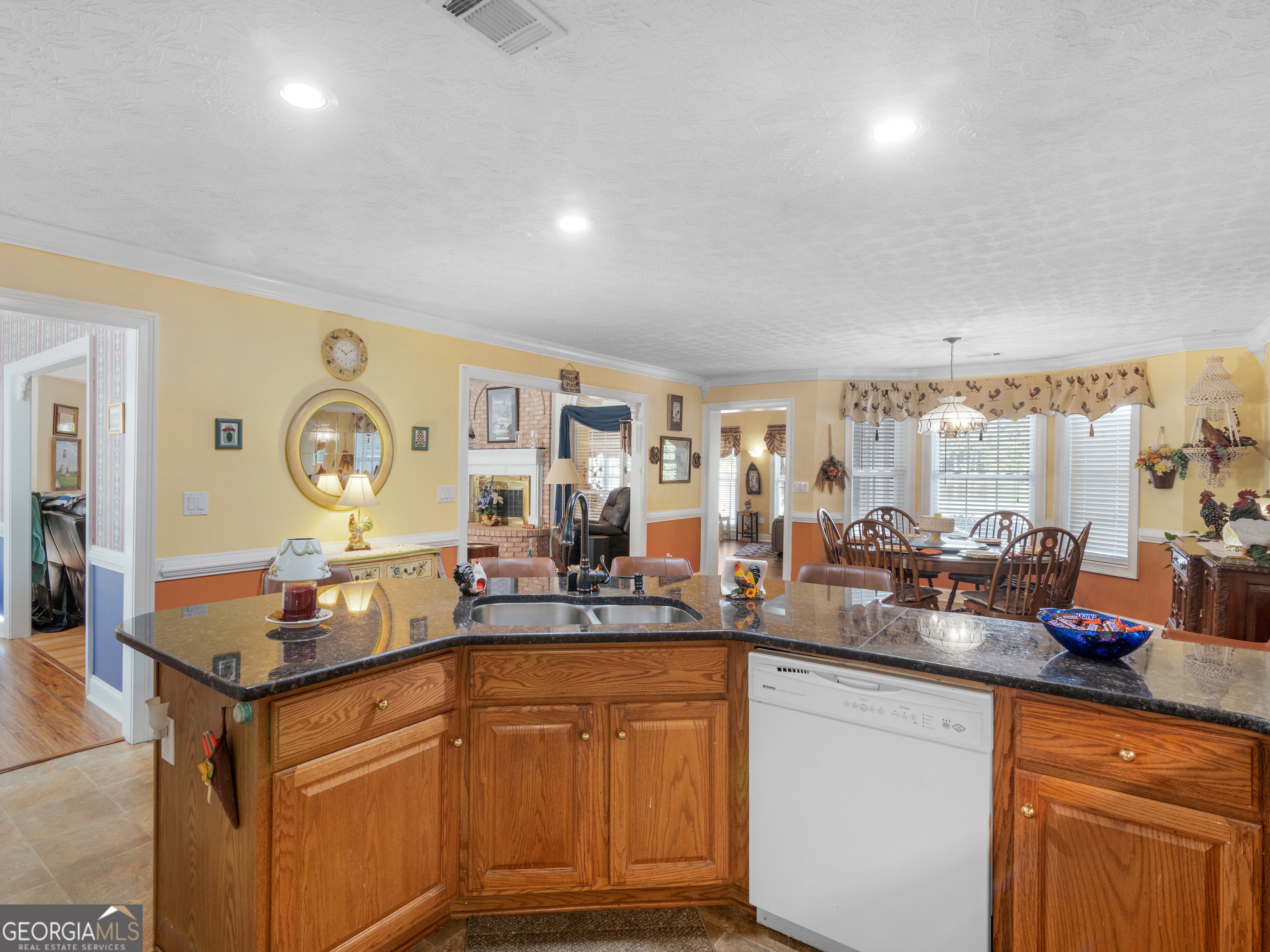 1220 Lake Stone Lea Drive, tucked away on approx. 3.05+- acres, this gorgeous lakefront home was custom built with many details thru-out. Step inside 2 beautiful entry way doors to a foyer leading to the formal dining room & o'looking a spacious floor to ceiling all brick fireplace in the grand living room. Kitchen features include eat in breakfast/dining area, eat at U-Shaped bar, plenty of cabinetry and counter space to prep meals. Right off the kitchen sits a sunroom/den which o'looks the lake leading out to the patio ideal for quiet time or entertaining. The main floor offers 2 generous sized guest bedrooms & a large guest bathroom. Settle into the primary suite which offers ample space and views of the lake. Step down to the en-suite bath where you will find a large jetted tub for unwinding, separate shower, double sink vanity & unique wrap around closet offering his/her sides PLUS it houses the laundry room. Upstairs you will find a huge bonus room & full bath. This property is adorned w/lush landscaping, fenced backyard, 300+/- ft of water frontage on private Lake Stone Lea as well as a concrete seawall/bulk head spanning the entire water front. Small canal on property offers perfect place to dock a boat. Underground sprinkler system to keep the lawn looking beautiful . If the 3 car garage isn't enough space for your cars or you need an additional work space, the all brick 2 car detached garage offers just that. With so much to offer, this is sure to check off all the boxes.