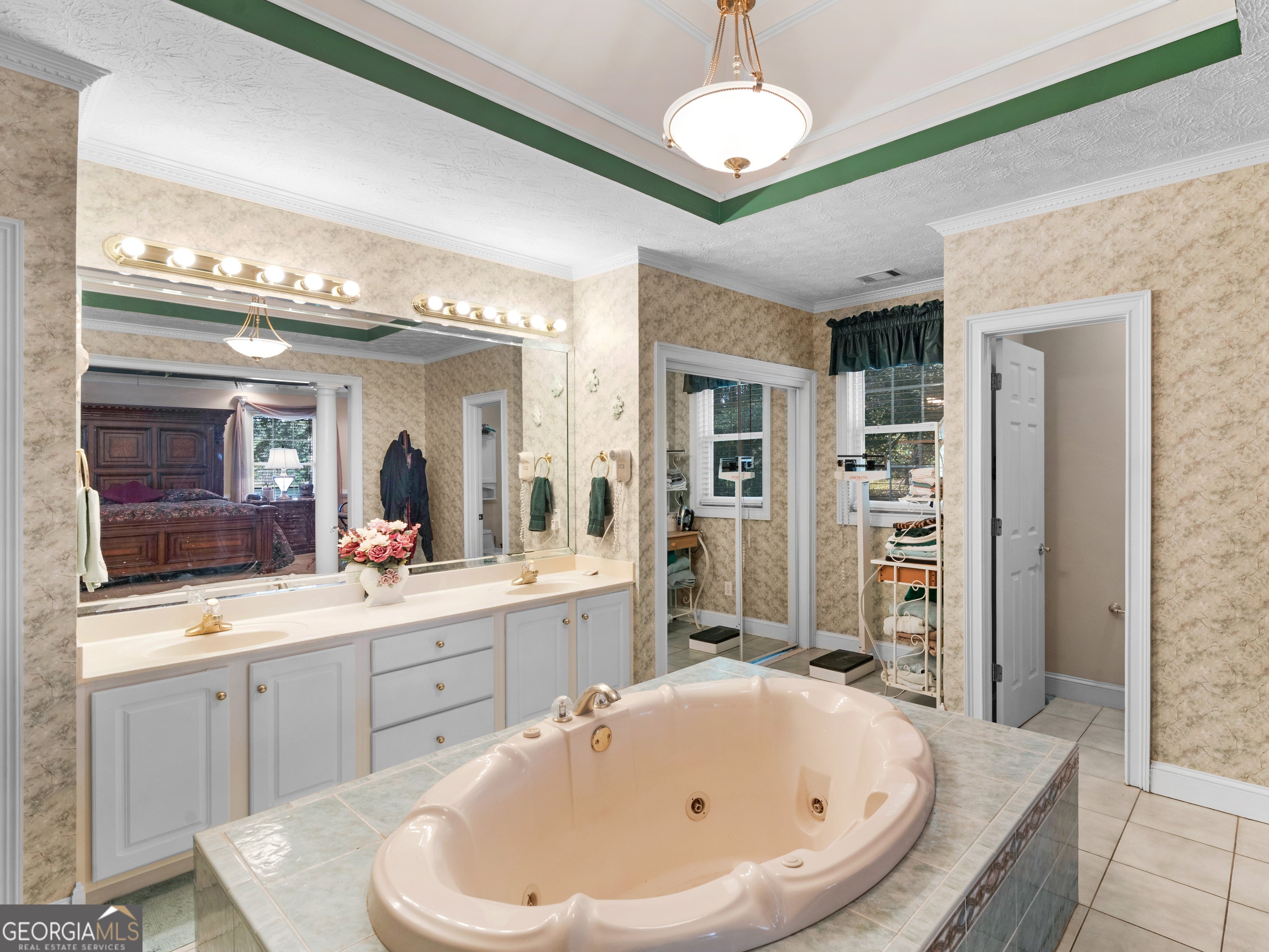 - Interior FeaturesDouble Vanity, High Ceilings, Master On Main Level, Separate Shower, Soaking Tub, Split Bedroom Plan, Tile Bath, Tray Ceiling(s), Vaulted Ceiling(s), Walk-In Closet(s), Attic Expandable