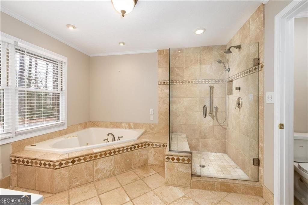 - Interior FeaturesBeamed Ceilings, Walk-In Closet(s), Master On Main Level, In-Law Floorplan, Separate Shower, Tile Bath