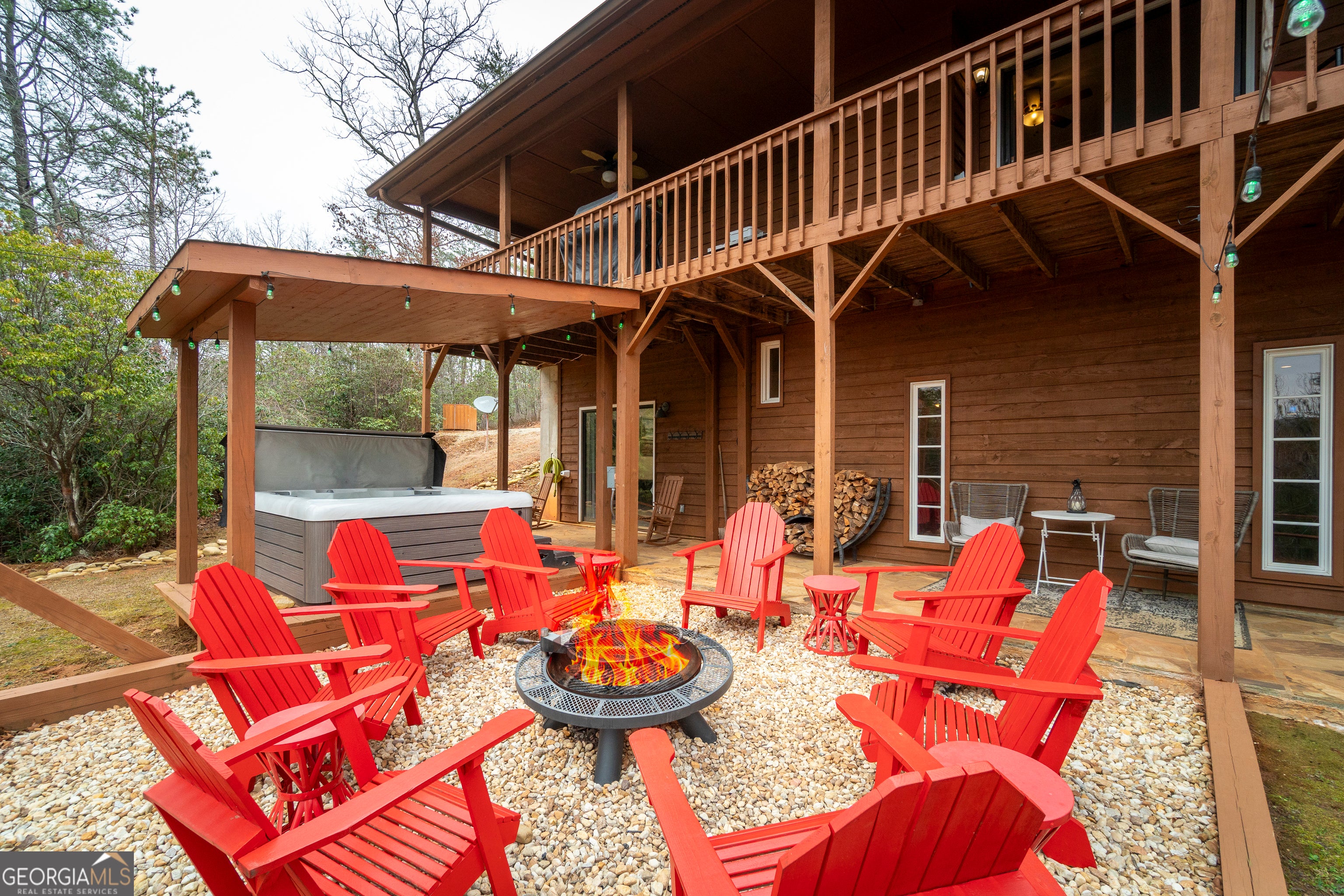 A Beautiful Mountain View comes with this Successful Short-Term Rental in Sautee Nacoochee just North of Alpine Helen, GA. Enjoy an equally beautiful traditional style mountain cabin! The view features the mountains of scenic Northeast Georgia. The home features an open kitchen/living room plan on the main level with split dual master bedrooms, each with an ensuite bath and large closet. The finished terrace level has a wet bar and efficient kitchenette area for added ease of entertaining. Lots of open space in the terrace level den with large screen TV and pool table. Also on the terrace level are a full bath and a large bedroom/bunk room. Currently used as a successful vacation rental property, all the bells and whistles are already in place. Tastefully furnished, decorated and appointed for gathering friends and family. The marvelous deck on the main level has access from the living area and a bedroom. The terrace level entices you out to the stone paved patio with an inviting firepit and covered hot tub area. New HVAC in 2024, New Water heater in 02/2023. Termite Bond in place and regular pest treatment are ongoing. Plenty of parking is an added plus. 2.6 Acres of private mountain paradise. Excellent location, just minutes from downtown Alpine Helen, (Fine Dining and Casual Dining, Shopping, Chattahoochee River tubing, Mountain Coaster, Oktoberfest and other activities), Unicoi State Park and Lake, Appalachian Trail Hiking, Waterfalls of the Chattahoochee National Forest, Lake Burton and all the Northeast Georgia attractions. A Short-Term Rental Host License is in place and is transferable to the next owner! Additional adjoining lot available for purchase. Septic system is rated for a 2 BR Home.