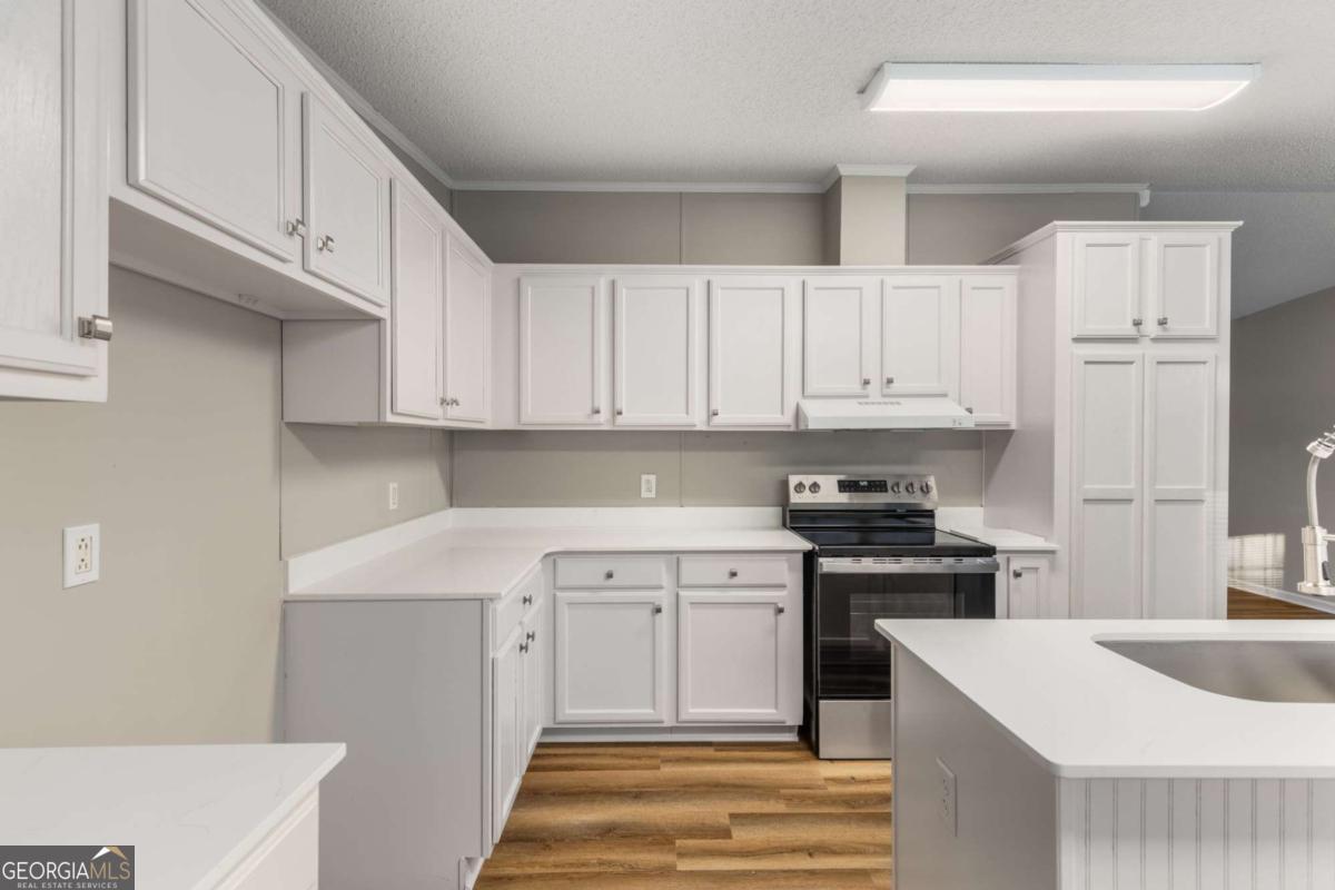 Pristine "like new" home on almost 2 acres! Completely renovated and in immaculate condition - this home is move in ready! New roof, countertops, appliances, bathroom vanities, flooring, light fixtures and paint. Large level lot with new front porch and sprawling street side yard. Large level private fenced backyard perfect for kids and pets. This is a comfortable, clean and fully renovated home ready for new owner! Located very close to Lake Sinclair with super close boat access at Crooked Creek Marina!
