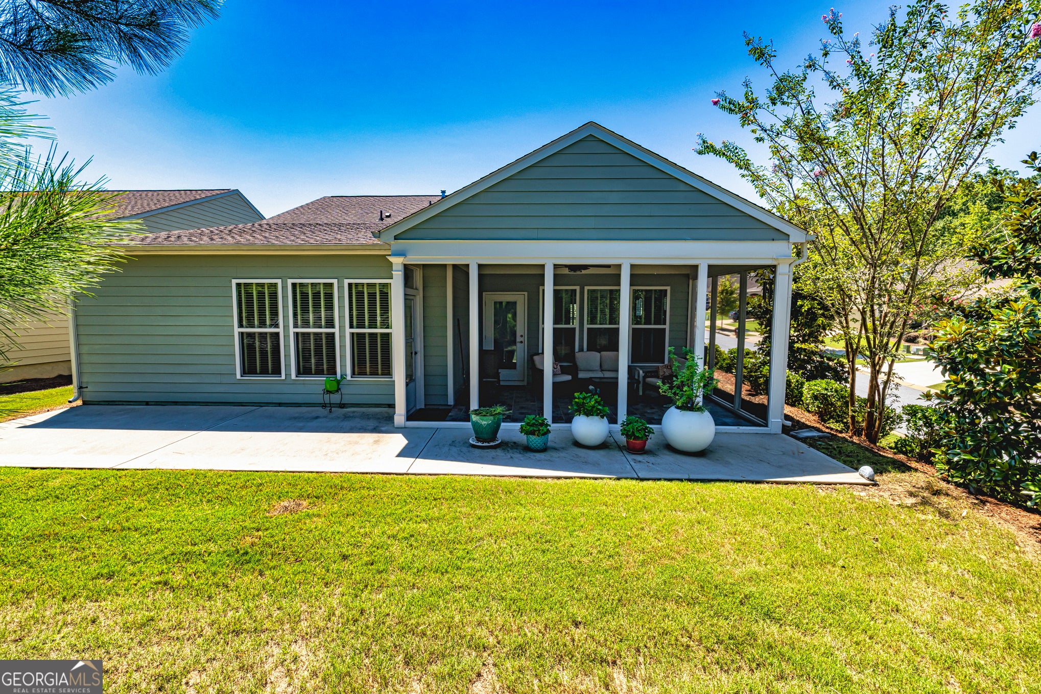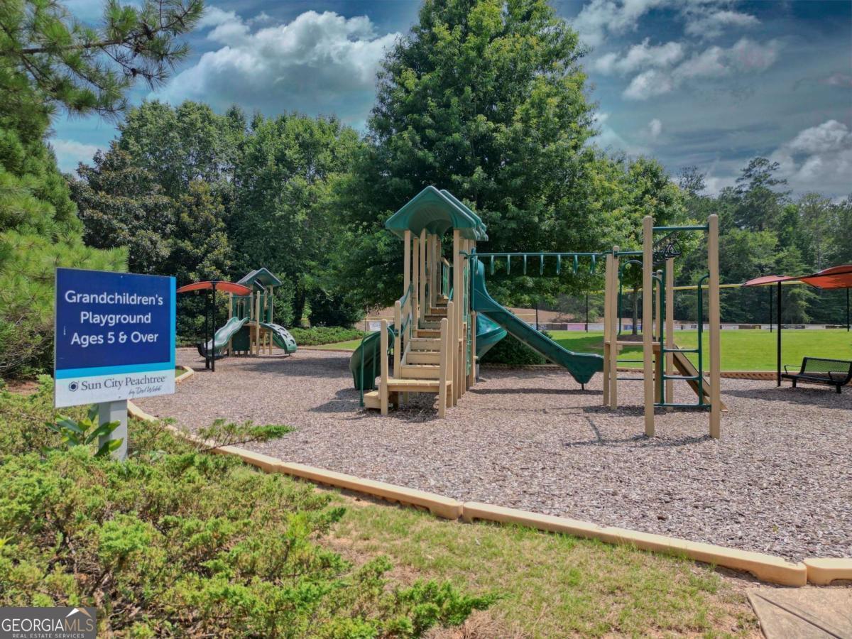 Welcome to Sun City Peachtree - Where Every Day Feels Like a Vacation! Nestled in one of the most desirable 55+ communities in the Southern Crescent, this stunning home offers more than just a place to live - it offers a lifestyle you'll love. Sun City Peachtree is a vibrant, active adult community where neighbors become friends, and every day is filled with opportunity. Whether you're looking to stay active or simply relax, you'll find everything you need right here: enjoy indoor and outdoor pools, pickleball and tennis courts, a top-tier fitness facility, a beautiful golf course, a dog park for your furry friends, a softball field, scenic walking trails, and a dynamic clubhouse packed with social events and activities. And the best part? You get to come home to your dream home - the beautifully designed Martin Ray floor plan. From the moment you step inside, you're welcomed by warm hardwood flooring and a thoughtfully designed layout. An inviting office with hardwood floors sits just off the foyer, perfect for working from home or enjoying your hobbies. The open-concept kitchen is a showstopper - featuring custom, soft-close cabinetry, under-cabinet lighting, a sleek custom vent hood, stainless steel appliances, tile backsplash, a spacious island with pendant lighting and storage, a butler's pantry, and a wall oven/microwave combo. This kitchen flows seamlessly into a dining area with a charming, mirrored accent wall and into the bright, airy family room with recessed lighting - an entertainer's dream! Step outside to a screened-in porch with tile flooring, a ceiling fan, and elegant wainscoting on the ceiling - ideal for morning coffee or evening relaxation. Just beyond is a beautifully extended patio and an additional entertaining space, all overlooking a private backyard perfect for gatherings or peaceful afternoons. The primary suite is a true retreat, complete with a tray ceiling, a luxurious en-suite bath featuring tile flooring, a walk-in tile shower with a bench seat, a linen closet, and an oversized walk-in closet with extra lighting. A second bedroom and full bath provide comfort for guests or family, while the laundry room with cabinetry and a mud sink makes everyday living easy. The home also features a two-car garage with added perks: walk-up stairs to an unfinished storage area and extra space for your golf cart.