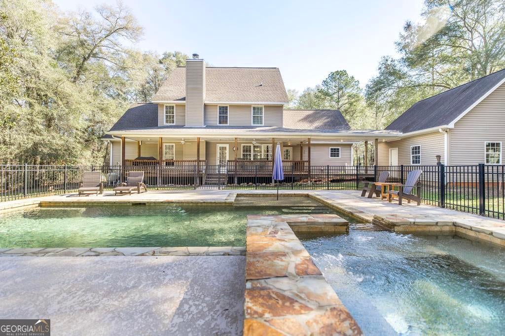 SELLER OFFERING $20,000 IN CONCESSIONS! I sit peacefully on 10 beautiful acres with my own winding creek, offering privacy, space, and room to breathe. With 3,385 square feet of thoughtfully designed living space, I was built to be both welcoming and impressive. Inside, I offer 4 spacious bedrooms and 3.5 baths, including a serene owner's suite on my main level, creating a private and relaxing retreat. My dedicated office is perfect for productive mornings, and I proudly feature two generous bonus/flex rooms - one upstairs and one downstairs - ready to become a media room, playroom, home gym, guest haven, or perfect for the homeschooling family. Rich, warm wood floors flow through my main living areas, adding timeless character, while soft carpeting creates comfort in all the right places. With two HVAC systems, I keep everyone comfortable year-round. Step outside and you'll find one of my favorite features - a covered porch stretching the full length of my exterior, ideal for slow mornings, evening gatherings, and taking in the peaceful views of the surrounding acreage and creek. My backyard is designed for unforgettable memories, showcasing a heated gunite pool complete with a stunning waterfall and walk-out entry, all securely fenced for safety and enjoyment. Wired workshop providing space for all the outdoor toys and extras. Tucked among the trees, I even have a charming treehouse, adding a little magic and adventure.