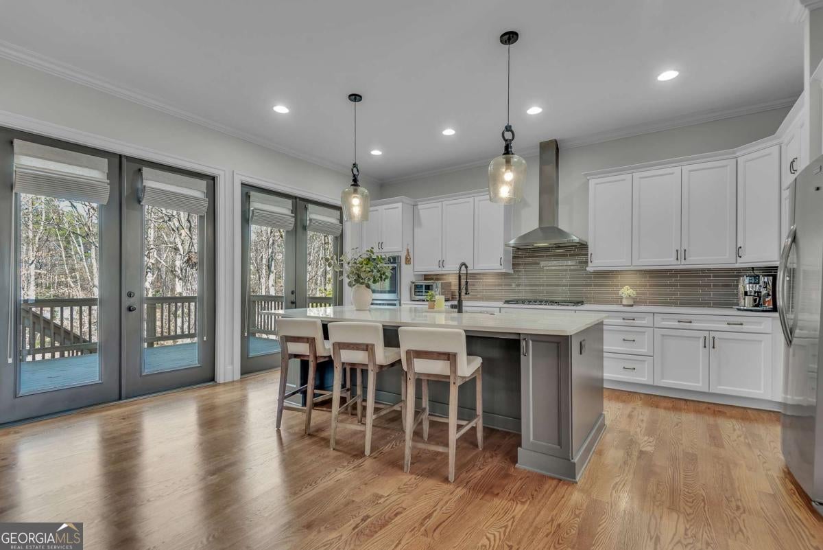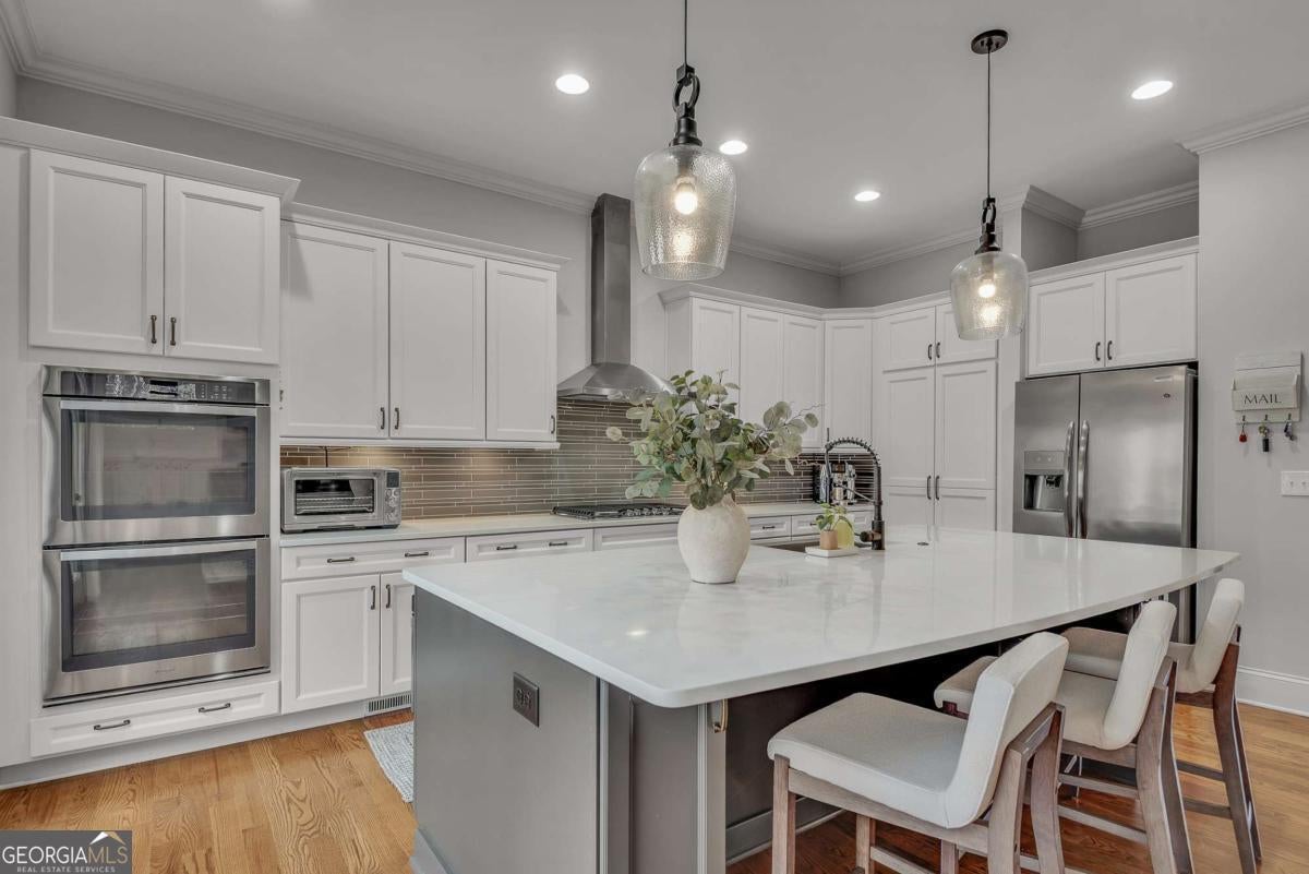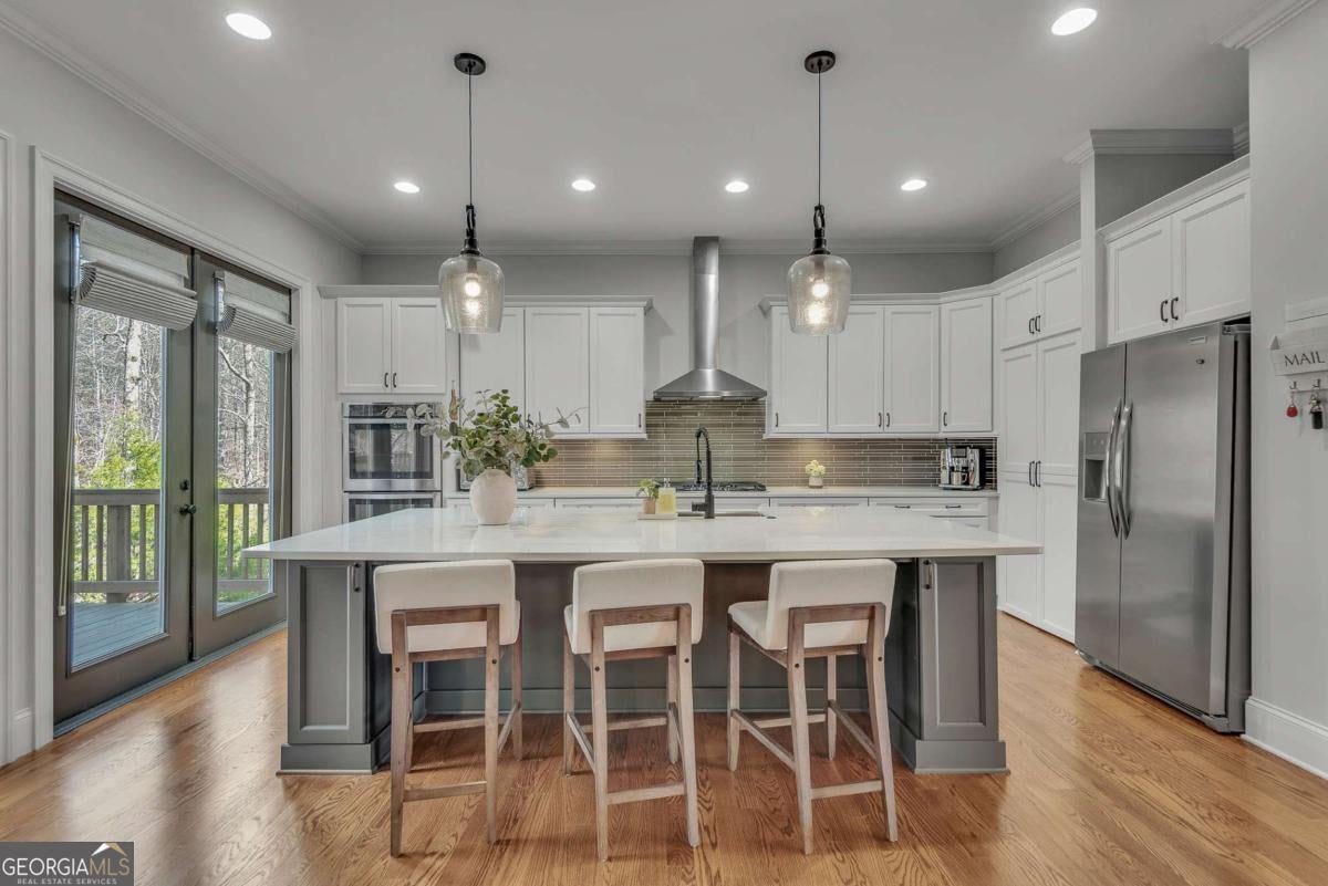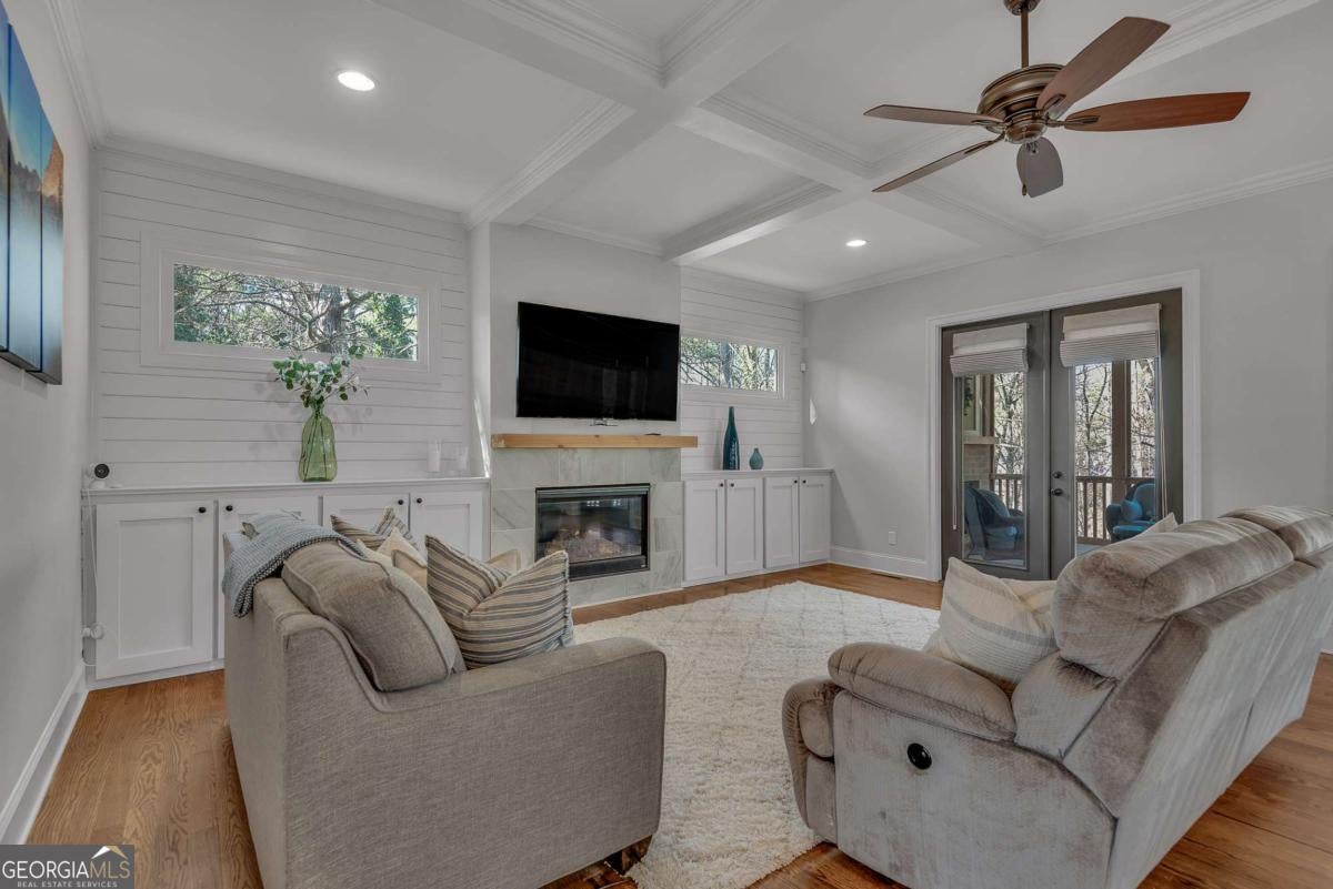 This finely crafted executive home commands attention with its thoughtfully curated blend of distinctive architectural details and modern comfort, all set on just under a two-acre culdesac lot offering space and privacy. The inviting open-concept main level features beautiful site-finished hardwood floors, abundant natural light, and seamless flow, highlighted by a well-appointed kitchen with a large center island, white custom cabinetry, and designer lighting-perfect for everyday living and entertaining. French doors throughout the main level open to a spacious deck and a cozy fireside screened porch overlooking a private, resort-style backyard, creating a warm and welcoming indoor-outdoor lifestyle. The oversized primary suite offers a luxurious spa-inspired bath complete with dual vanities, an enormous walk-in shower, soaking tub, and custom walk-in closet. A large unfinished terrace level provides ample opportunity for future expansion, while the garage is equipped with an EV car charger for modern convenience. Beautifully designed with quality craftsmanship throughout, this exceptional home offers comfort, elegance, and room to grow in a serene setting. Located in the desirable Brookshade subdivision and zoned to some of the top schools in the state! Conveniently located just minutes to downtown Alpharetta.