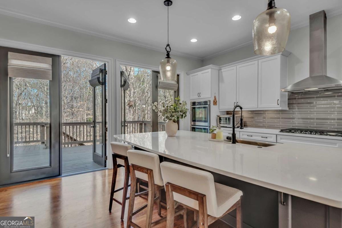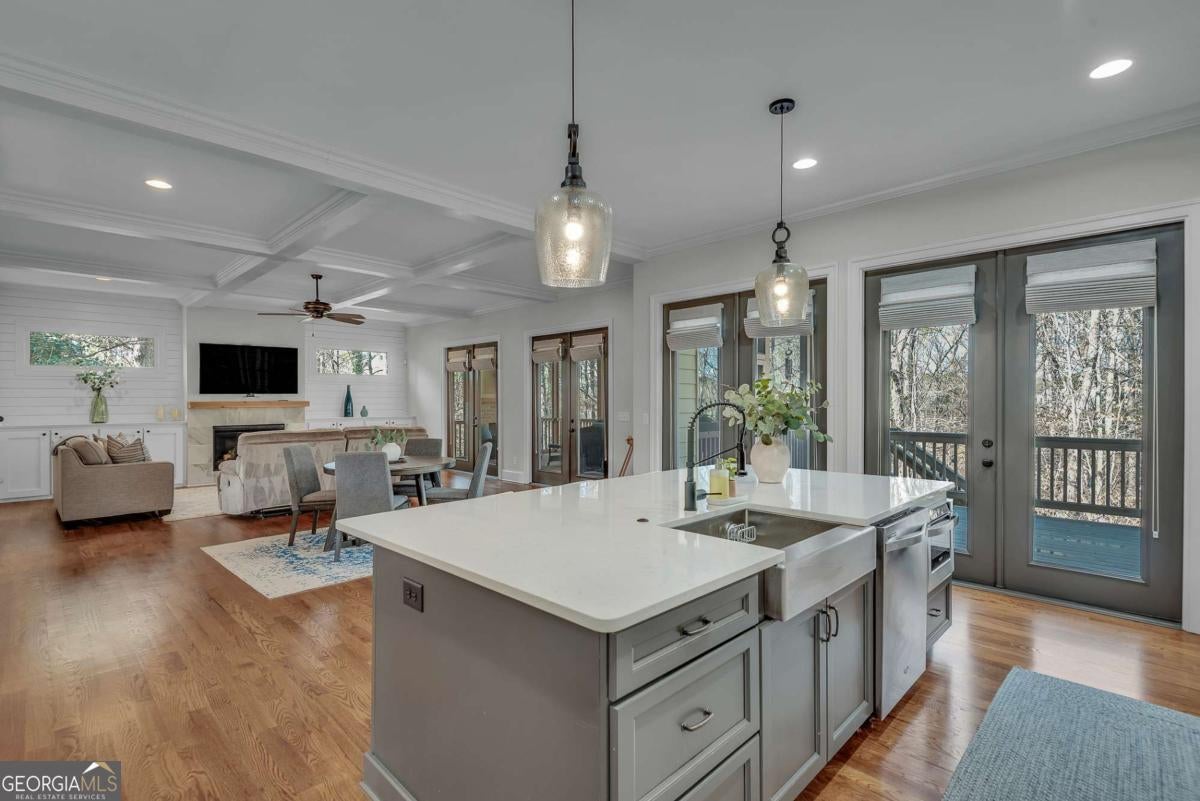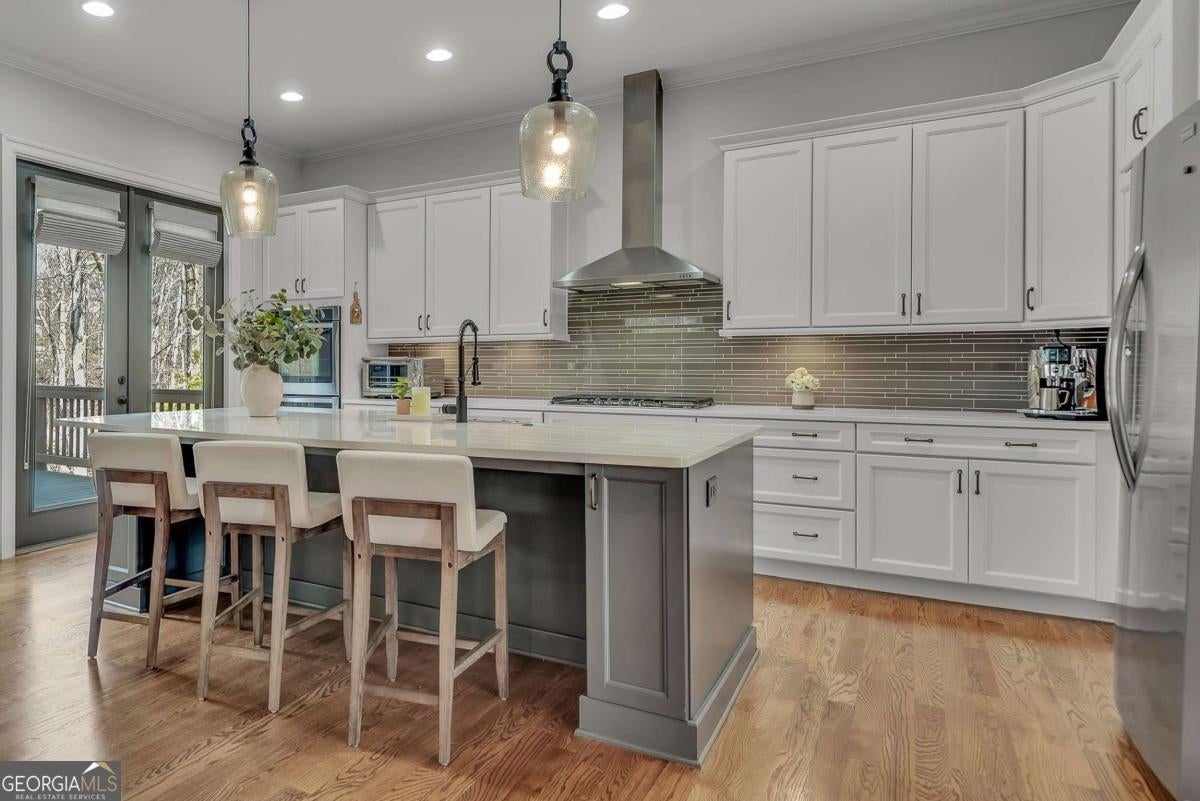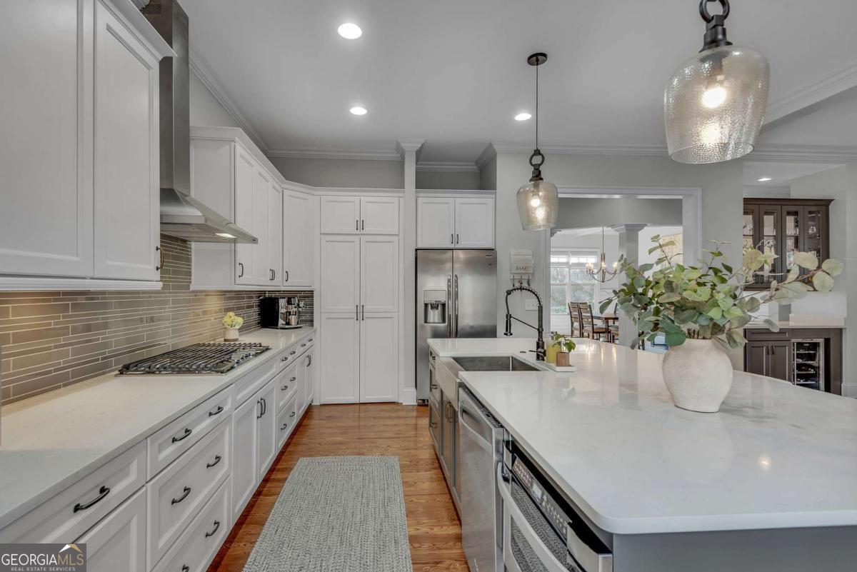 This finely crafted executive home commands attention with its thoughtfully curated blend of distinctive architectural details and modern comfort, all set on just under a two-acre culdesac lot offering space and privacy. The inviting open-concept main level features beautiful site-finished hardwood floors, abundant natural light, and seamless flow, highlighted by a well-appointed kitchen with a large center island, white custom cabinetry, and designer lighting-perfect for everyday living and entertaining. French doors throughout the main level open to a spacious deck and a cozy fireside screened porch overlooking a private, resort-style backyard, creating a warm and welcoming indoor-outdoor lifestyle. The oversized primary suite offers a luxurious spa-inspired bath complete with dual vanities, an enormous walk-in shower, soaking tub, and custom walk-in closet. A large unfinished terrace level provides ample opportunity for future expansion, while the garage is equipped with an EV car charger for modern convenience. Beautifully designed with quality craftsmanship throughout, this exceptional home offers comfort, elegance, and room to grow in a serene setting. Located in the desirable Brookshade subdivision and zoned to some of the top schools in the state! Conveniently located just minutes to downtown Alpharetta.