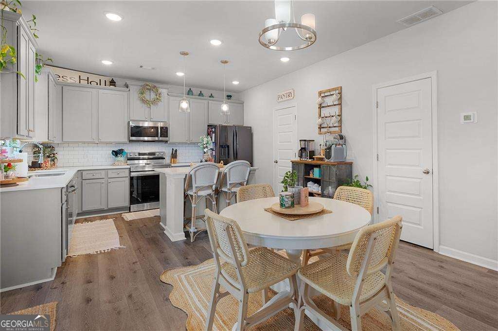 PRICED TO SELL! ACT NOW! On a quiet cul-de-sac in the city, this family home radiates happiness. Across the street, there is a serene tree-lined canopy that provides a beautiful natural view and in the rear, a private wooded backdrop creates a retreat that is hard to find. The upstairs is anchored by 4-bedrooms and 2-bathrooms, and downstairs an intimate family room, open-concept dining, modern gray kitchen and a flex room suitable for an office or separate living room. Whether you need space for family, hobbies or a home office this generous layout provides the flexibility. A warm neutral tone luxury vinyl plank flooring is throughout the main level. Step outside on the rear porch and you will understand what makes this home special. It is a sanctuary-the perfect place for morning coffee, football games or cozy evenings by the fire. Henderson Glenn offers a playground, sidewalks and street lights. Enjoy a sense of unity where neighbors wave and evenings feel a little slower. This home simply feels different. It feels like home.