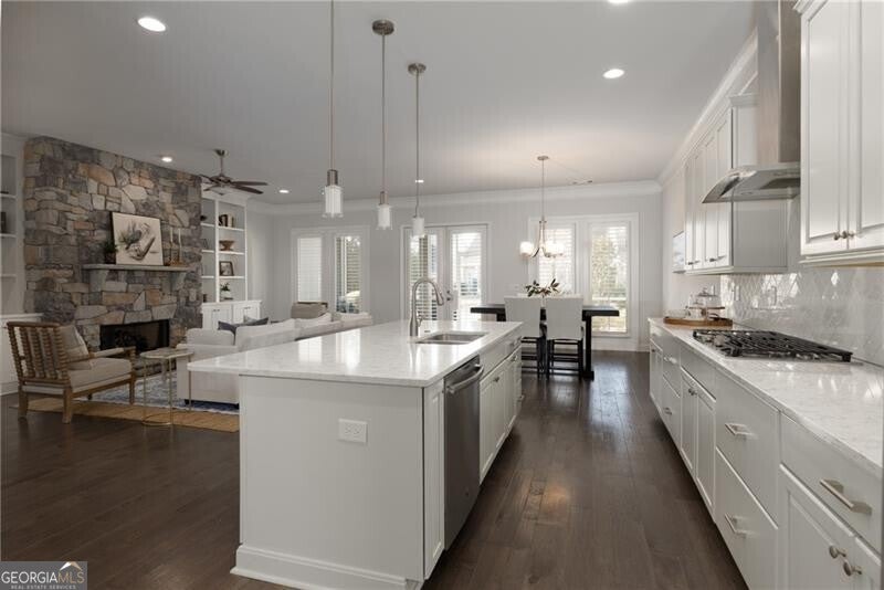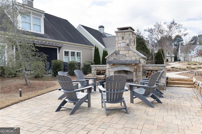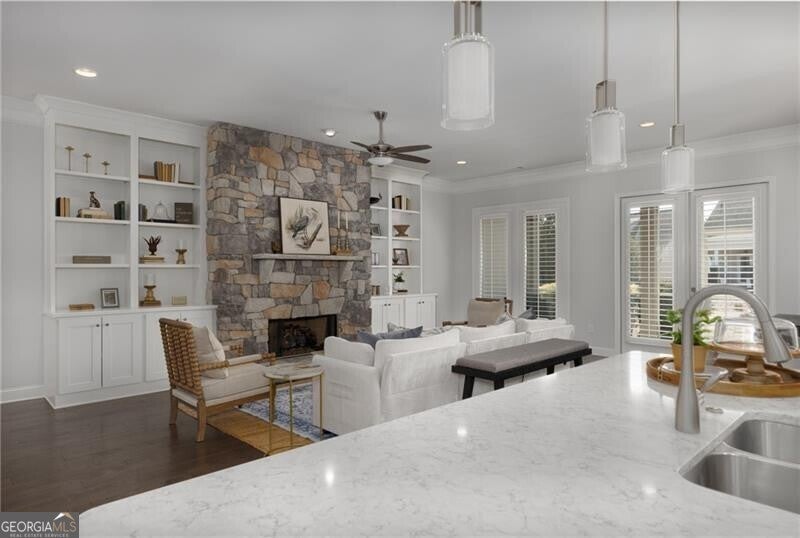 Nestled within the highly sought-after Longleaf 55+ gated community in Woodstock, 334 Little Pine Lane offers an exceptional blend of comfort, convenience, and lifestyle. Ideally positioned just steps from the clubhouse and saltwater pool, this home enjoys one of the neighborhood's most desirable settings with peaceful green space views. This beautifully maintained 4-bedroom, 3-bath residence spans approximately 3,086 square feet and features a bright, open-concept floor plan designed for effortless everyday living and entertaining. The spacious living room is anchored by a cozy fireplace flanked by custom built-ins, creating a warm focal point that flows seamlessly into the kitchen and dining areas. A generously sized screened porch extends the living space outdoors, offering the perfect setting for morning coffee or evening gatherings while overlooking the manicured green space. The main-level primary suite provides a private retreat with a well-appointed bath and walk-in closet. Additional bedrooms offer flexibility for guests, hobbies, or a dedicated home office. Residents enjoy low-maintenance living with lawn care included, along with access to a clubhouse, saltwater pool, dog park, community garden, and active social calendar. Located just minutes from downtown Woodstock's shops, dining, entertainment, parks, and walking trails - and with Lifetime Fitness just down the road - this home offers the perfect balance of tranquility and connection. An exceptional opportunity to embrace refined, low-maintenance living in one of Woodstock's premier active adult communities.